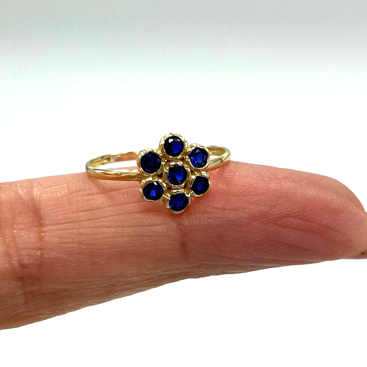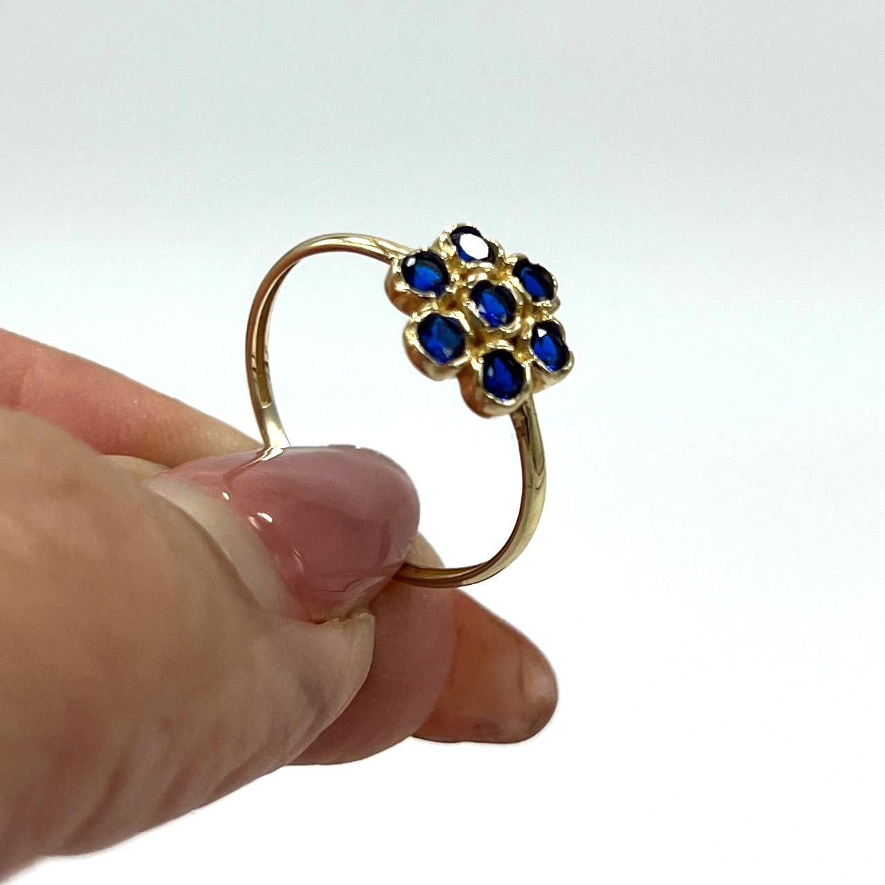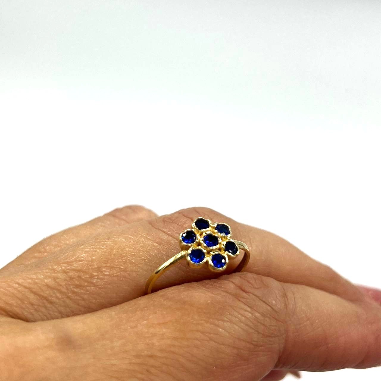14K yellow gold ring stunning Blue flower design that radiate natural beautiful