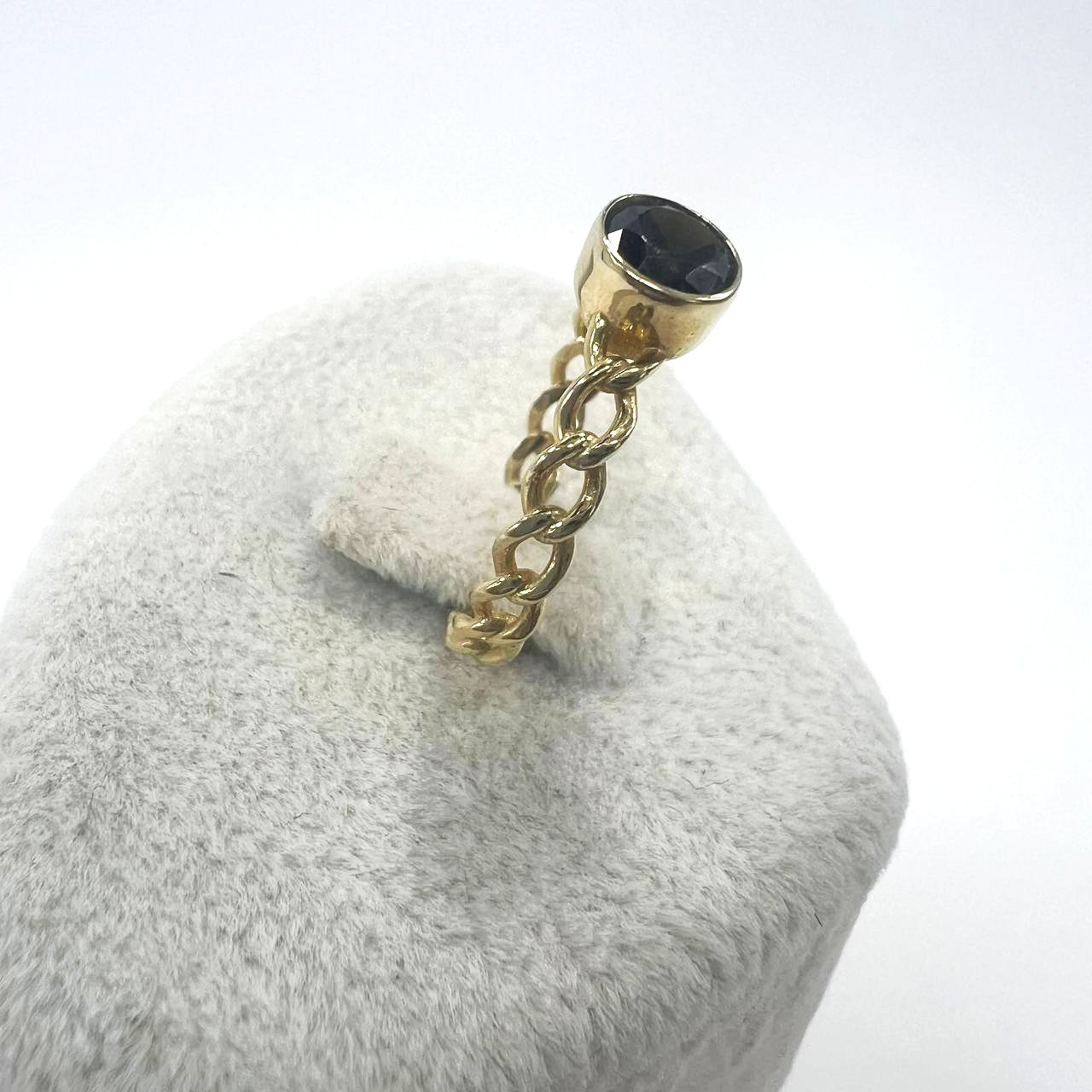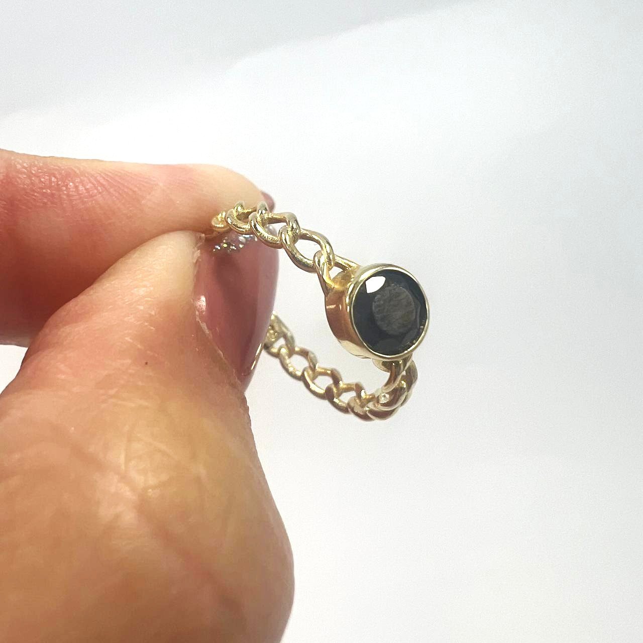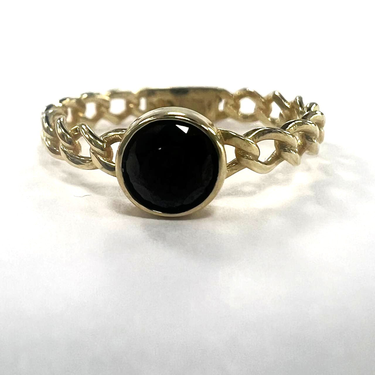 14K Yellow Gold Ring with Black Stone – Lightweight and Perfect for Daily Wear