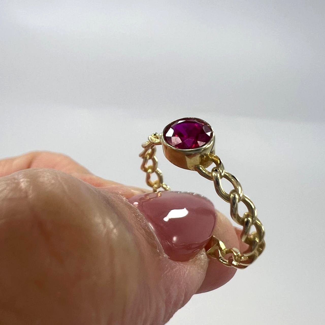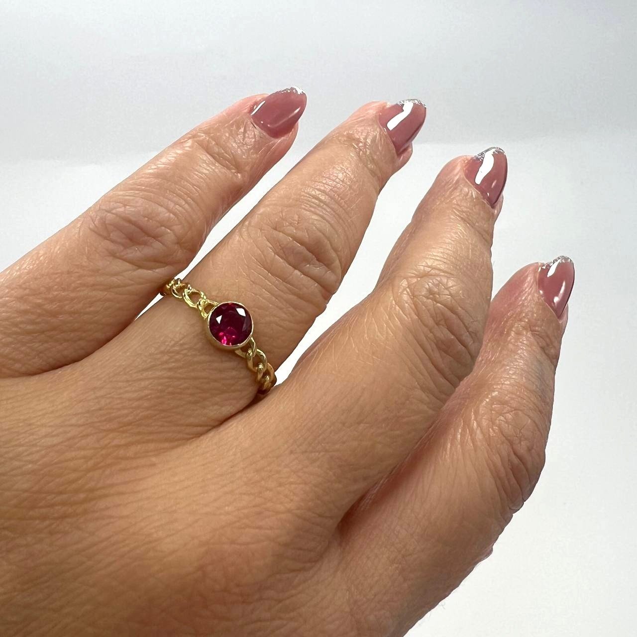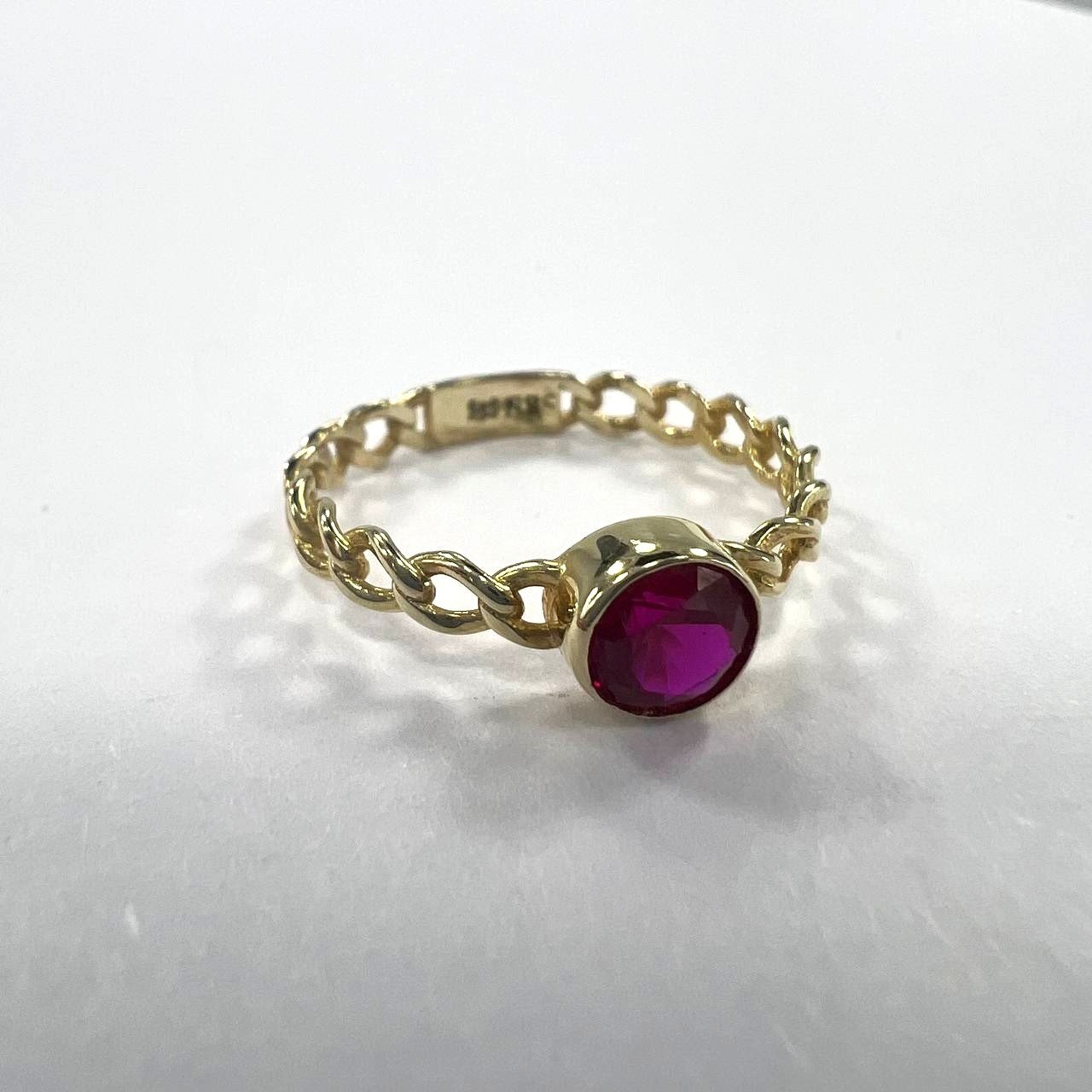 Add a modern edge to your everyday style with this 14K yellow gold ring, featuring a sleek pink stone at its center. Lightweight and comfortable, it is designed for daily wear while still offering a touch of sophistication. A versatile piece that blends elegance and simplicity, making it an ideal choice for both casual and formal looks.”