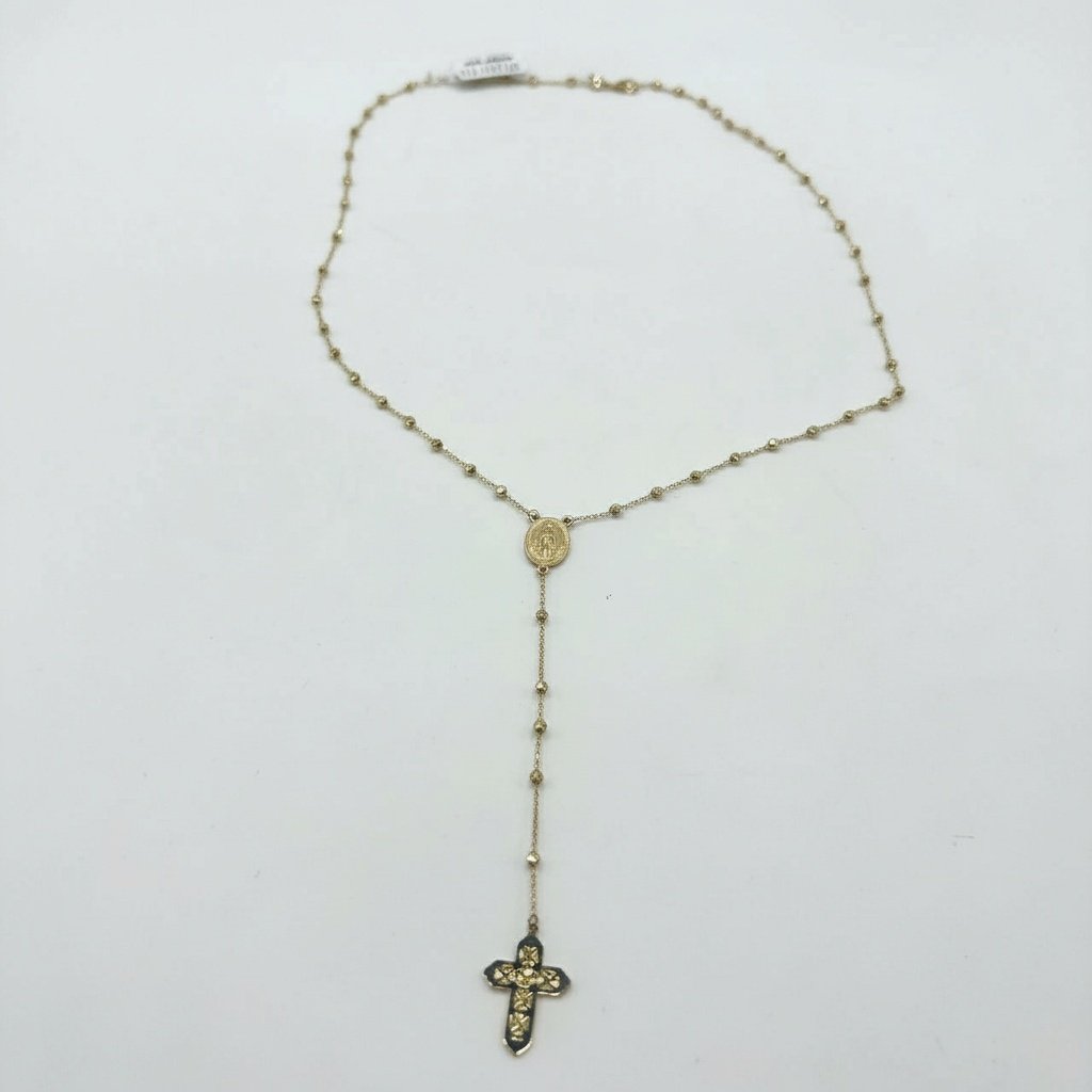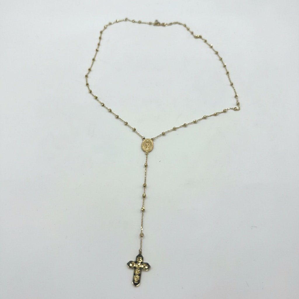 Rosary Necklace in 14K Yellow Gold — Beaded Chain & Engraved Cross | New Condition