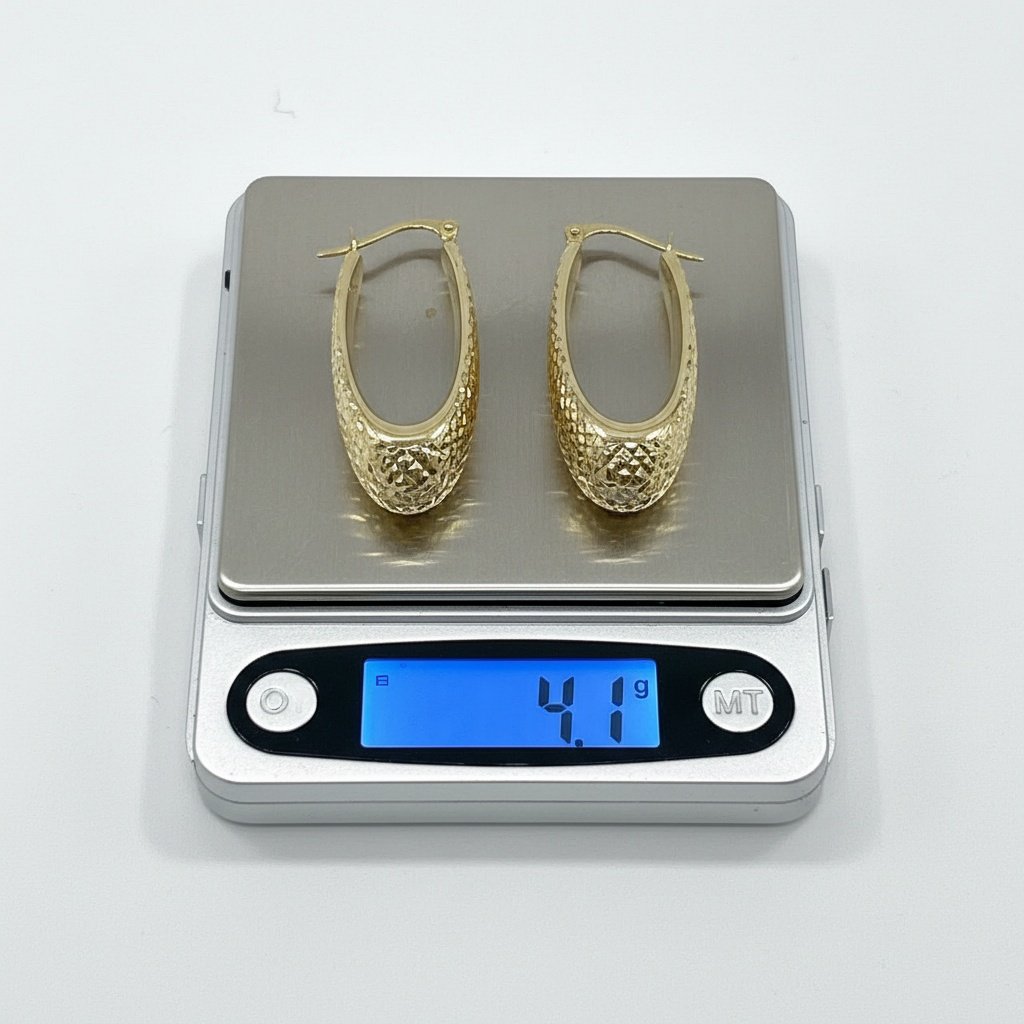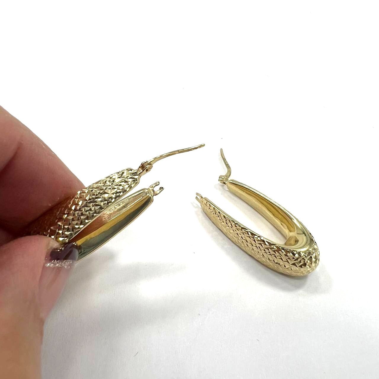 14K Yellow Gold Oval Drop Earrings — Diamond Cut Texture | New Condition