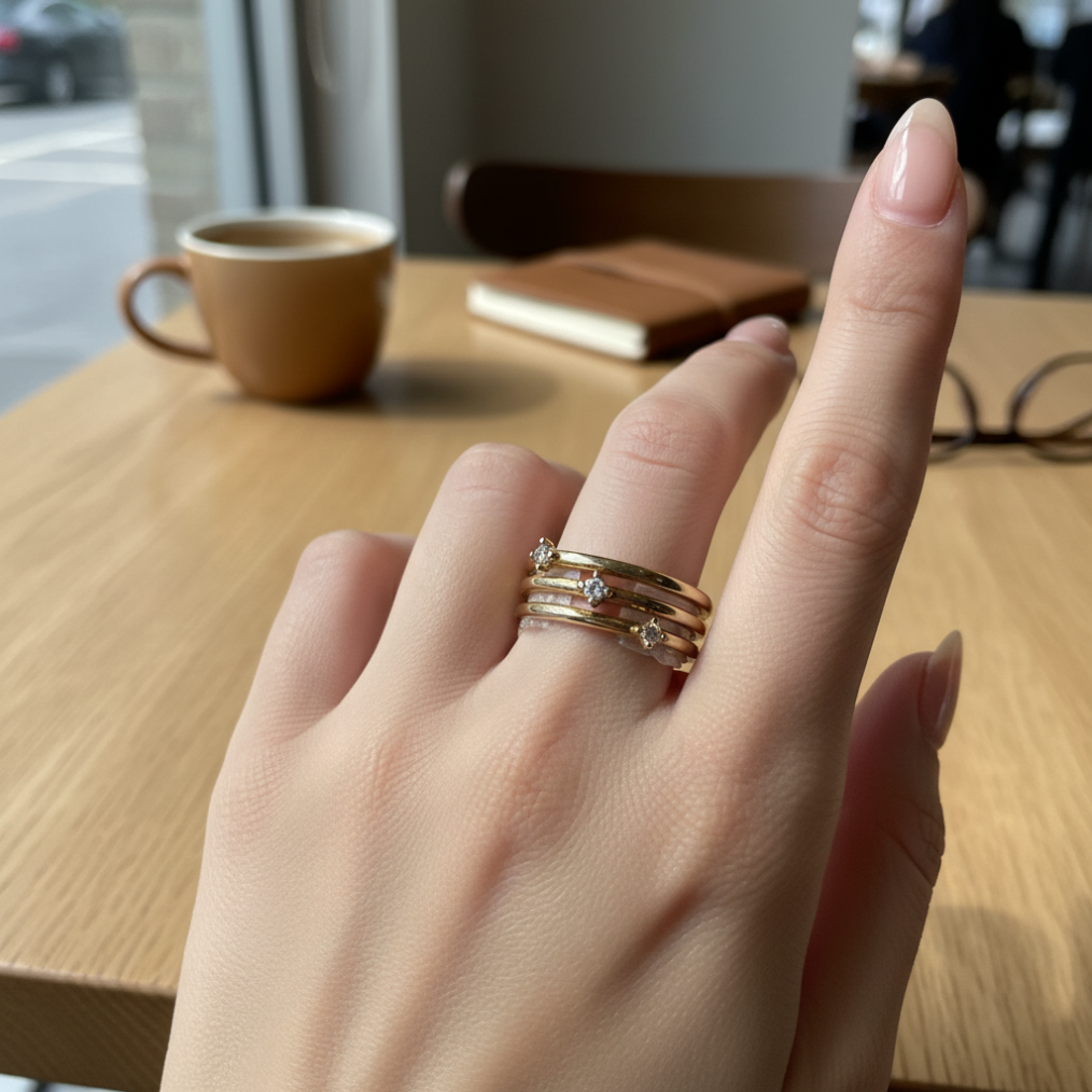 - Sparkling Zircon Stones: Adorned with three brilliant zircon stones, each delicately set on its own band for maximum sparkle.