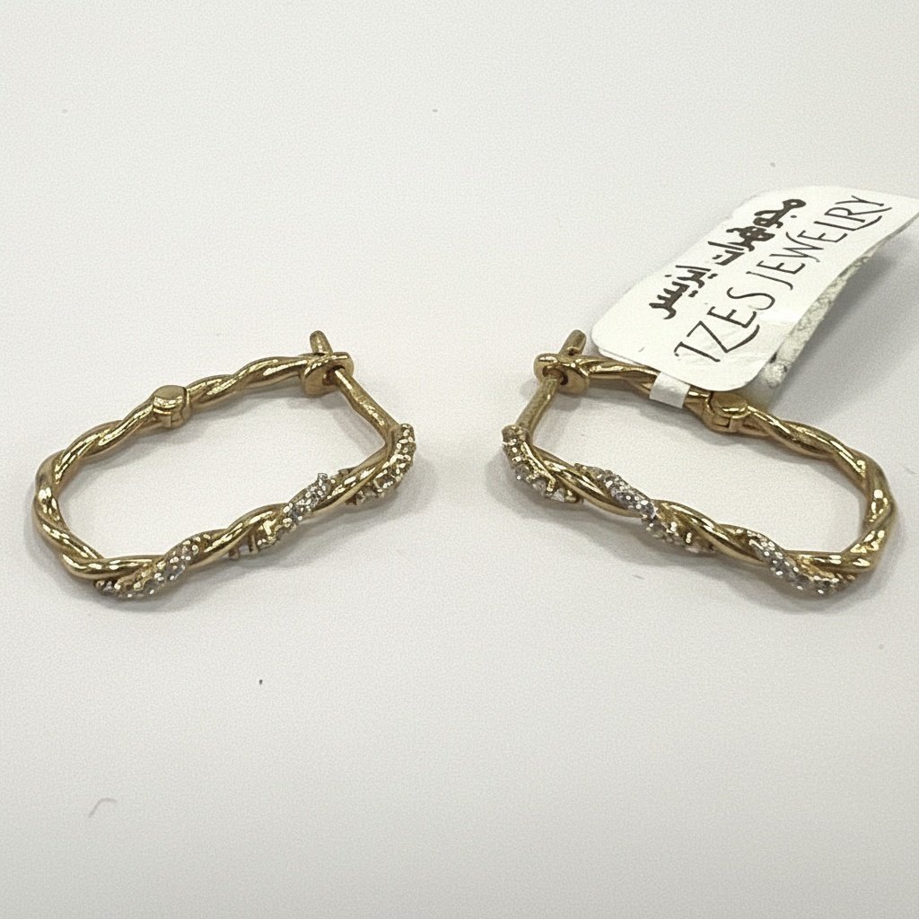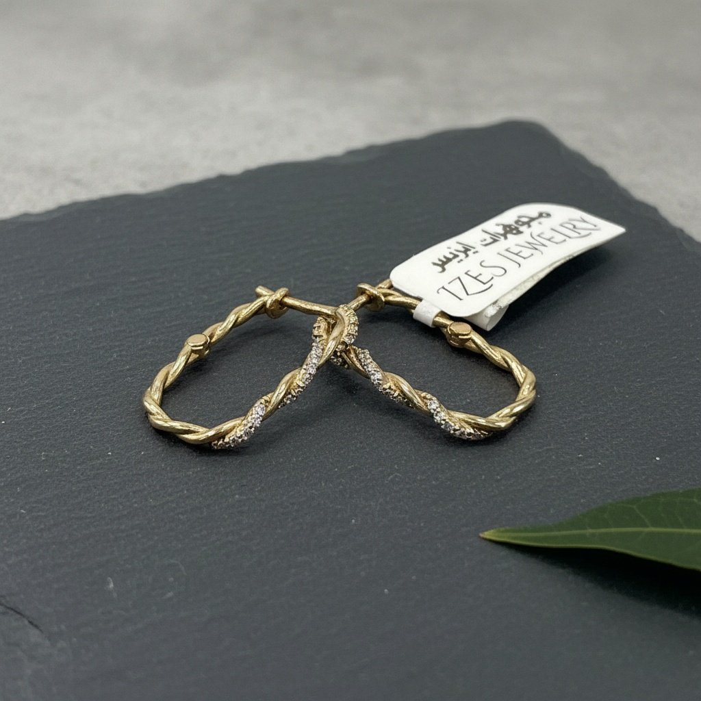 Discover the beauty of these stunning 14K yellow gold twisted hoops, crafted from high-quality 14K yellow gold with exceptional craftsmanship and refined design. This elegant piece features sparkling zircon stones beautifully set along a braided design, making it perfect for both daily wear and special occasions. Combining timeless charm with modern elegance, these Izes Jewelry earrings add a sophisticated touch and effluent shine to any look. Lightweight, feminine, and a timeless must-have for every jewelry lover who appreciates fine craftsmanship and subtle luxury.