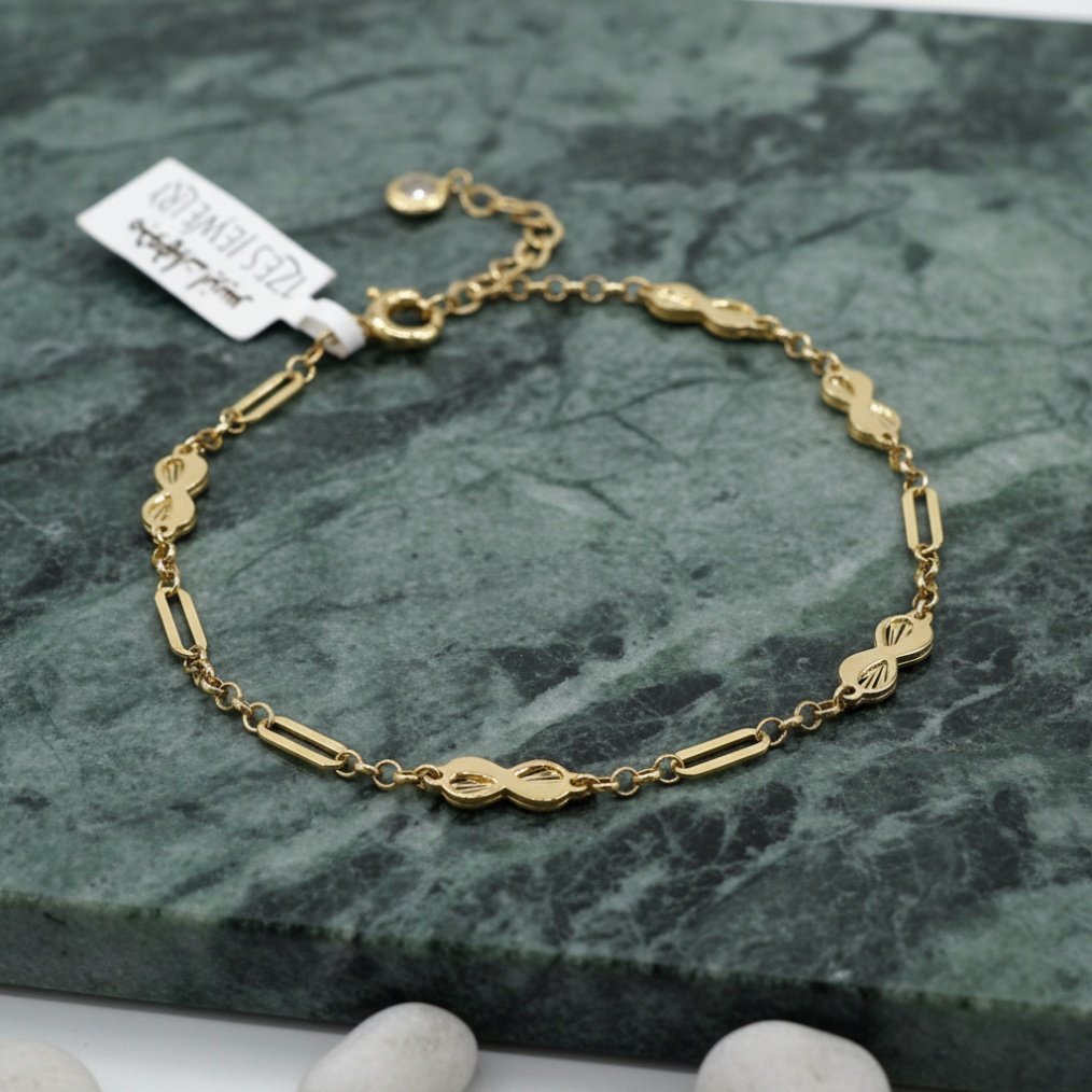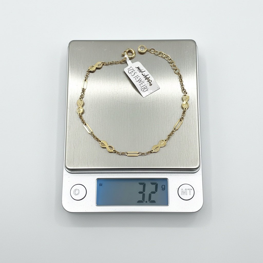 Discover the beauty of this stunning 14K yellow gold bracelet, crafted with exceptional craftsmanship and refined design. This elegant piece features delicate infinity links combined with sleek gold bars, creating a graceful balance between simplicity and sophistication. Its lightweight design makes it comfortable to wear all day long — perfect for everyday wear, special occasions, or as a meaningful gift. Combining timeless charm with modern elegance, it adds a sophisticated touch to any look, reflecting a timeless shine that never fades.