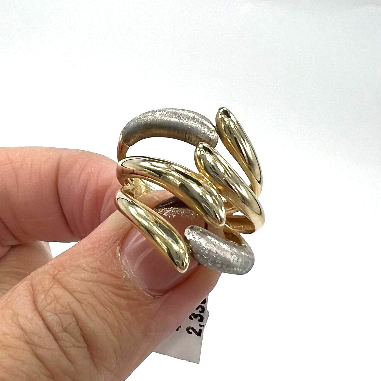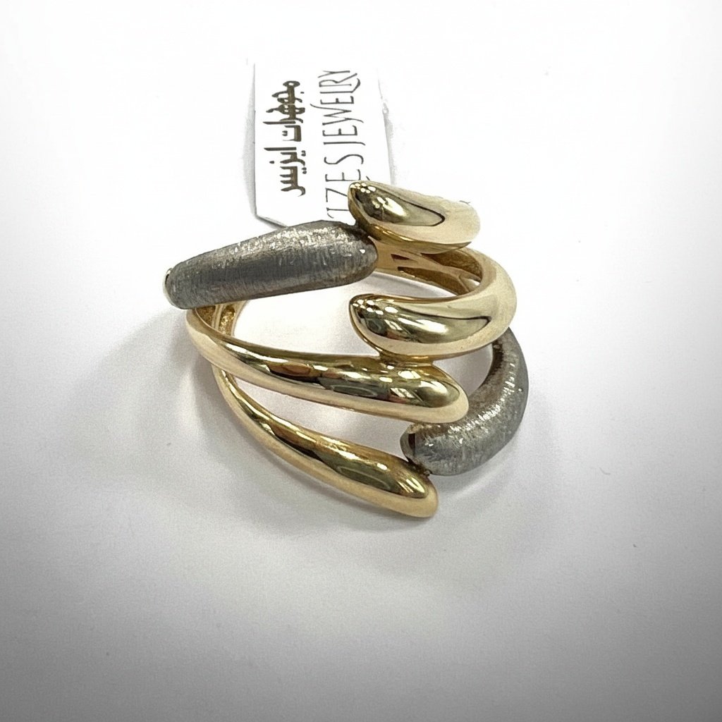 14K Yellow Gold & White Textured Wrap Ring – Modern Art, Bold Style size 7