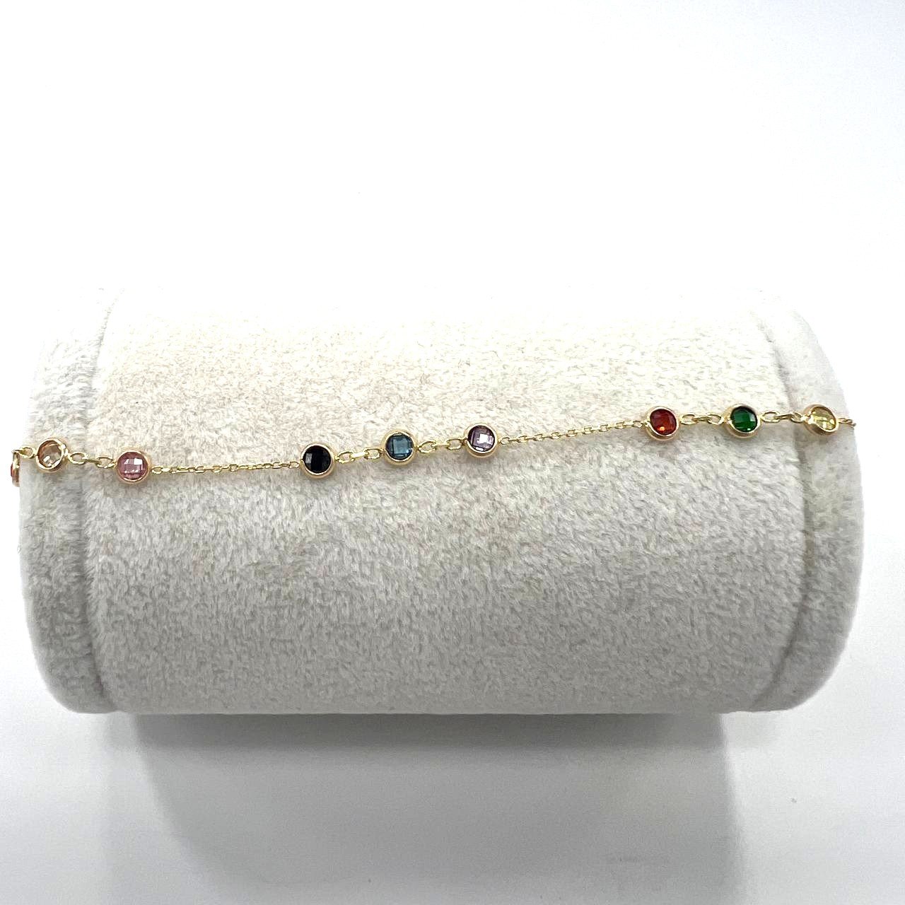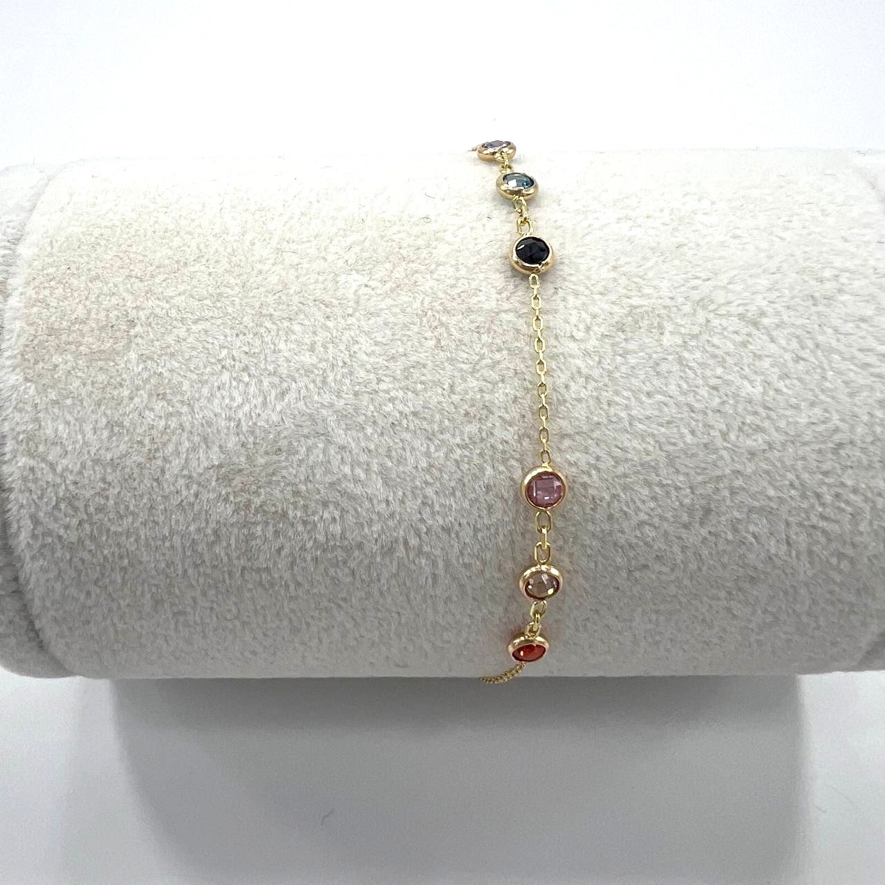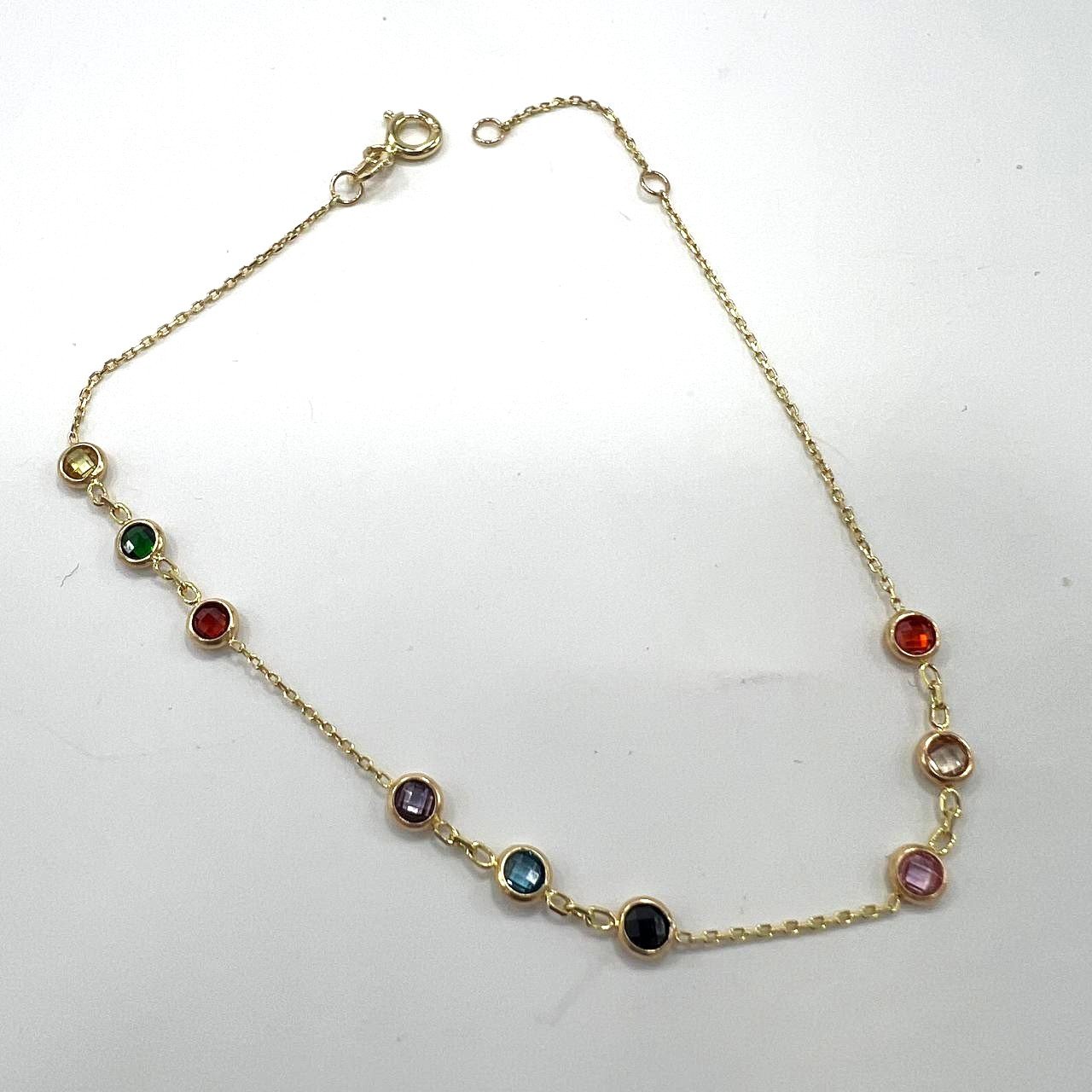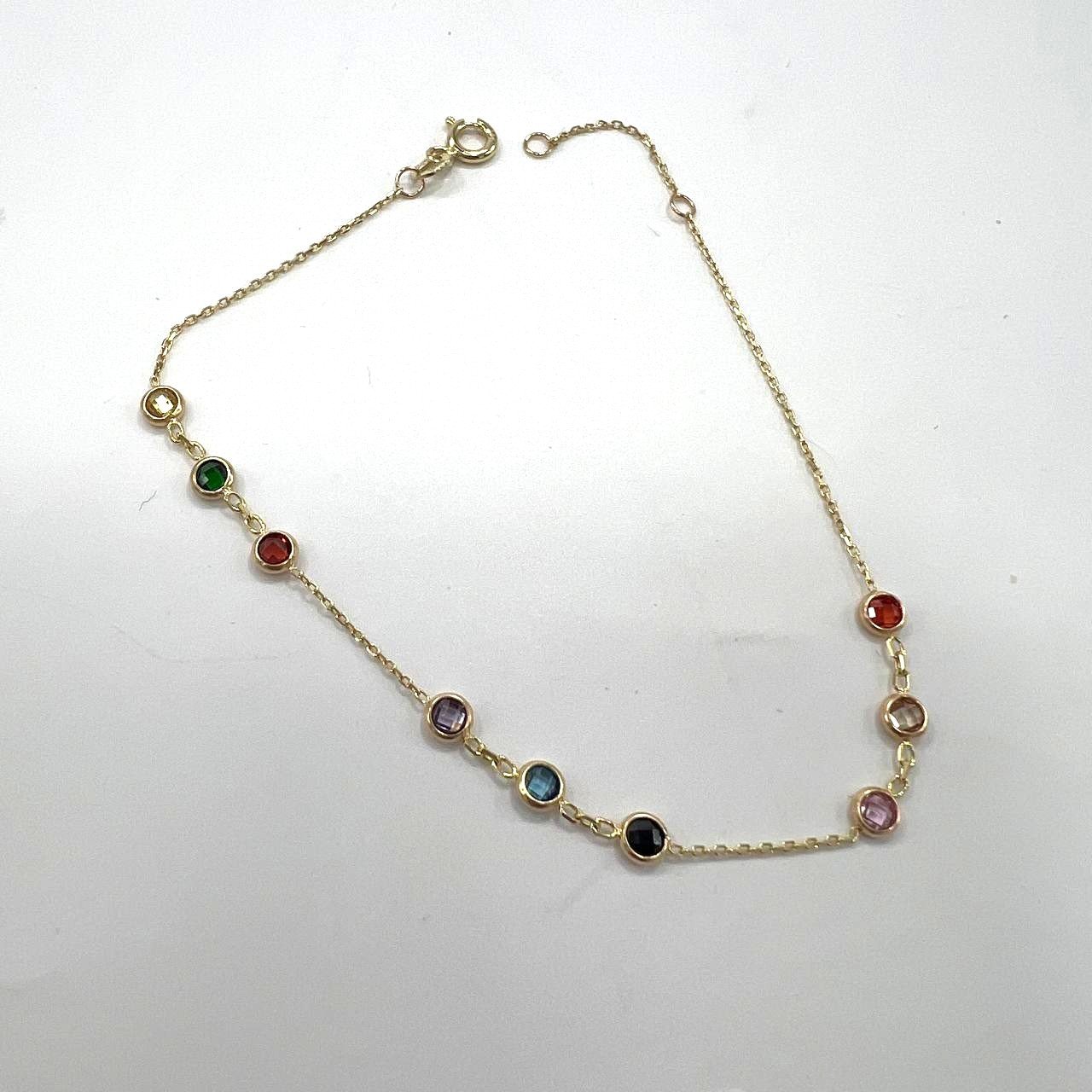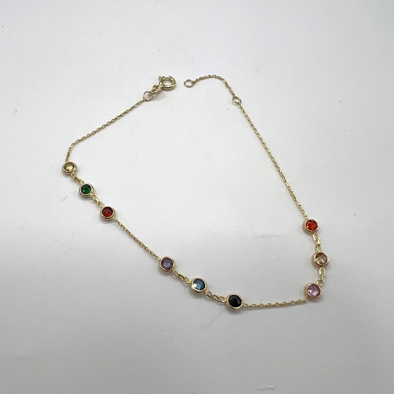 This 14K yellow gold bracelet features colorful round stones that add a playful yet elegant touch. Light and stylish, it’s perfect for daily wear, bringing vibrant charm and timeless beauty to every look, beautiful gift