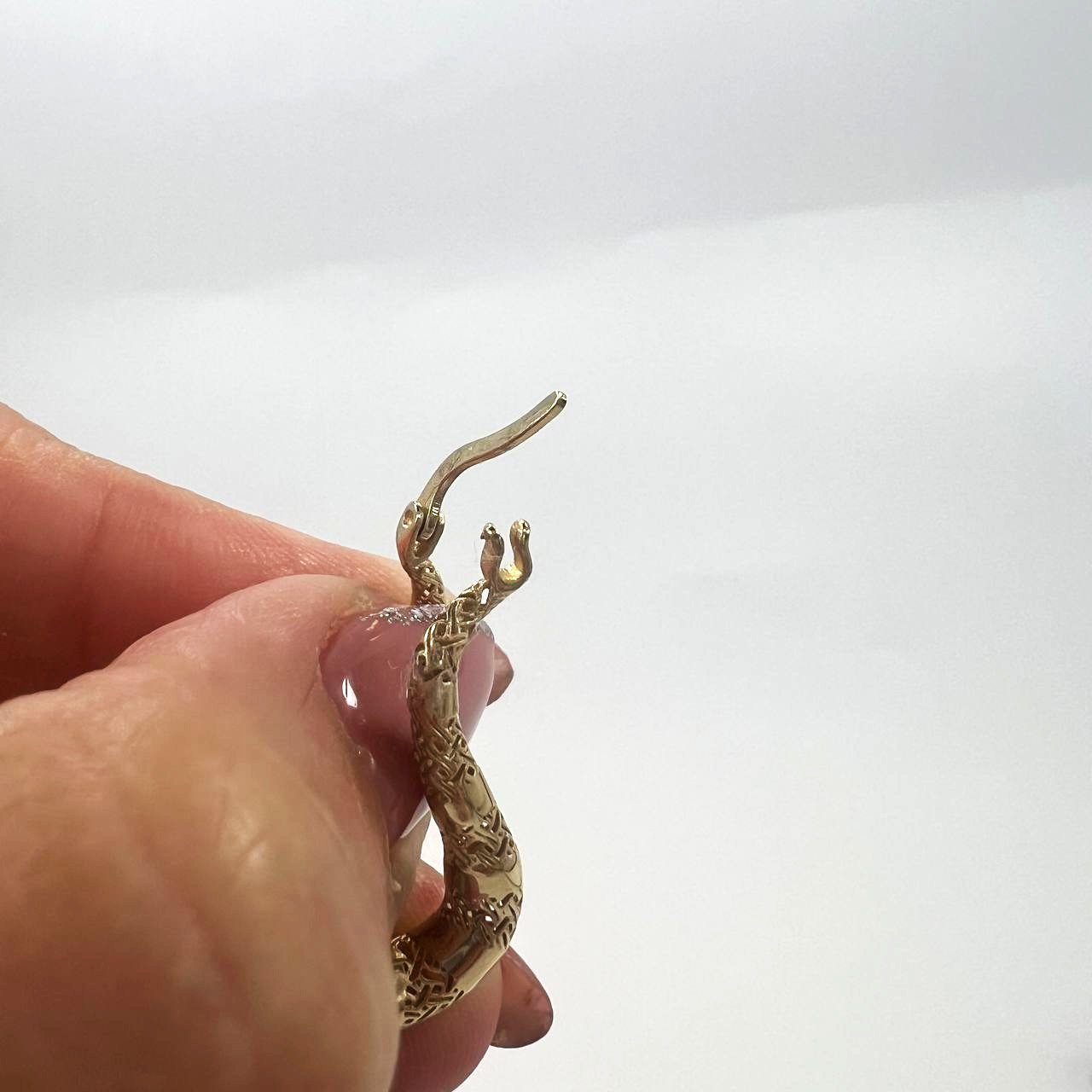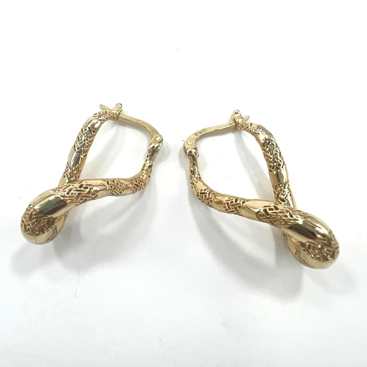 Make a bold fashion statement with these 14K gold earrings, featuring a beautifully ornate design that blends elegance with modern charm. Their unique detailing and decorative finish add a touch of sophistication, making them the perfect choice for women who love jewelry that stands out. Whether for a special event or to elevate your everyday look, these earrings are designed to impress