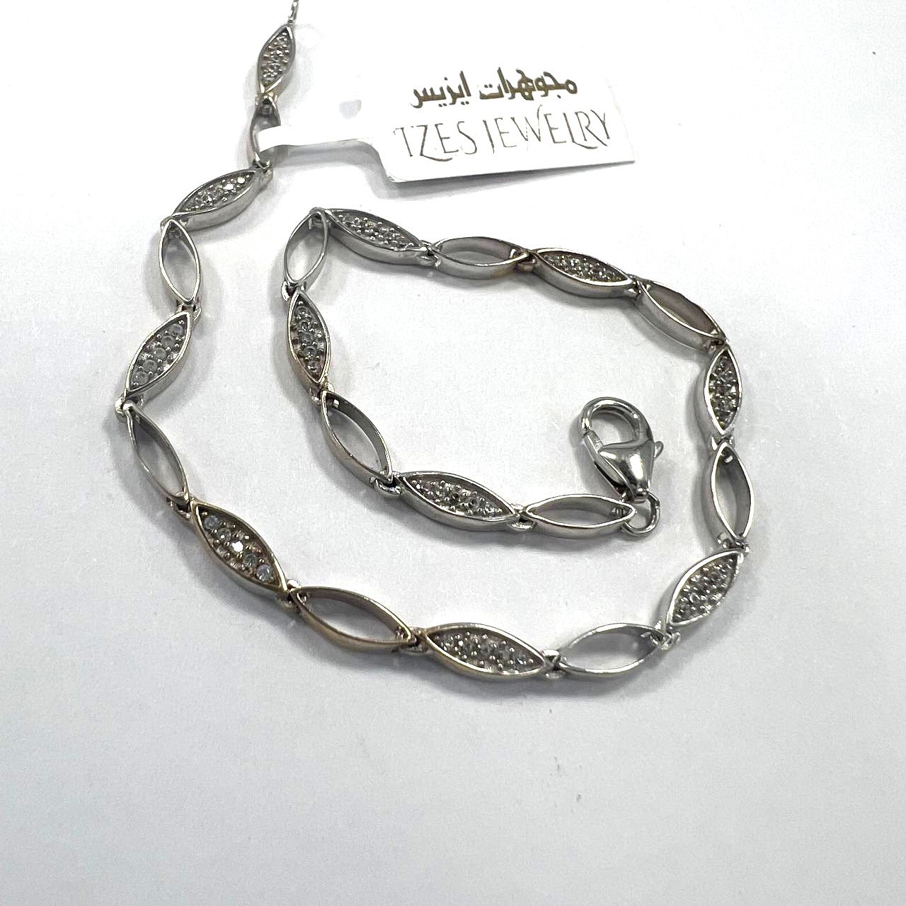 Elegant 14K white gold bracelet with delicate zircon stones, perfect for any occasion.