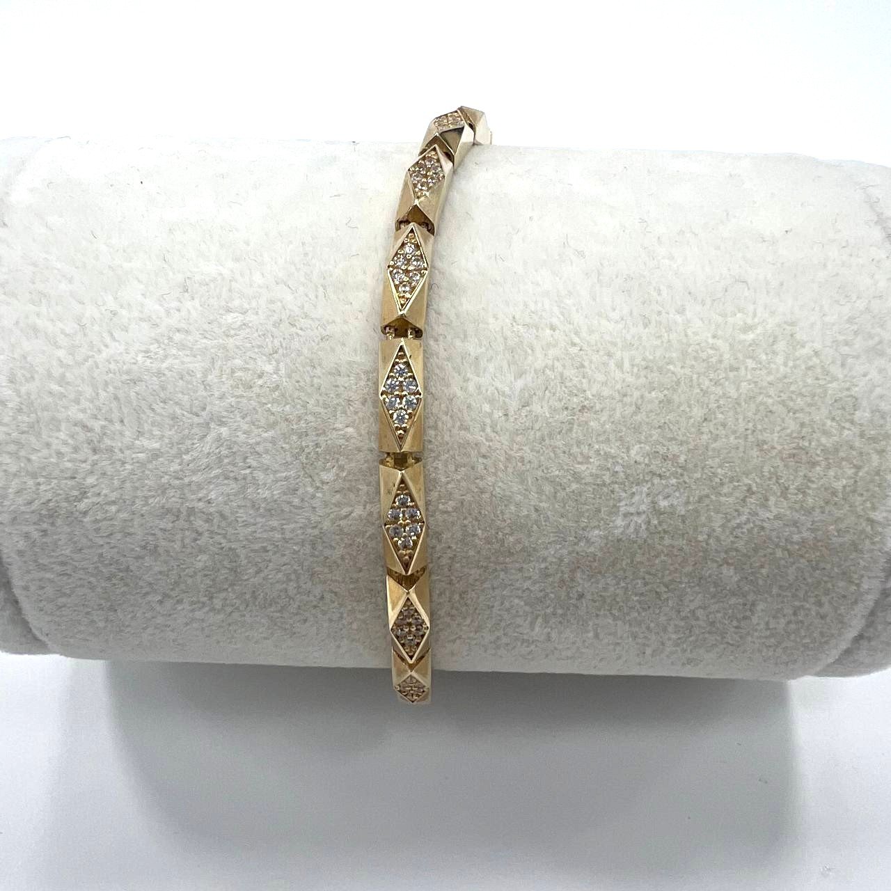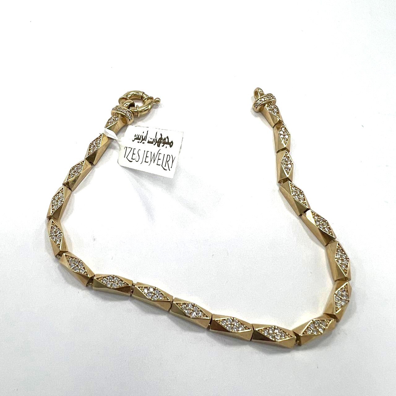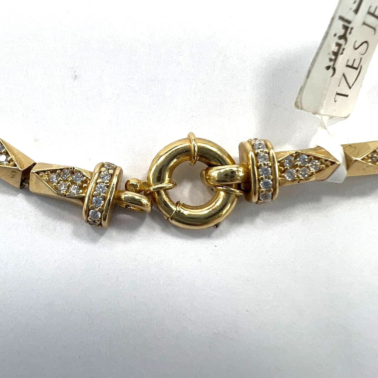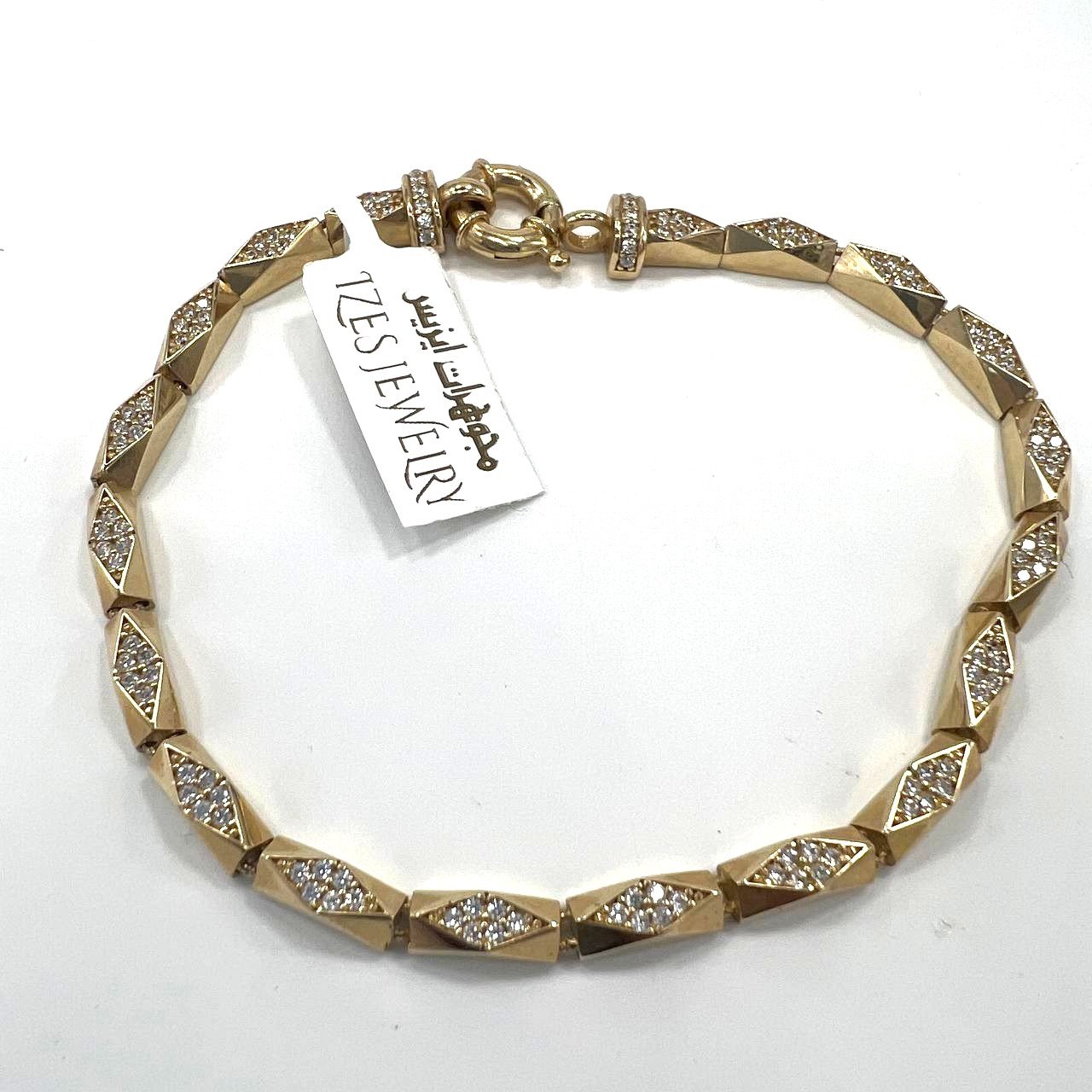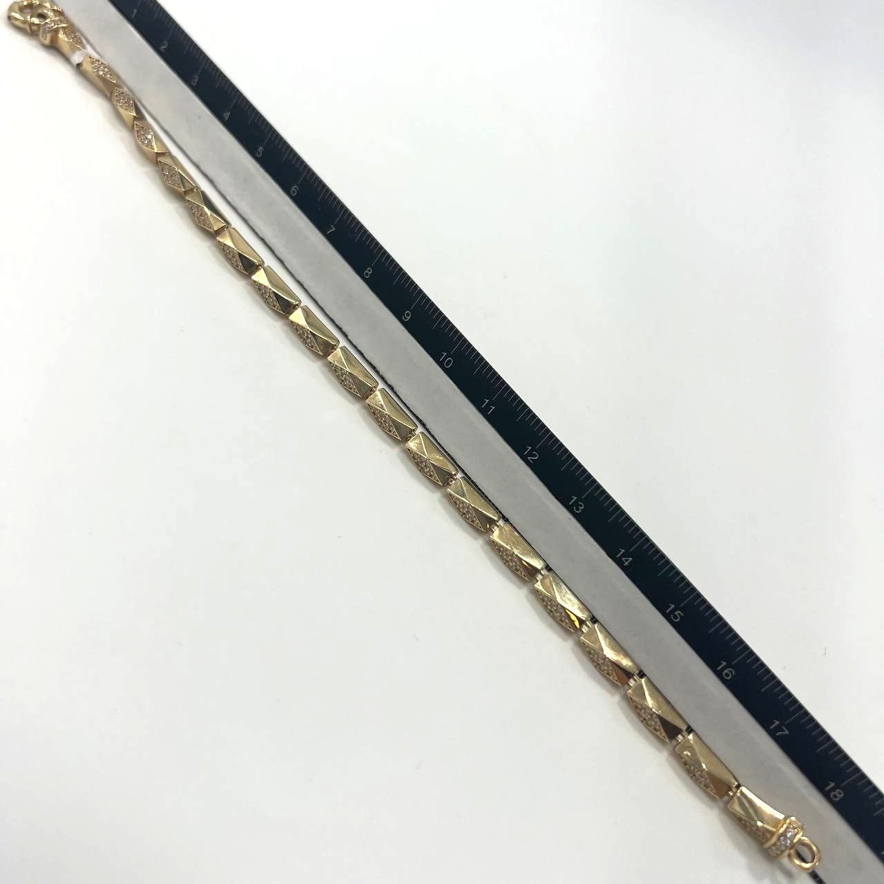 This elegant 14K yellow gold bracelet features rectangular links delicately set with fine zircon stones. Its sleek and refined design adds a subtle sparkle, perfect for both everyday elegance and special occasions. A timeless piece that blends classic charm with modern sophistication, making it an ideal gift or personal treasure