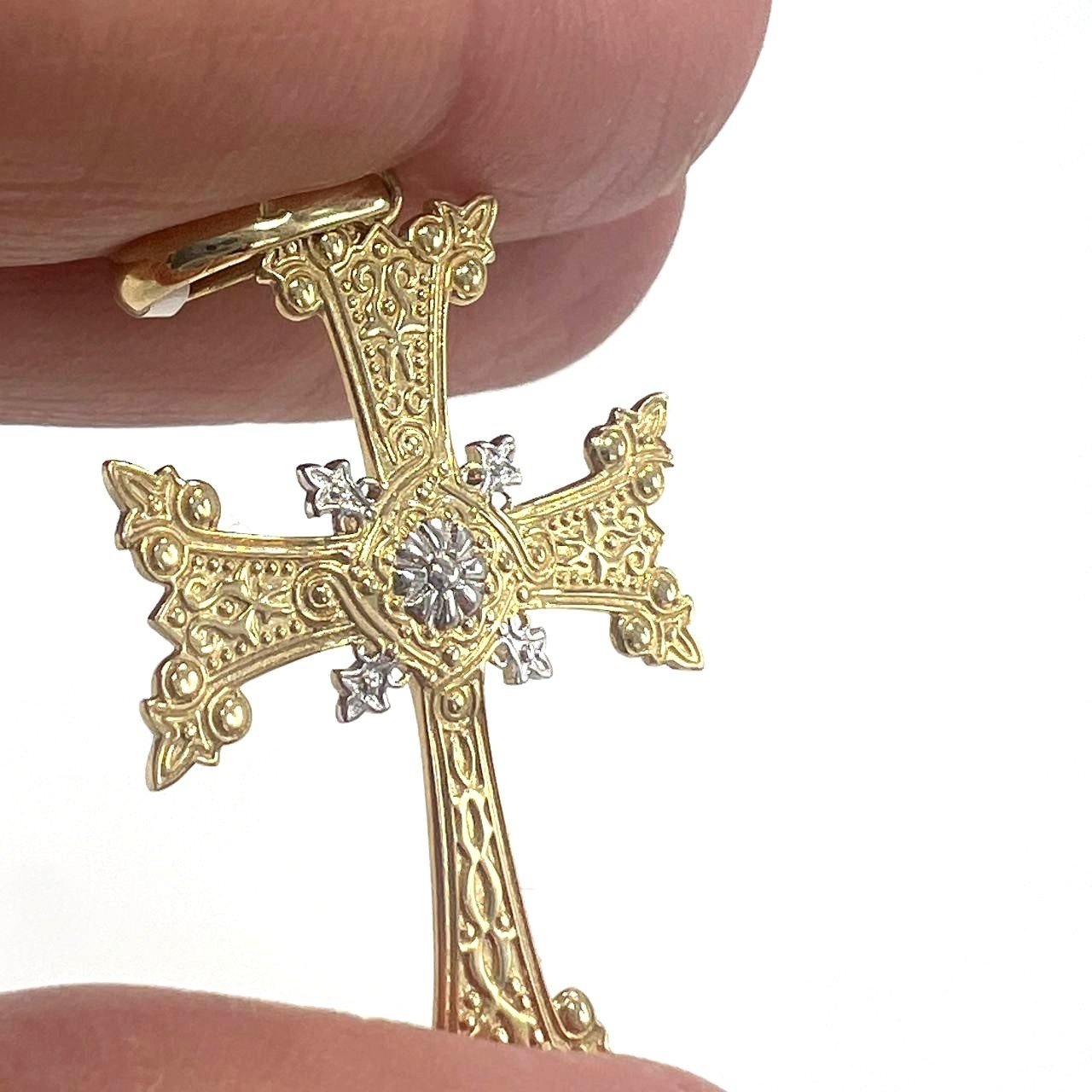 14K Yellow Gold Cross Pendant — Intricate Ornamental Filigree Design | New Condition