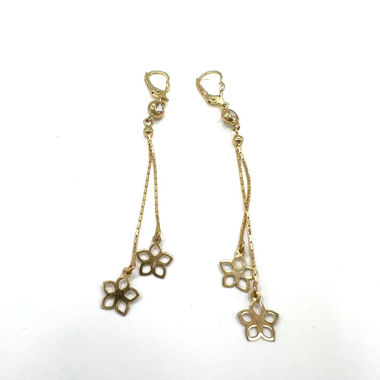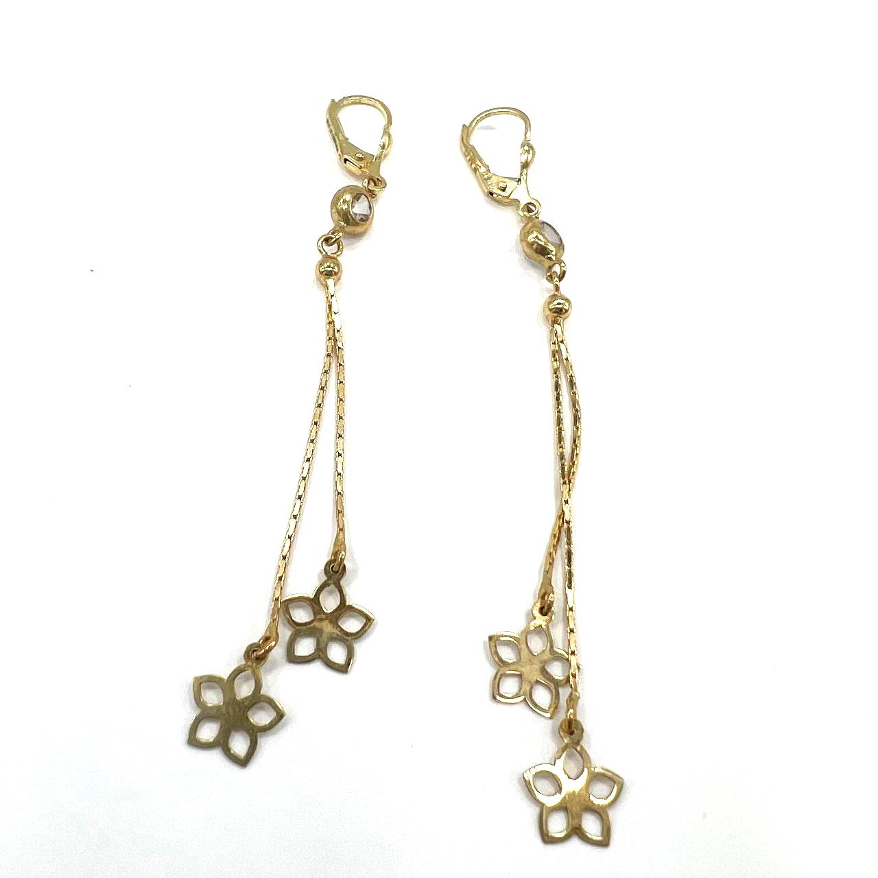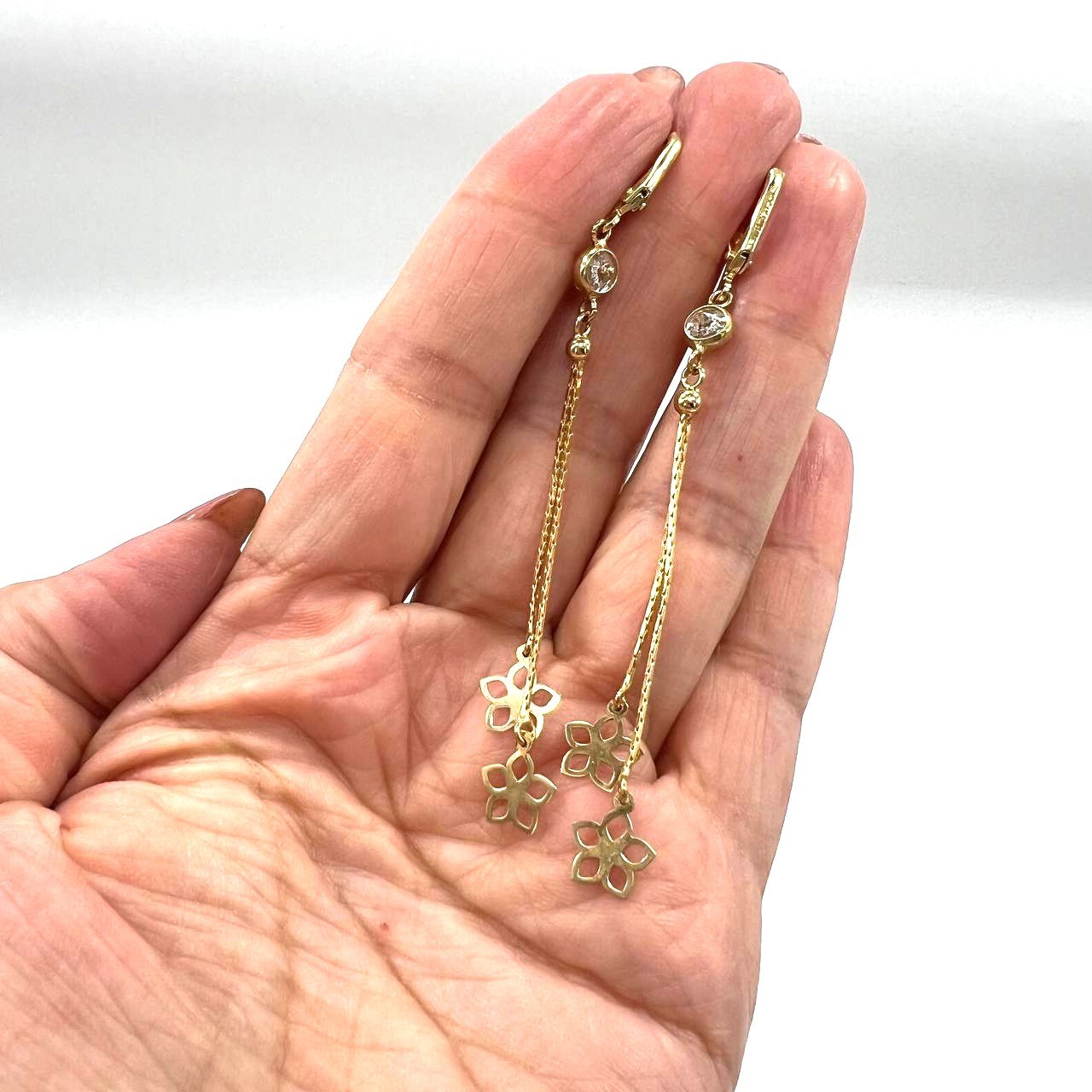 Elegant 14K yellow gold long earrings with a delicate flower design