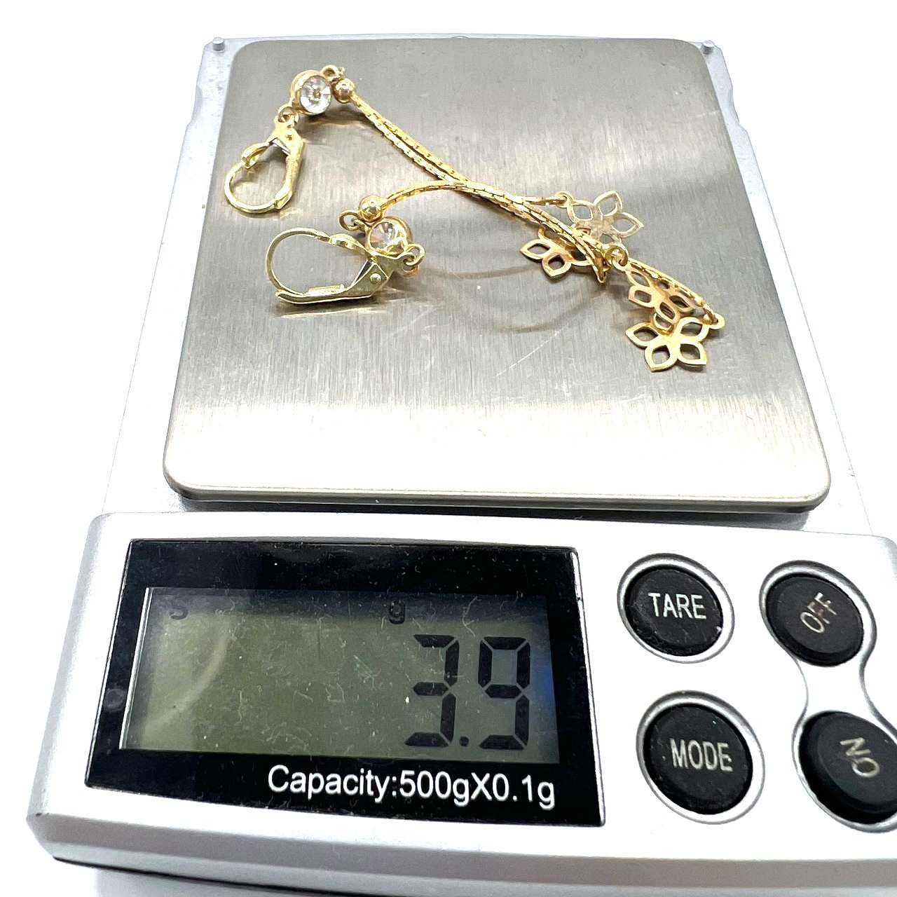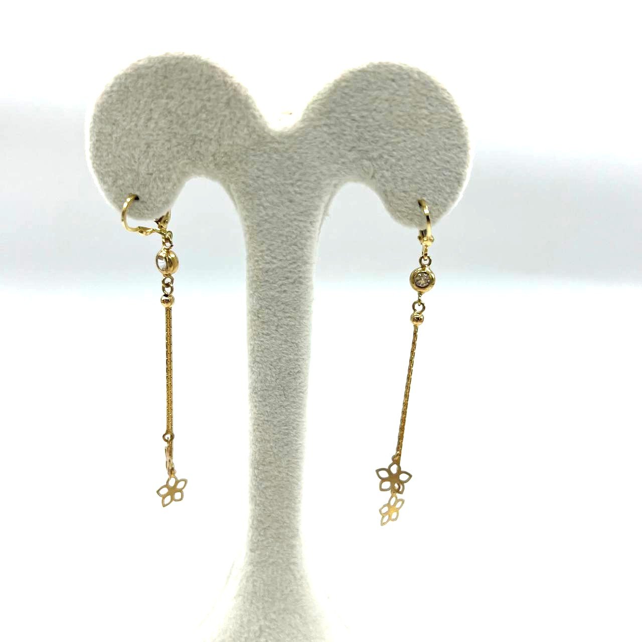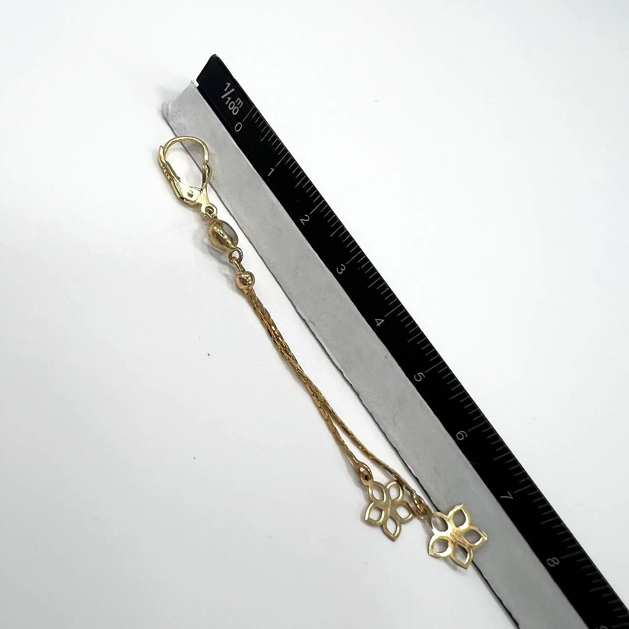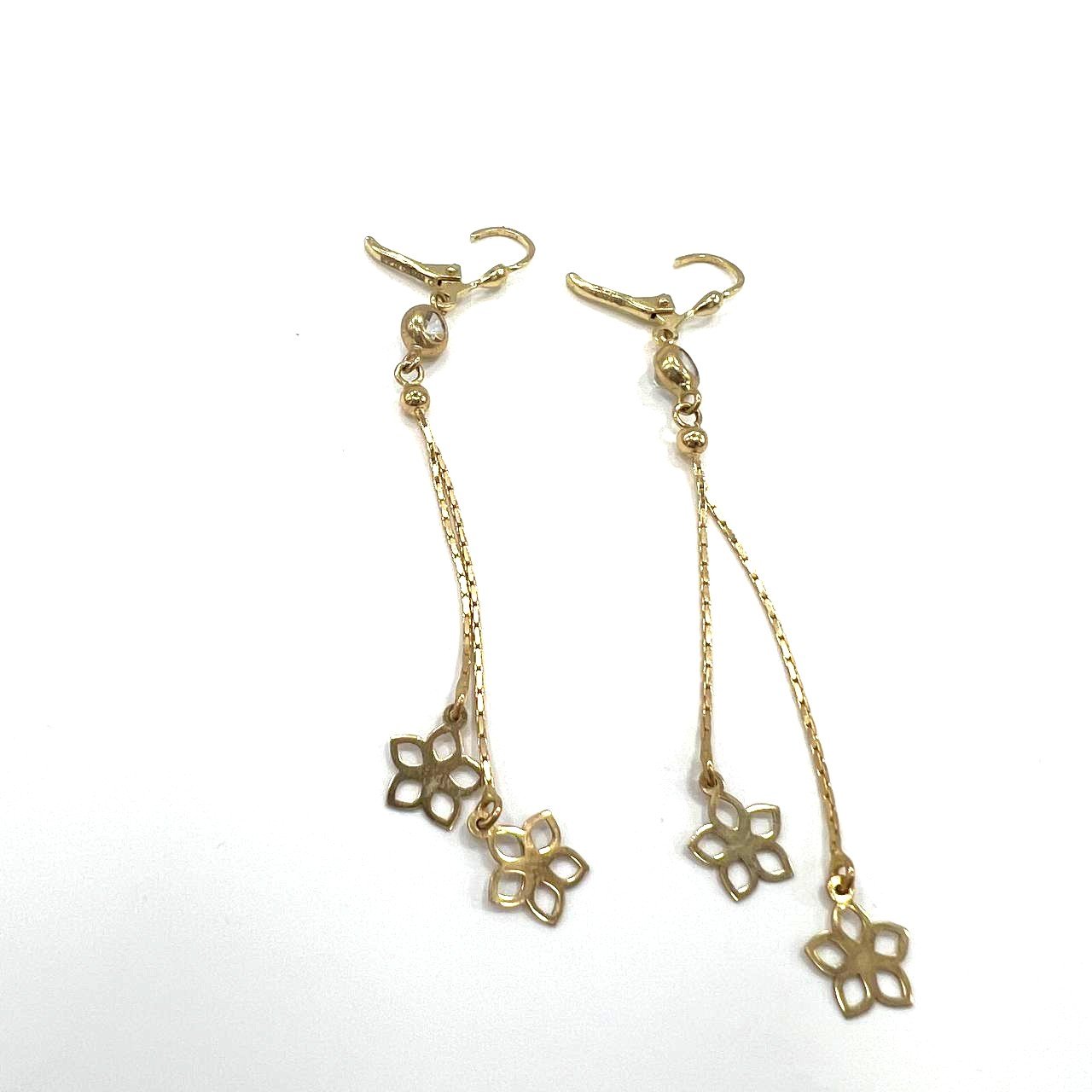 Elegant 14K yellow gold long earrings with a delicate flower design