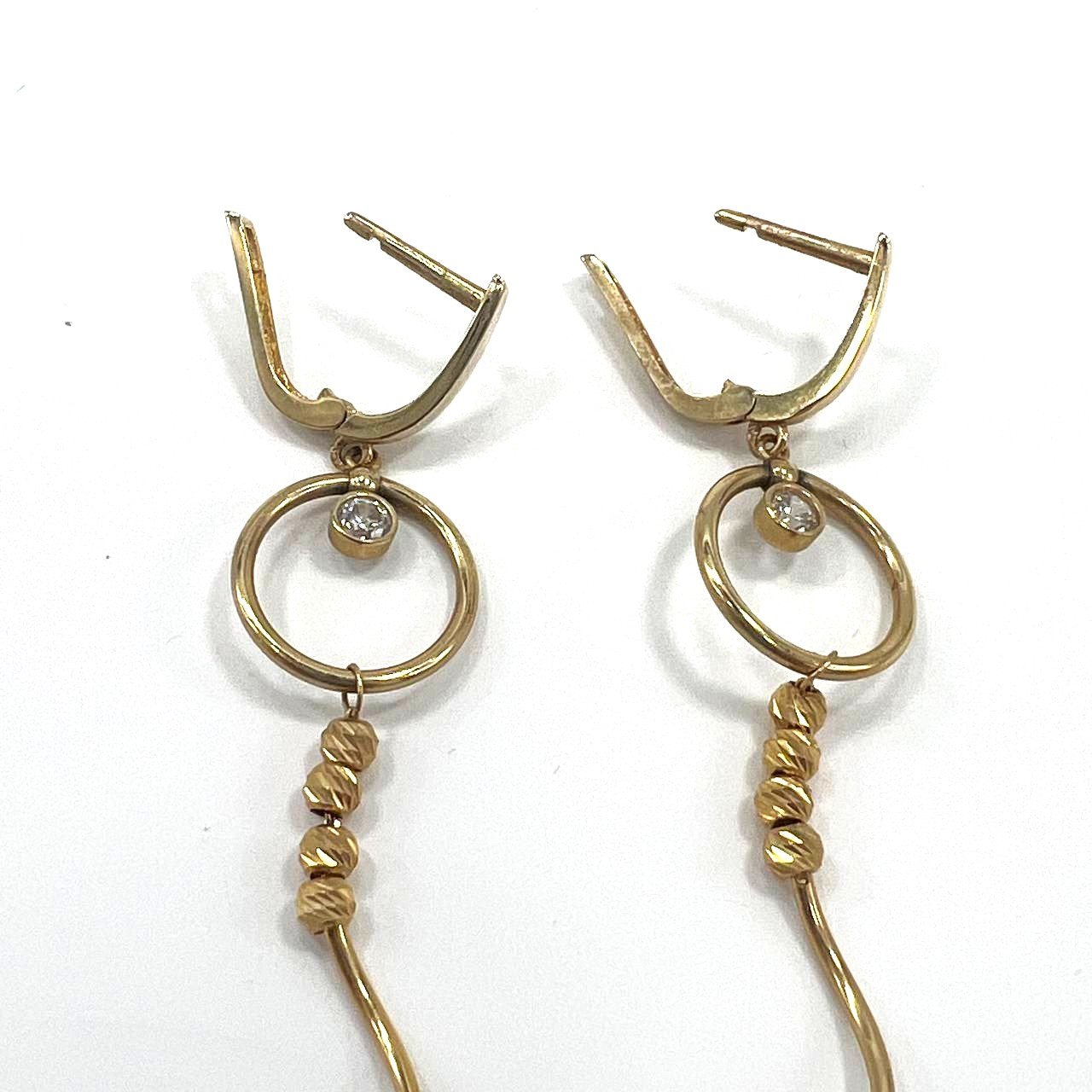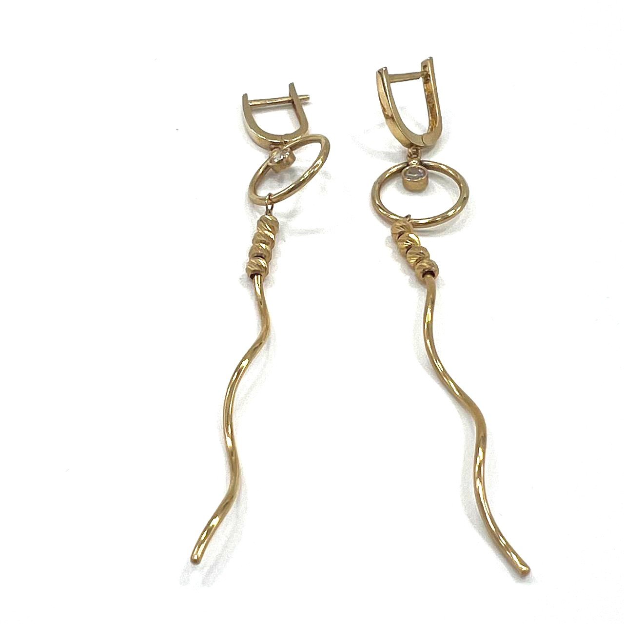 Elegant & beautiful long 14K yellow gold earrings Suitable for evening parties.