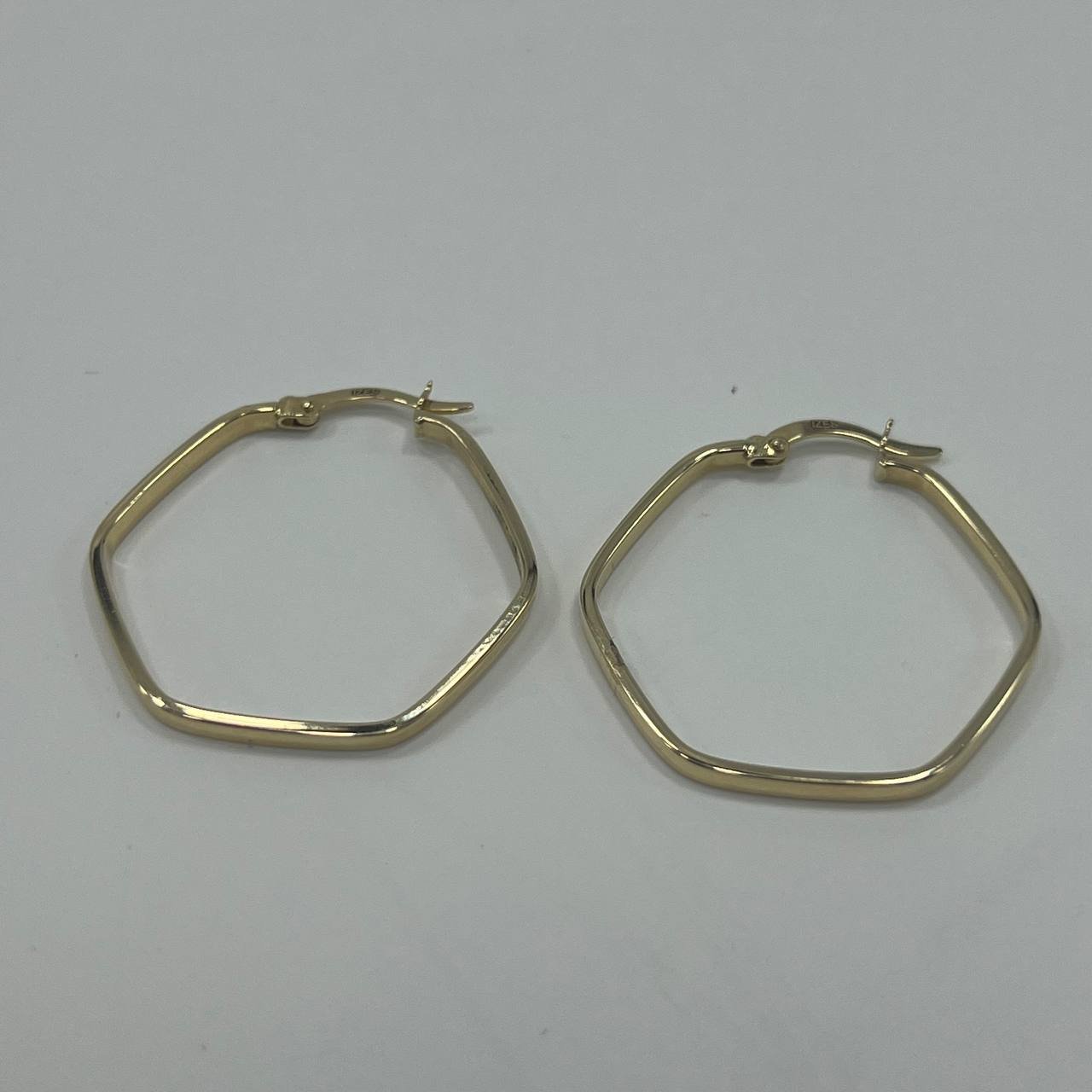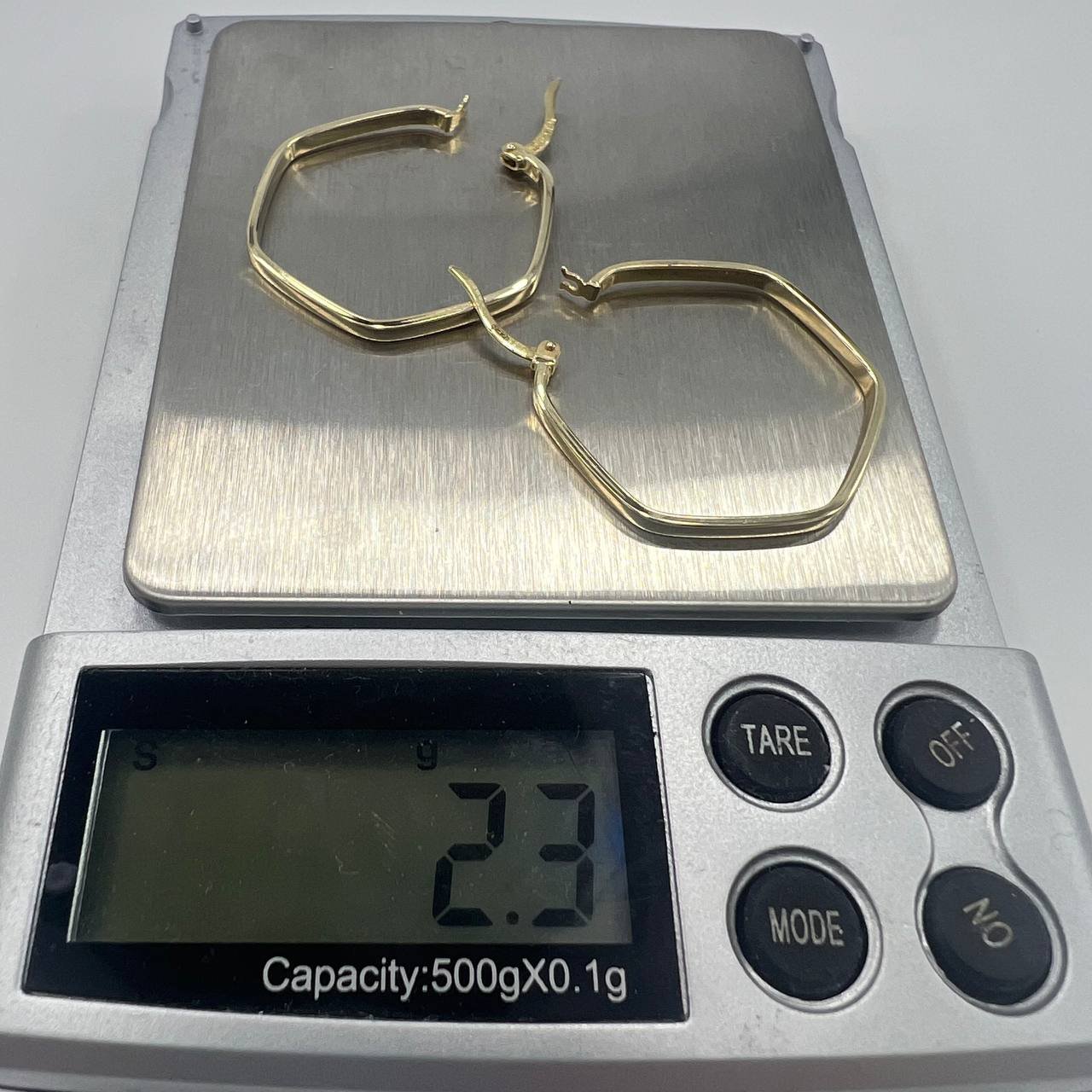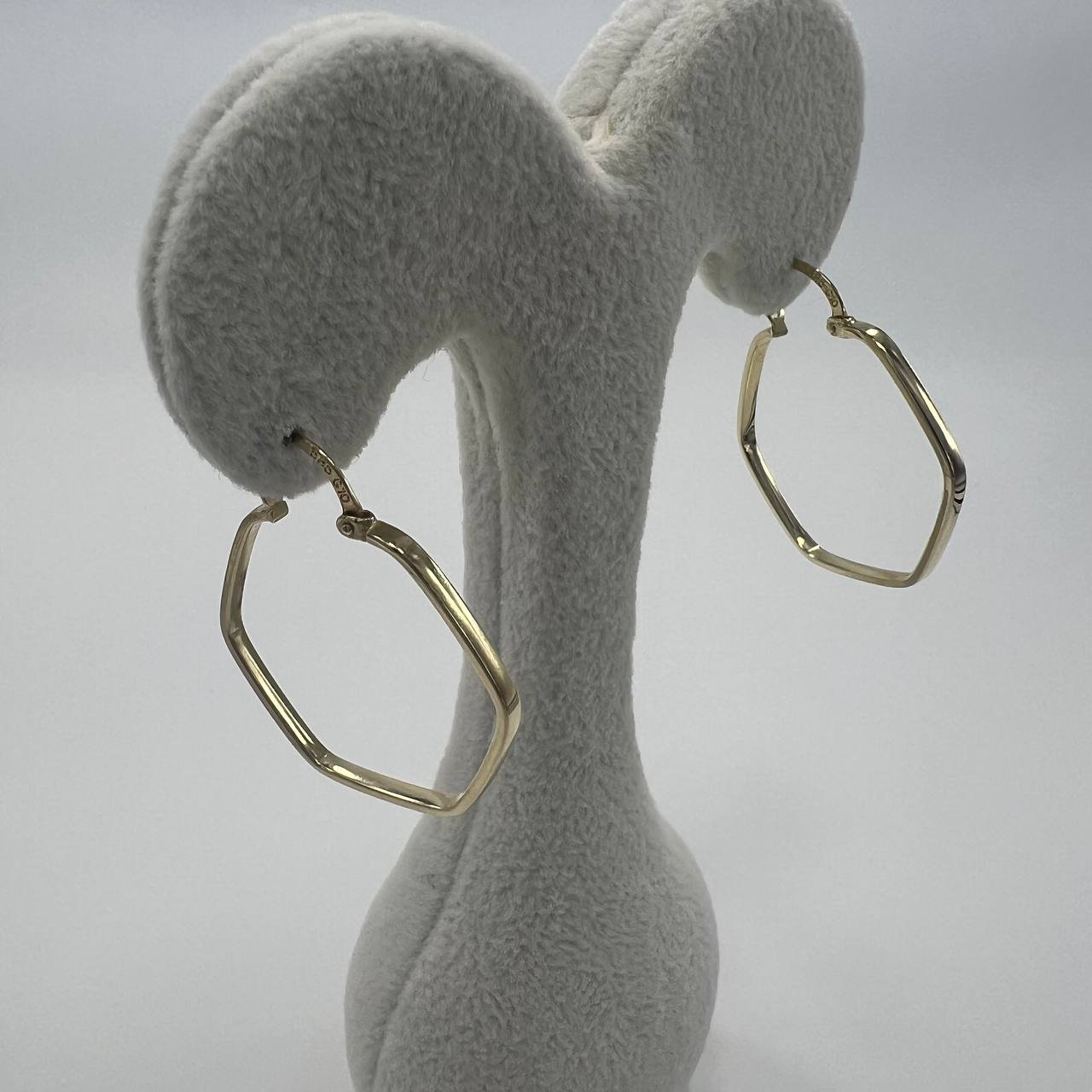 Elegant gold earrings in Hexagonal shape design, lightweight and stylish