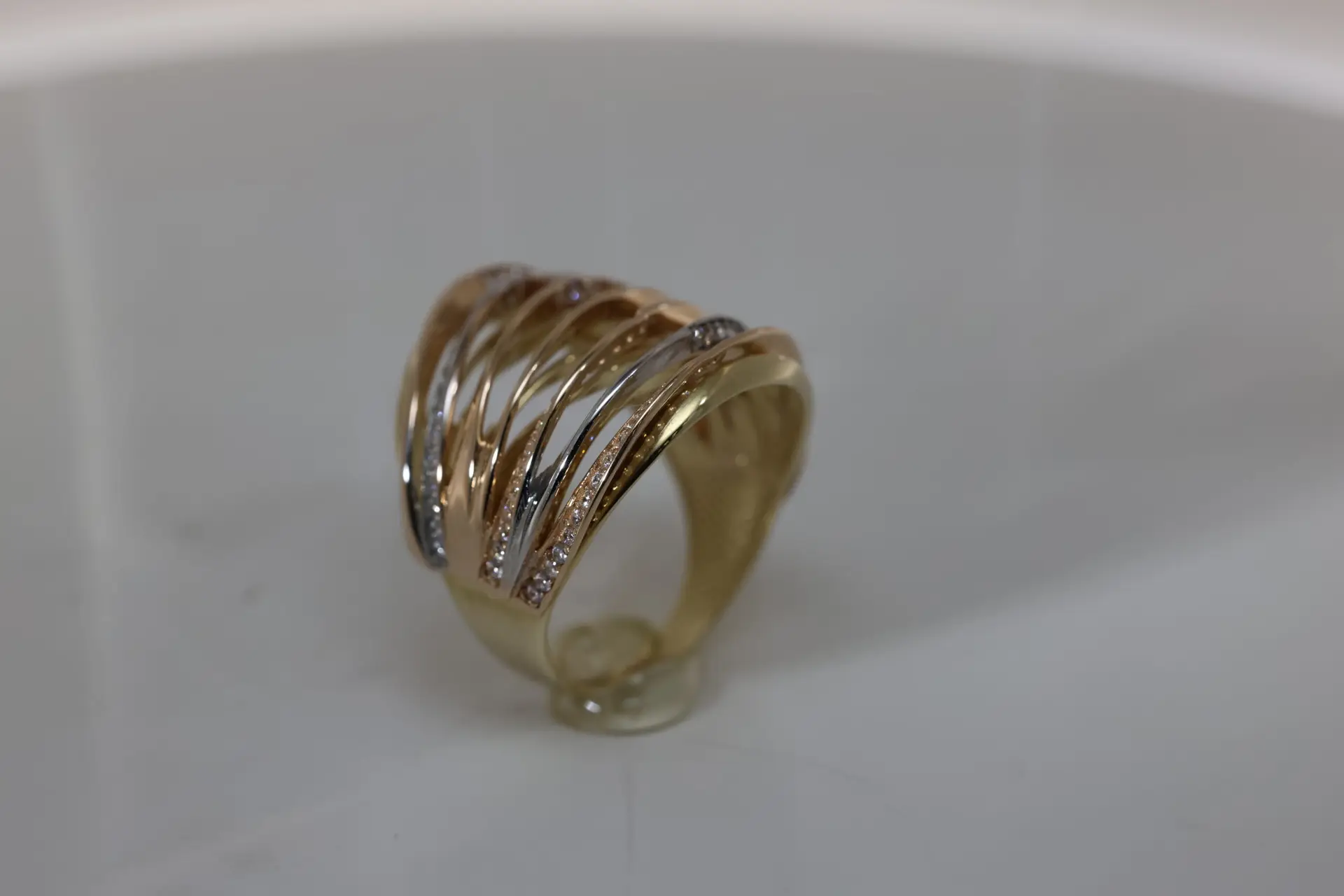 Elevate your jewelry collection with our stunning gold ring featuring a slanted mesh design and intersecting line details. This unique piece brings together contemporary elegance and classic charm, making it a perfect accessory for any occasion. Whether you wear it during the day or for a night out, this ring is sure to turn heads.