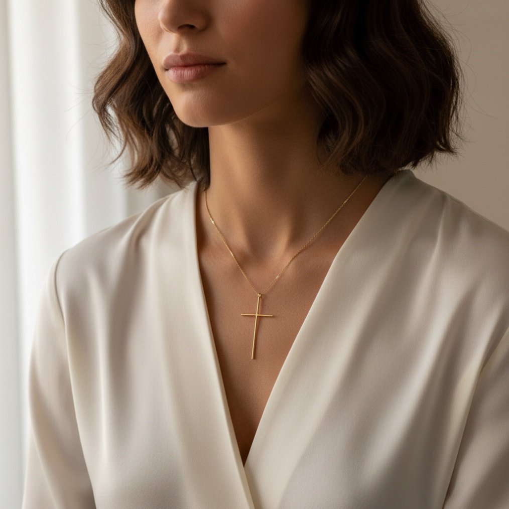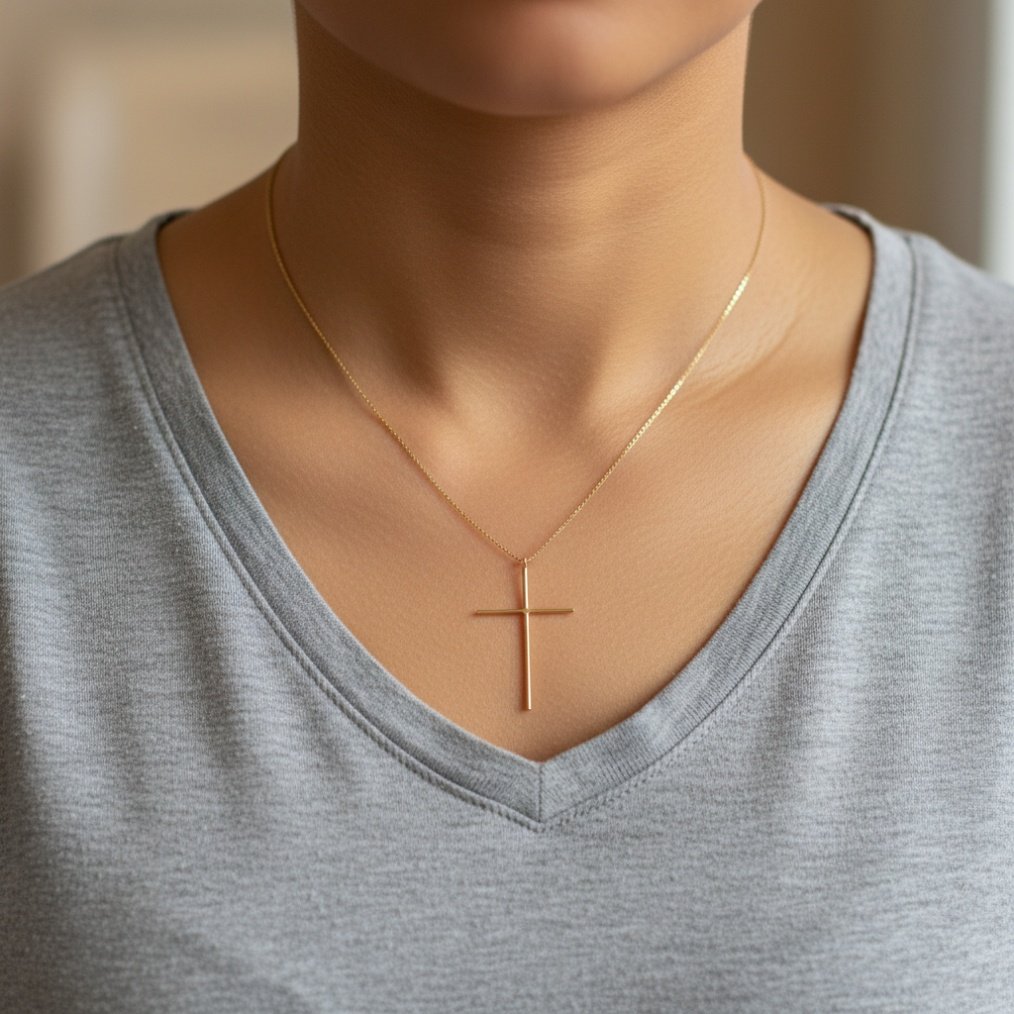 - Dimensions: Cross: Approx. 3.0 cm (1.2″) length, 2.0 cm (0.8″) width | Chain: Approx. 45 cm (18″) length