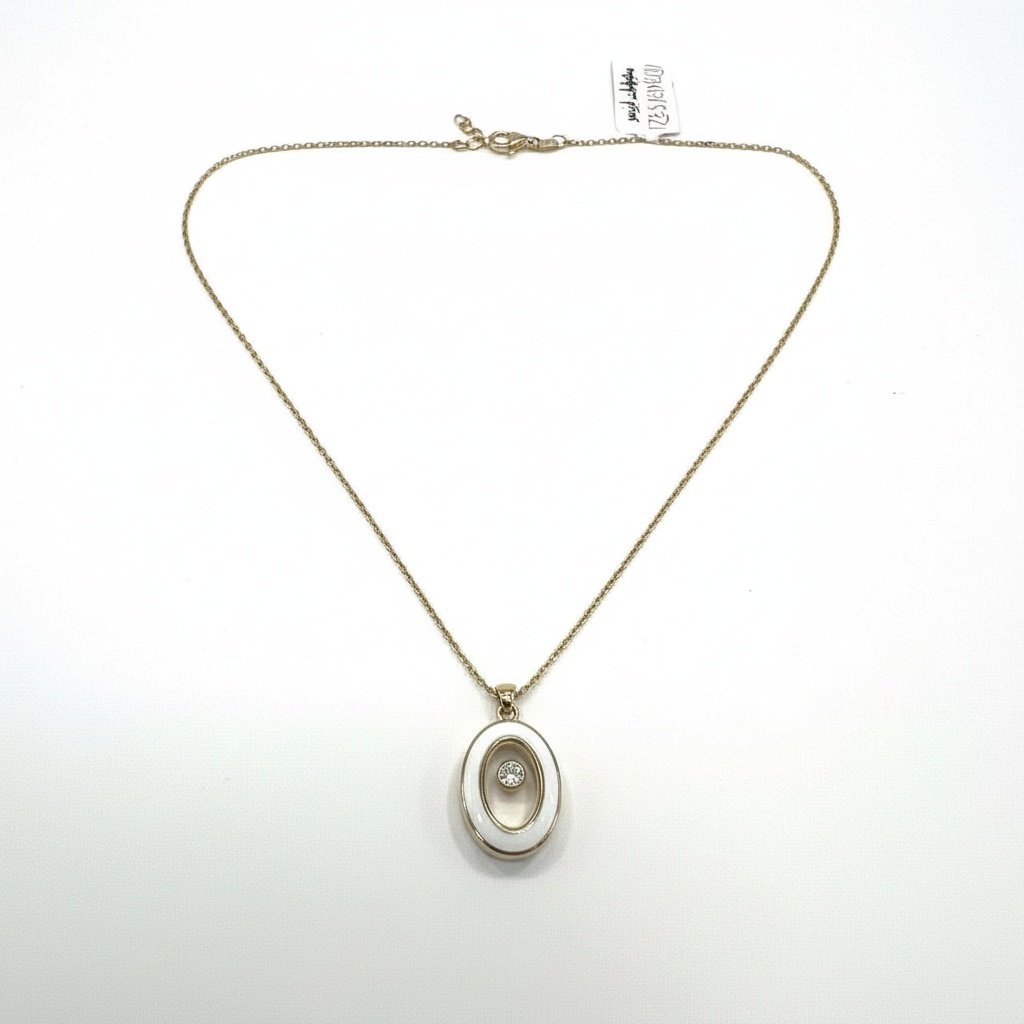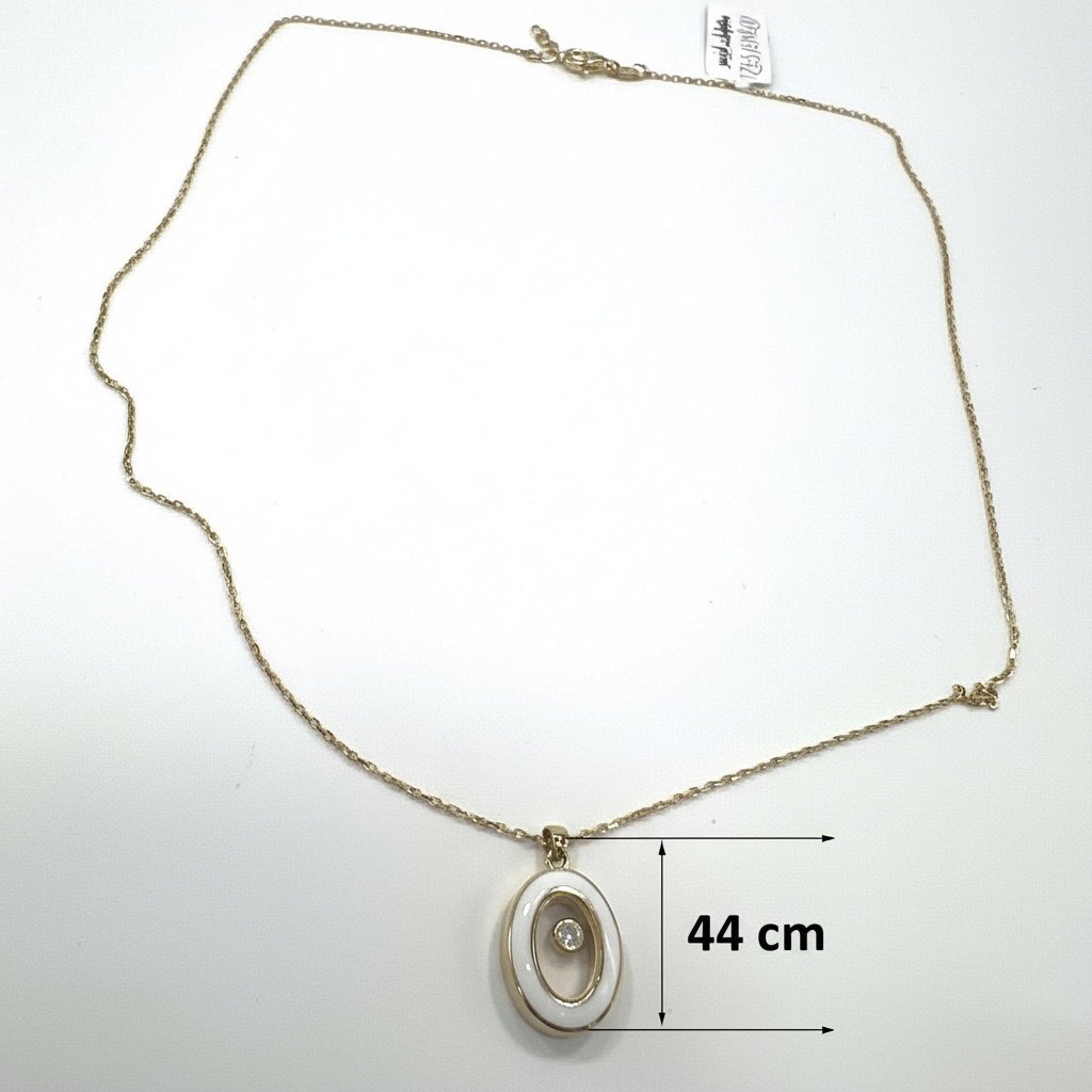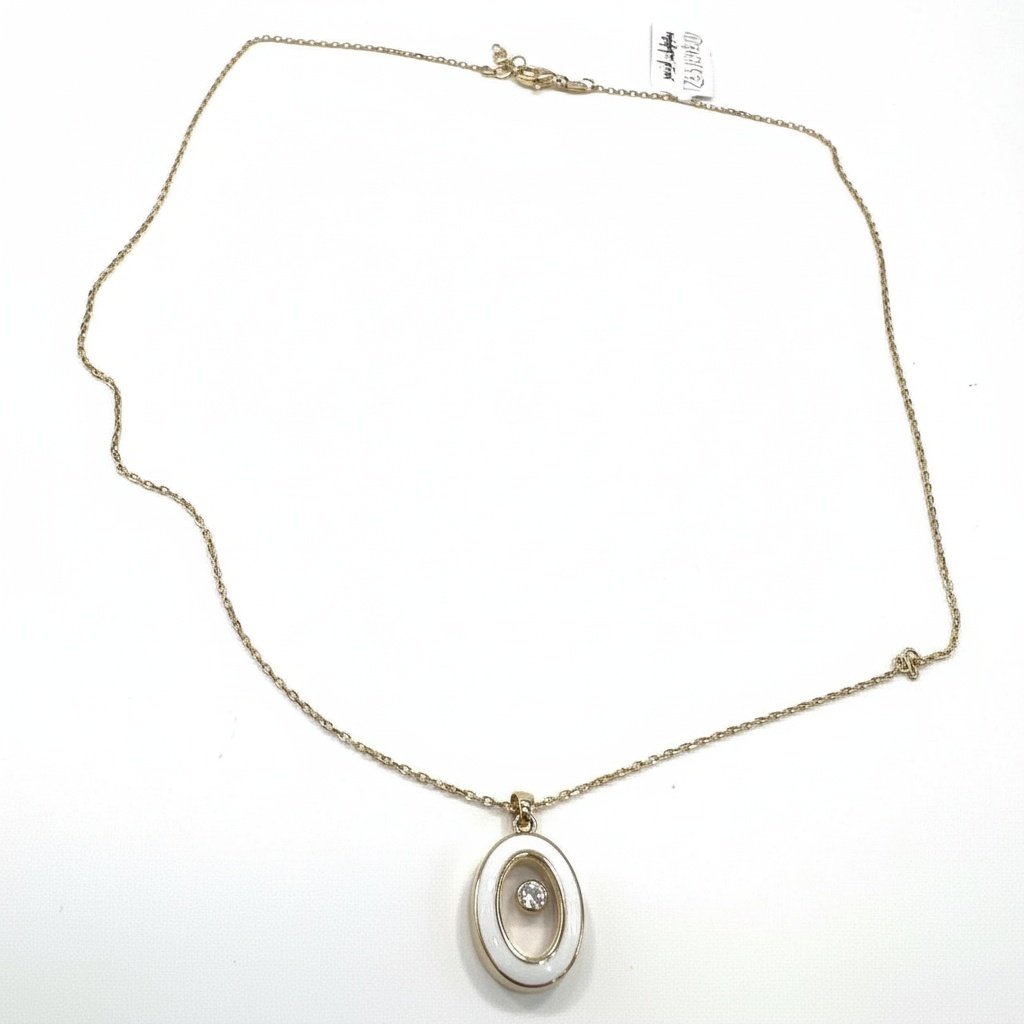 Discover the exquisite charm of this stunning gold necklace, featuring a beautifully crafted oval pendant adorned with pristine white enamel and a captivating diamond. This piece effortlessly blends modern design with timeless elegance, making it a perfect addition to any jewelry collection.