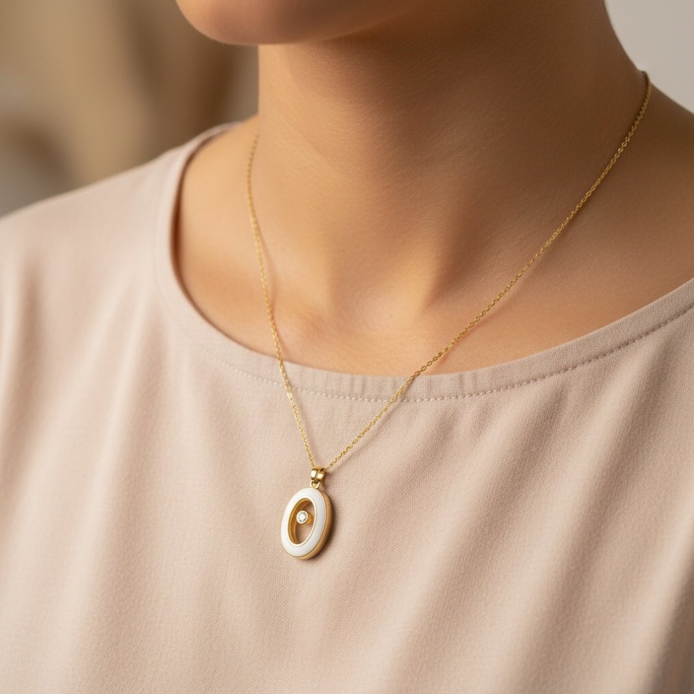 - Chic Oval Pendant Design: A unique oval silhouette, elegantly framed with smooth, lustrous white enamel for a sophisticated contrast.