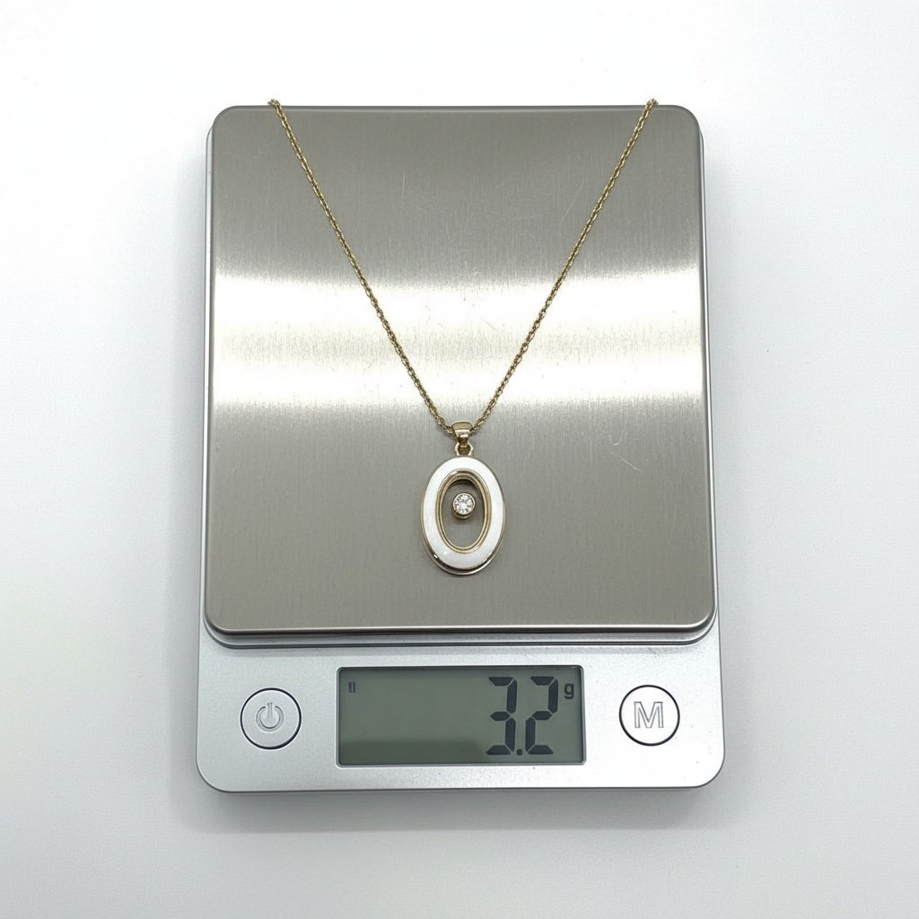 Elegant Gold & White Enamel Diamond Oval Pendant Necklace