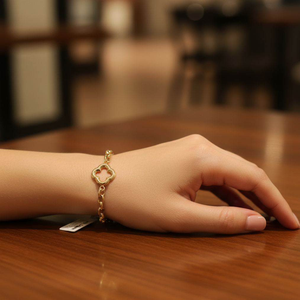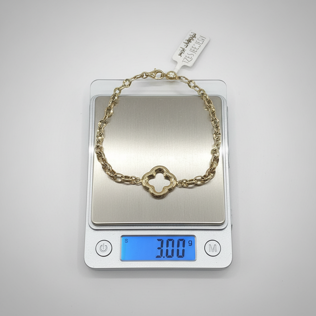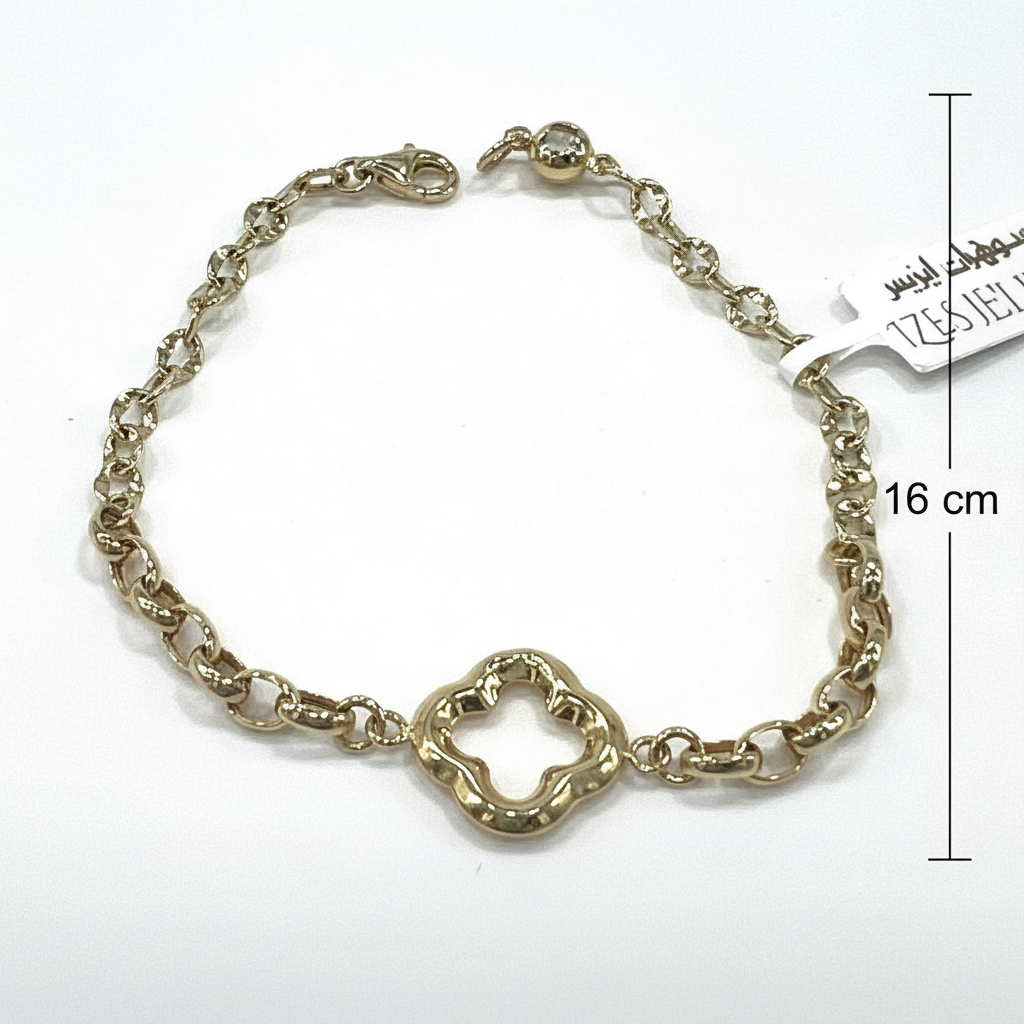 Discover the beauty of this 14K Yellow Gold Clover Bracelet, crafted from genuine 14K gold with exceptional craftsmanship and refined design, exclusively from IZES Jewelry. This elegant piece features a graceful clover centerpiece, a universal symbol of luck, love, and harmony, making it perfect for everyday wear or special occasions. The polished gold finish and smooth, flowing lines give it a refined, luxurious glow that complements any outfit. Combining timeless charm with modern elegance, its unique link chain adds texture and style, while the secure lobster clasp ensures a comfortable and confident fit for daily wear. Lightweight, elegant, and effortlessly versatile, it’s the perfect accessory for women who appreciate fine craftsmanship and timeless beauty.
