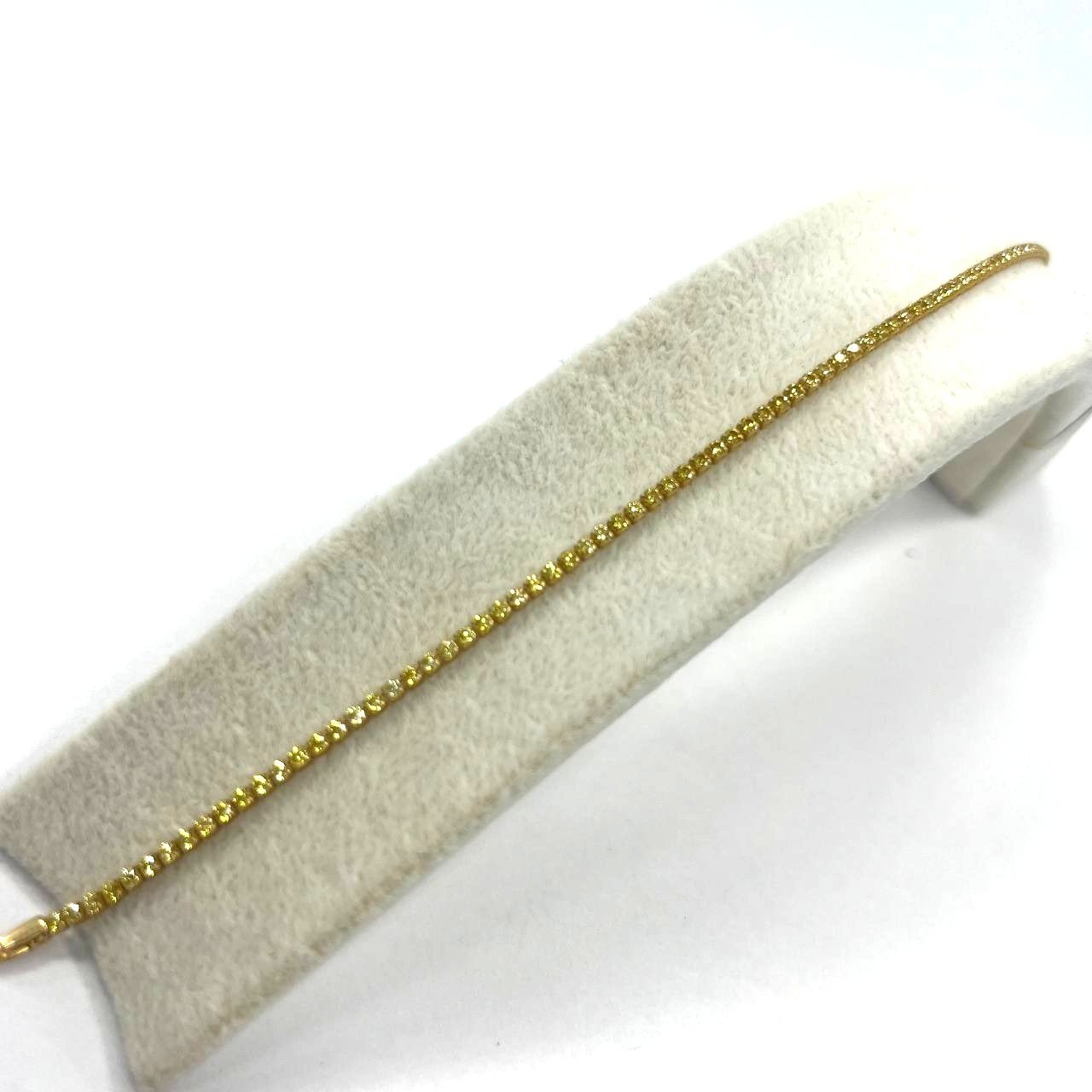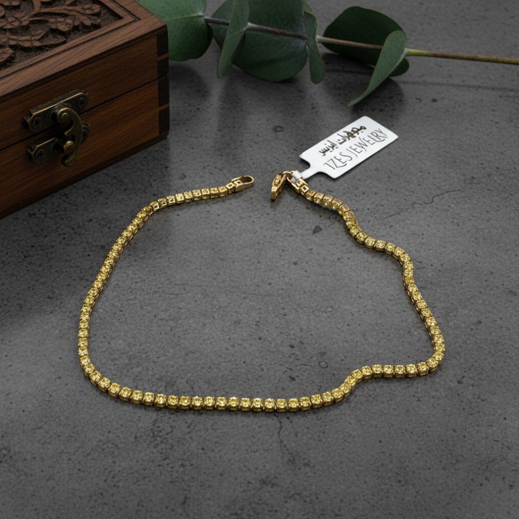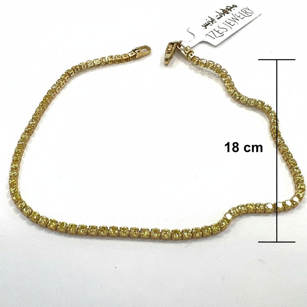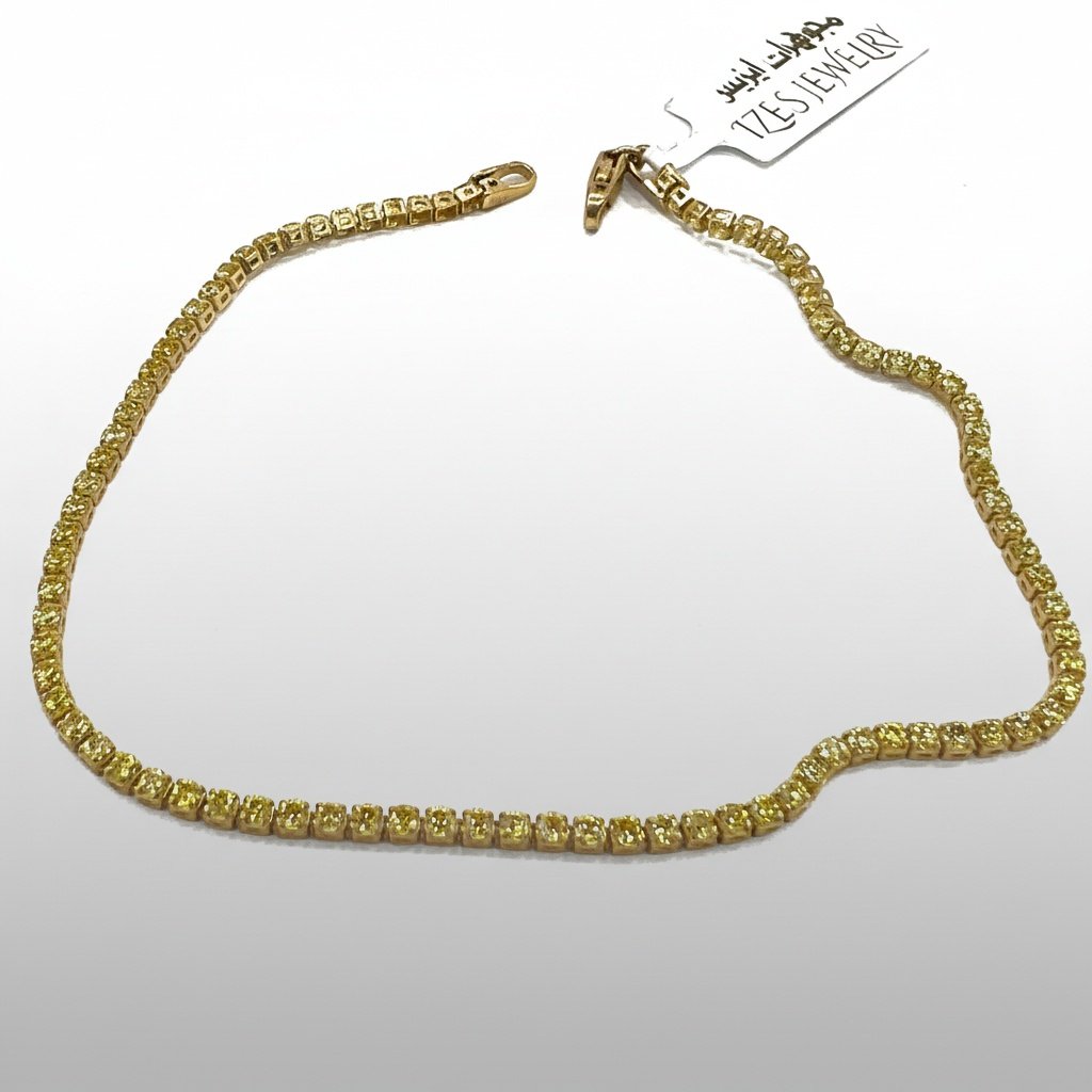 Discover the beauty of this elegant tennis bracelet, crafted from genuine 14K yellow gold with exceptional craftsmanship and refined design. This elegant piece features a full line of premium sparkling yellow zircon stones, precisely set to form a continuous, shimmering golden line that reflects light beautifully from every angle. Combining timeless charm with modern elegance, its rich yellow sparkle blends seamlessly with the gold setting, giving it a luxurious and refined finish. Lightweight, secure, and stylish, it’s perfect for everyday wear or for adding a touch of brilliance to special occasions, making it a sophisticated touch to any look.