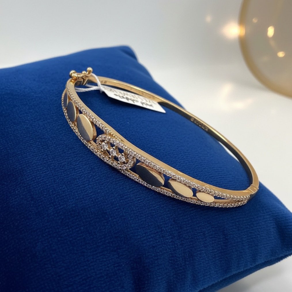 14K Yellow Gold Bangle Bracelet — Zircon & Polished Oval Design | Izes Jewelry