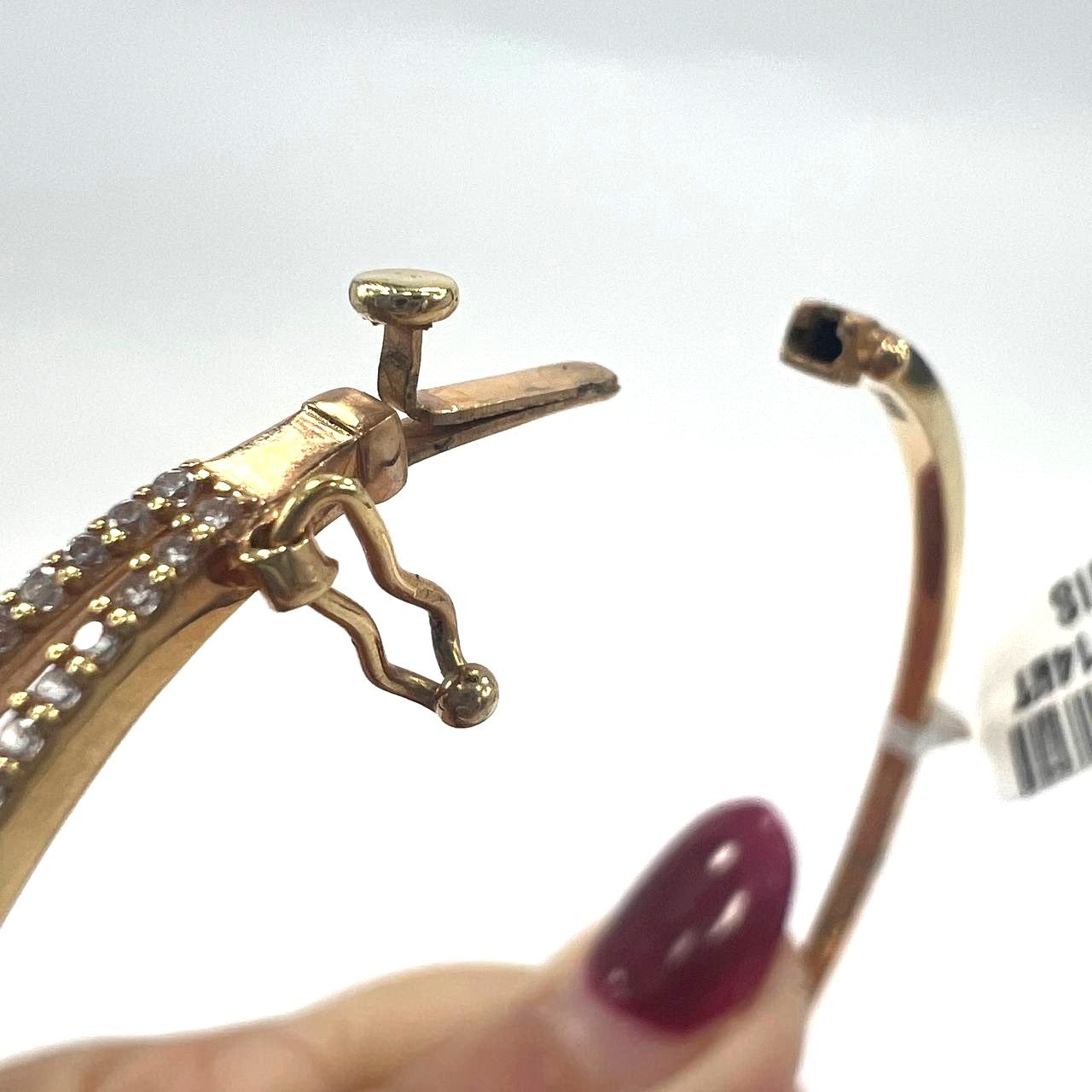 Discover the beauty of this stunning 14K Yellow Gold Bangle Bracelet, crafted by Izes Jewelry with exceptional craftsmanship and a truly refined design. This elegant piece features a full line of sparkling zircon stones beautifully contrasted with polished oval elements, making it perfect for elevating any outfit—from casual daytime looks to evening glamour. Combining timeless charm with modern elegance, this bracelet adds a sophisticated touch and a delicate shine to any wrist. It’s lightweight, comfortable, and eye-catching from every angle.