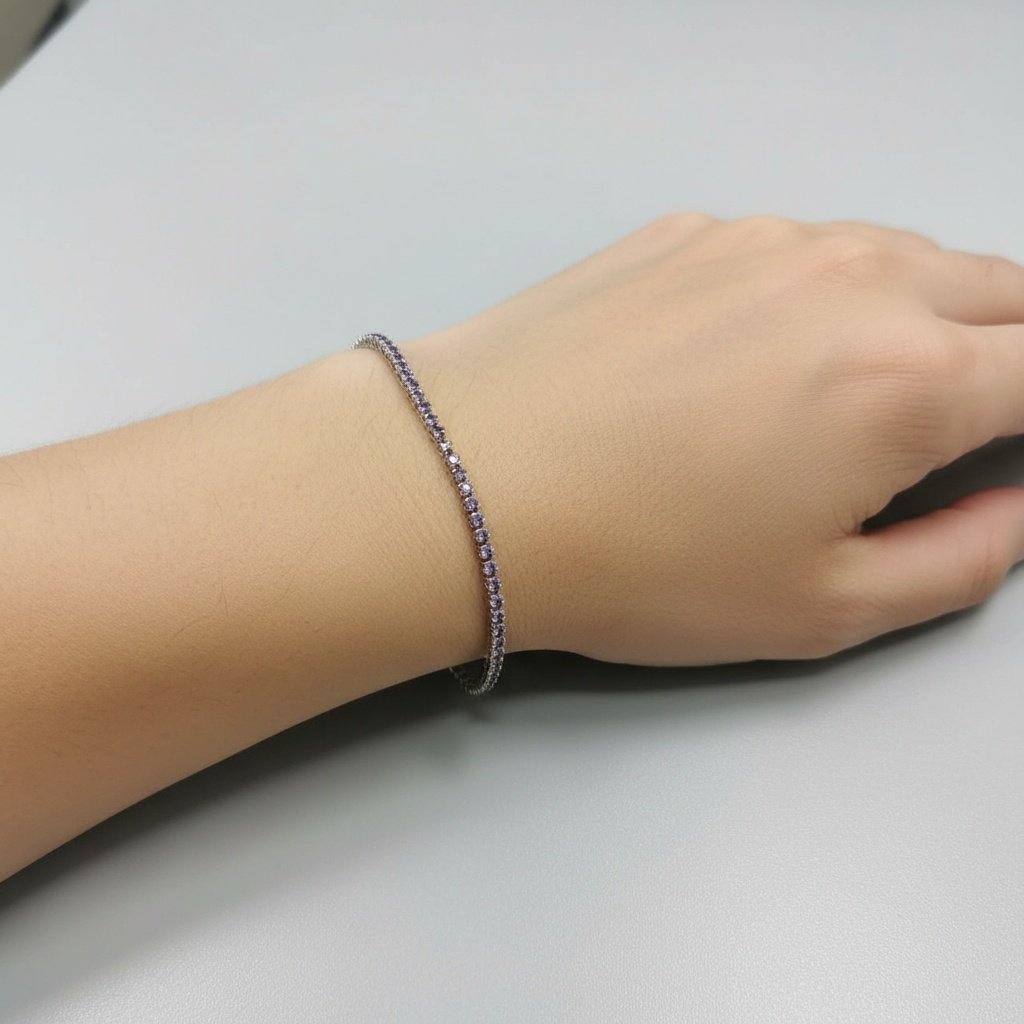 14K White Gold Purple Zircon Tennis Bracelet — Elegant & Vibrant | New