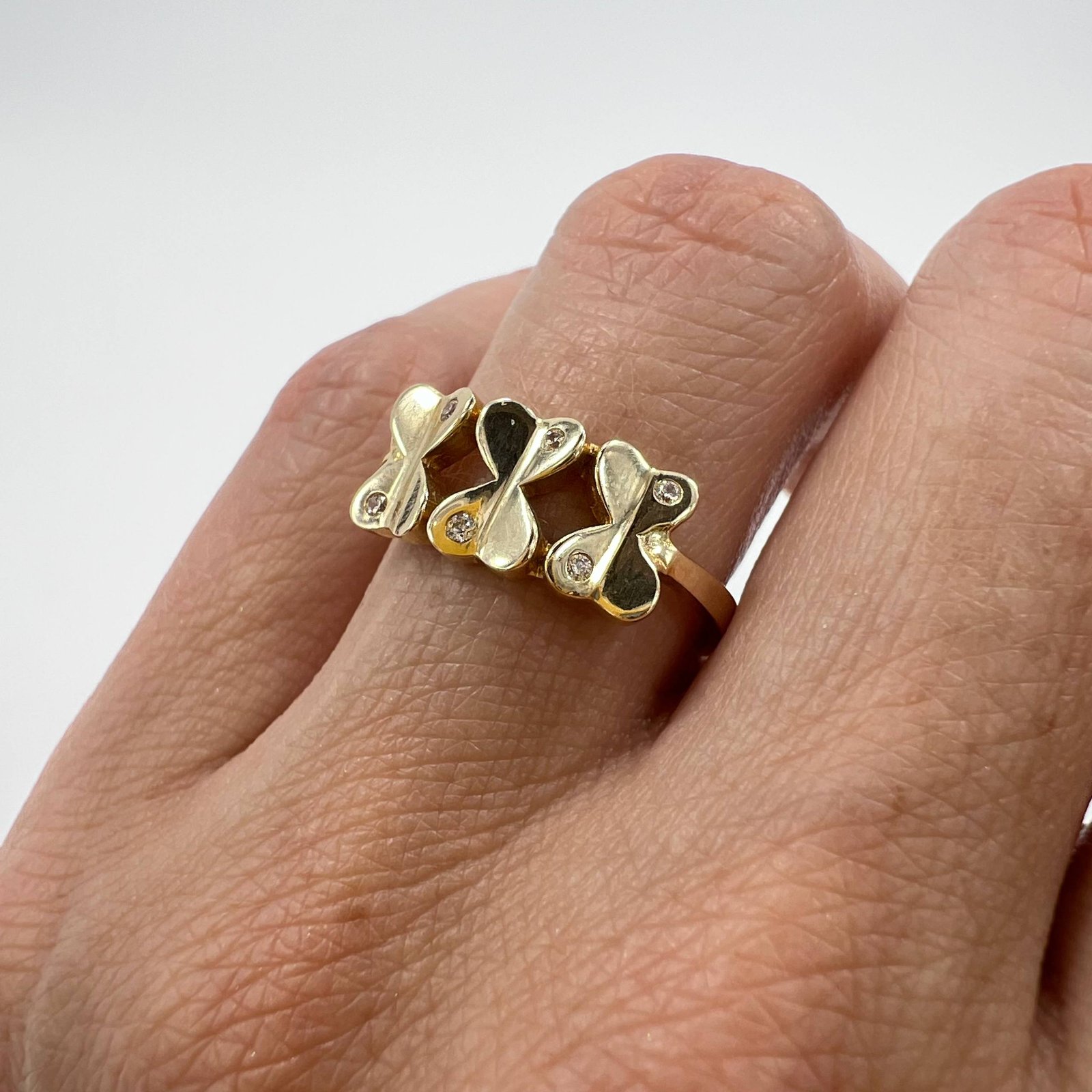 Bring charm and elegance to your jewelry collection with this stunning 14K solid gold ring, crafted in a unique butterfly motif. Each butterfly is delicately accented with sparkling diamonds, symbolizing freedom, beauty, and transformation. Lightweight yet striking, this ring is a perfect blend of playful design and timeless sophistication.