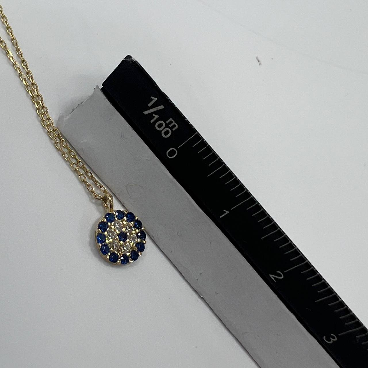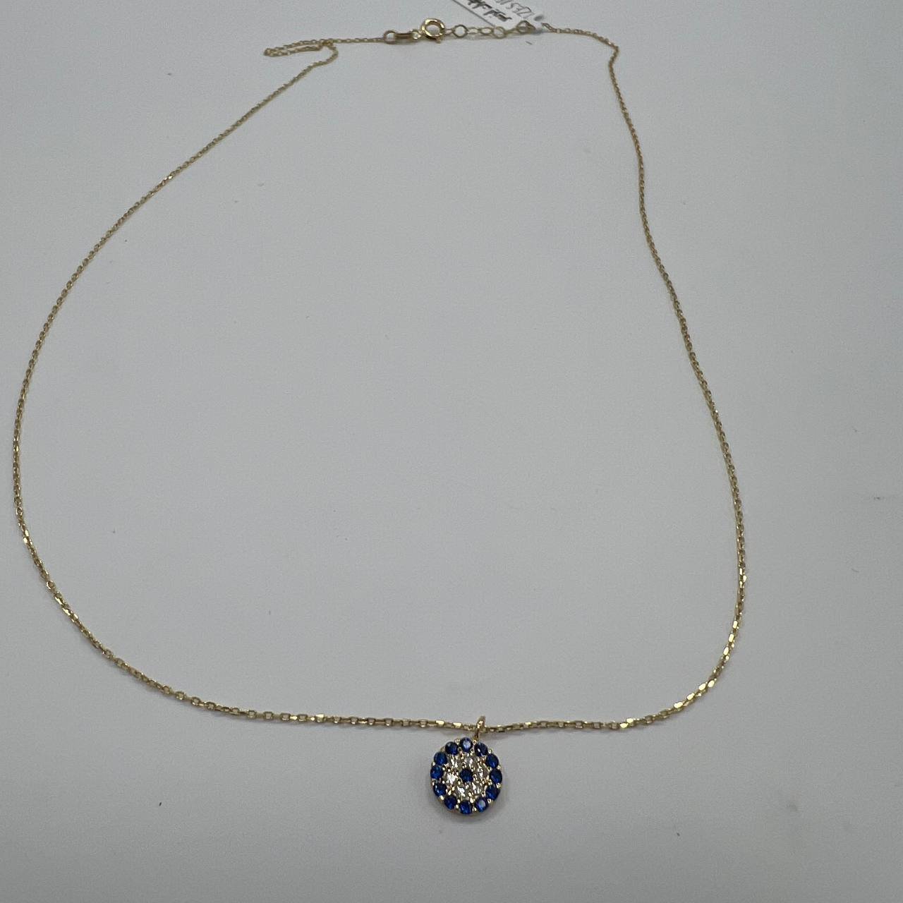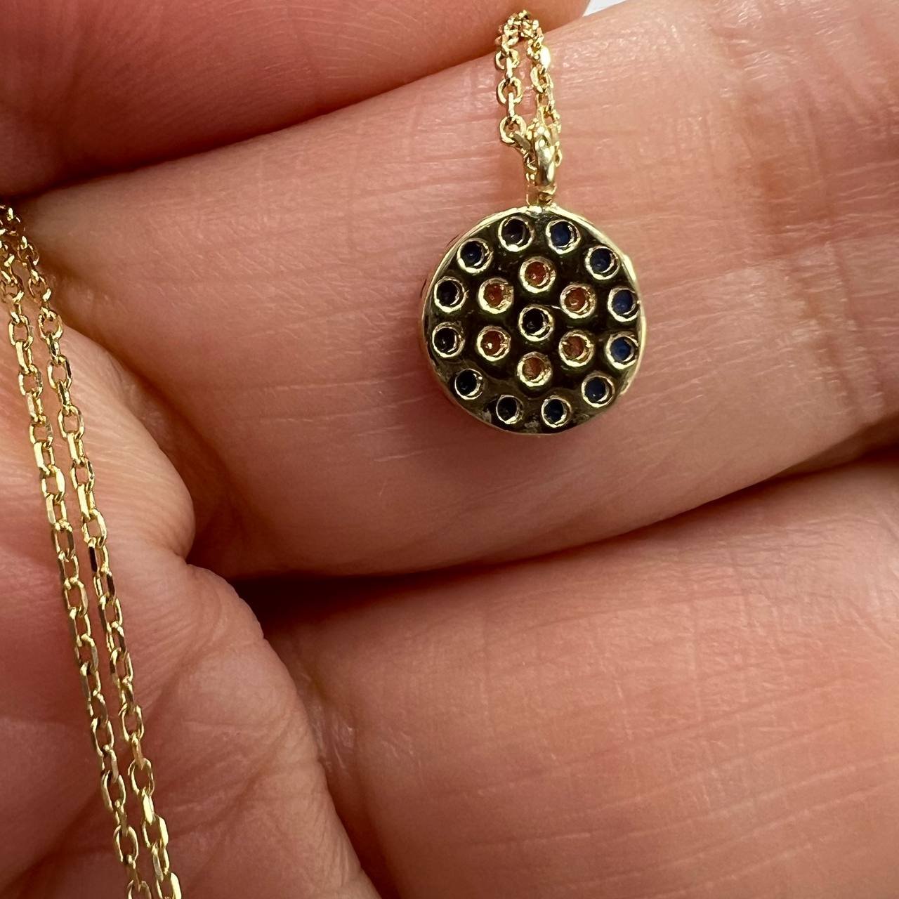 New 14K Solid Gold Necklace – Italian Round Pendant with Blue & White Gemstones 1.4g
