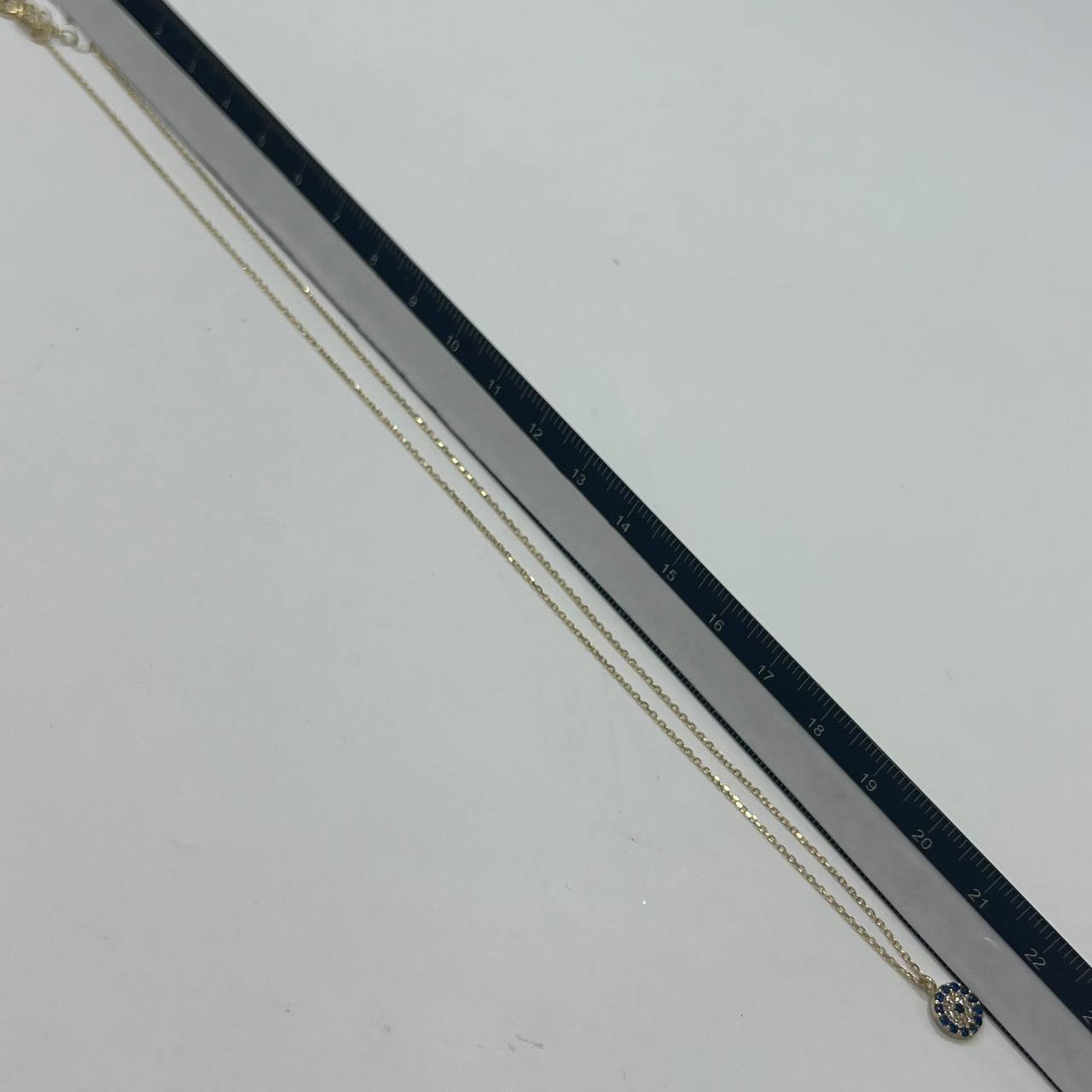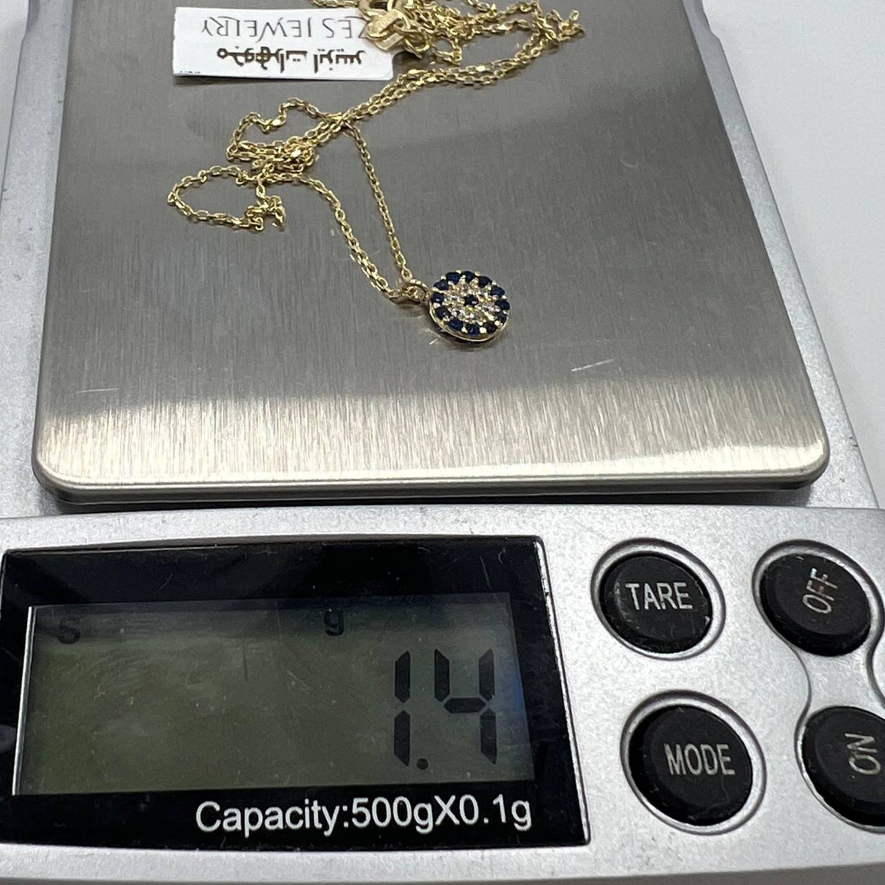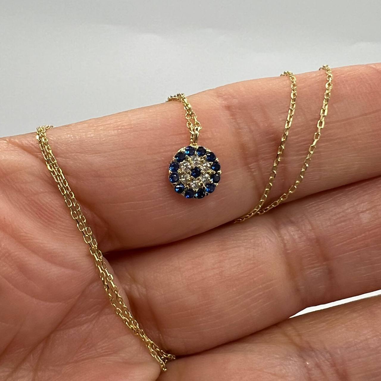 New 14K Solid Gold Necklace – Italian Round Pendant with Blue & White Gemstones 1.4g