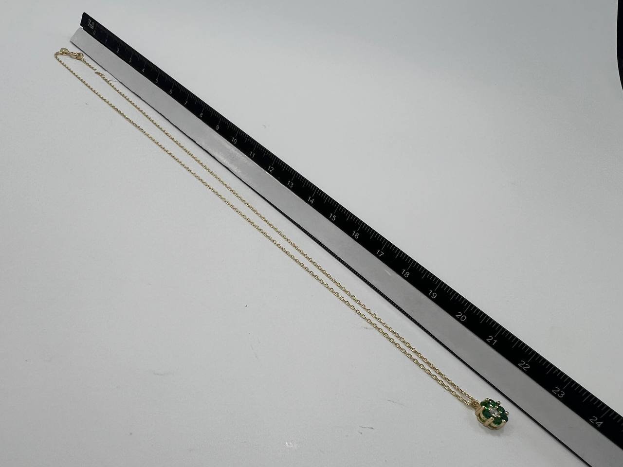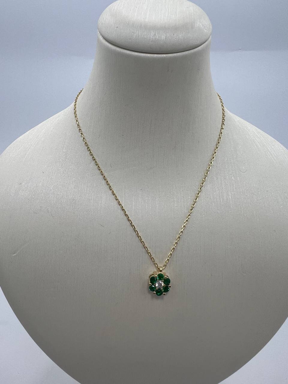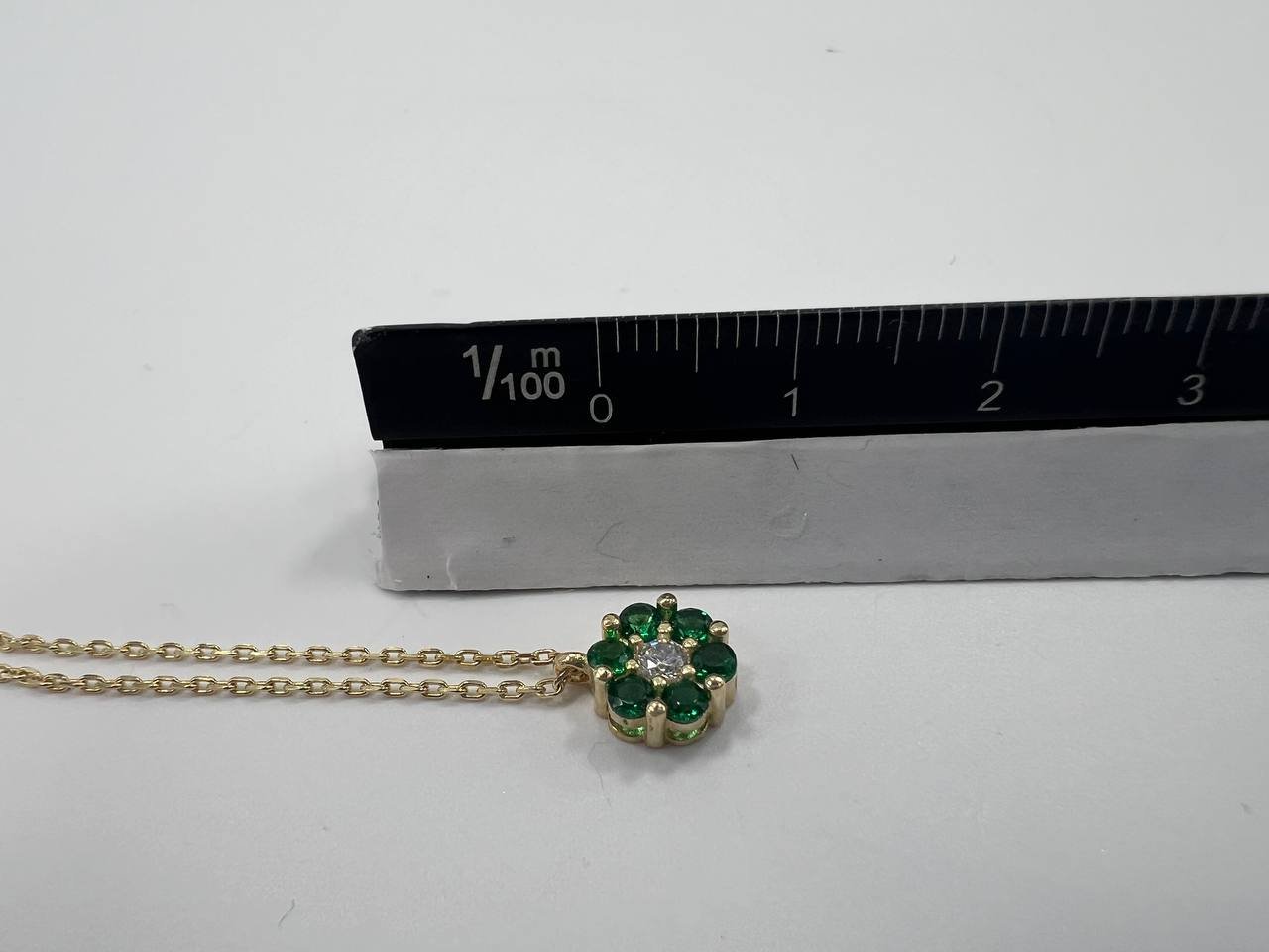 New 14K Solid Gold Necklace Italy – Green & White Zircon Flower Pendant 2.1g
