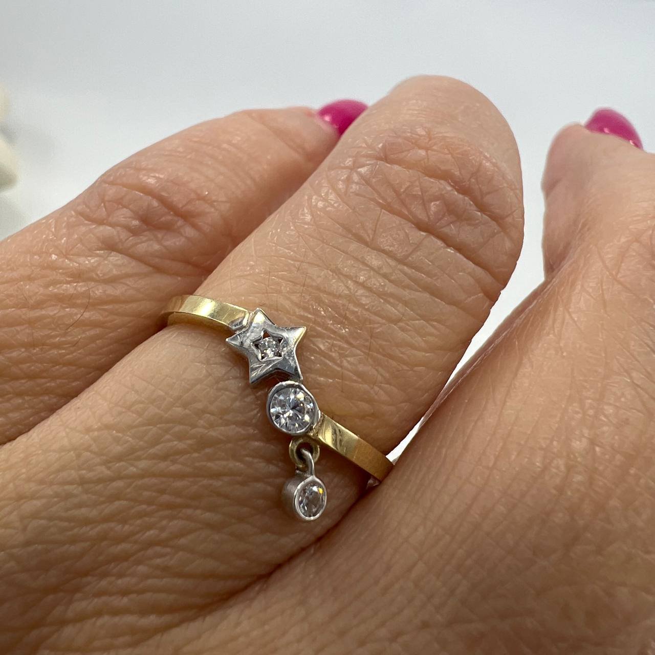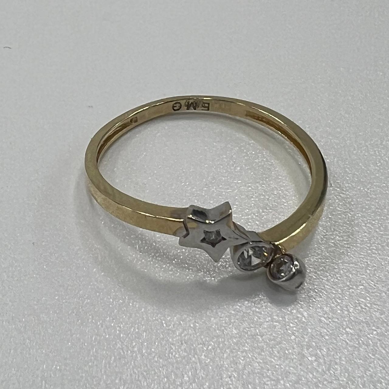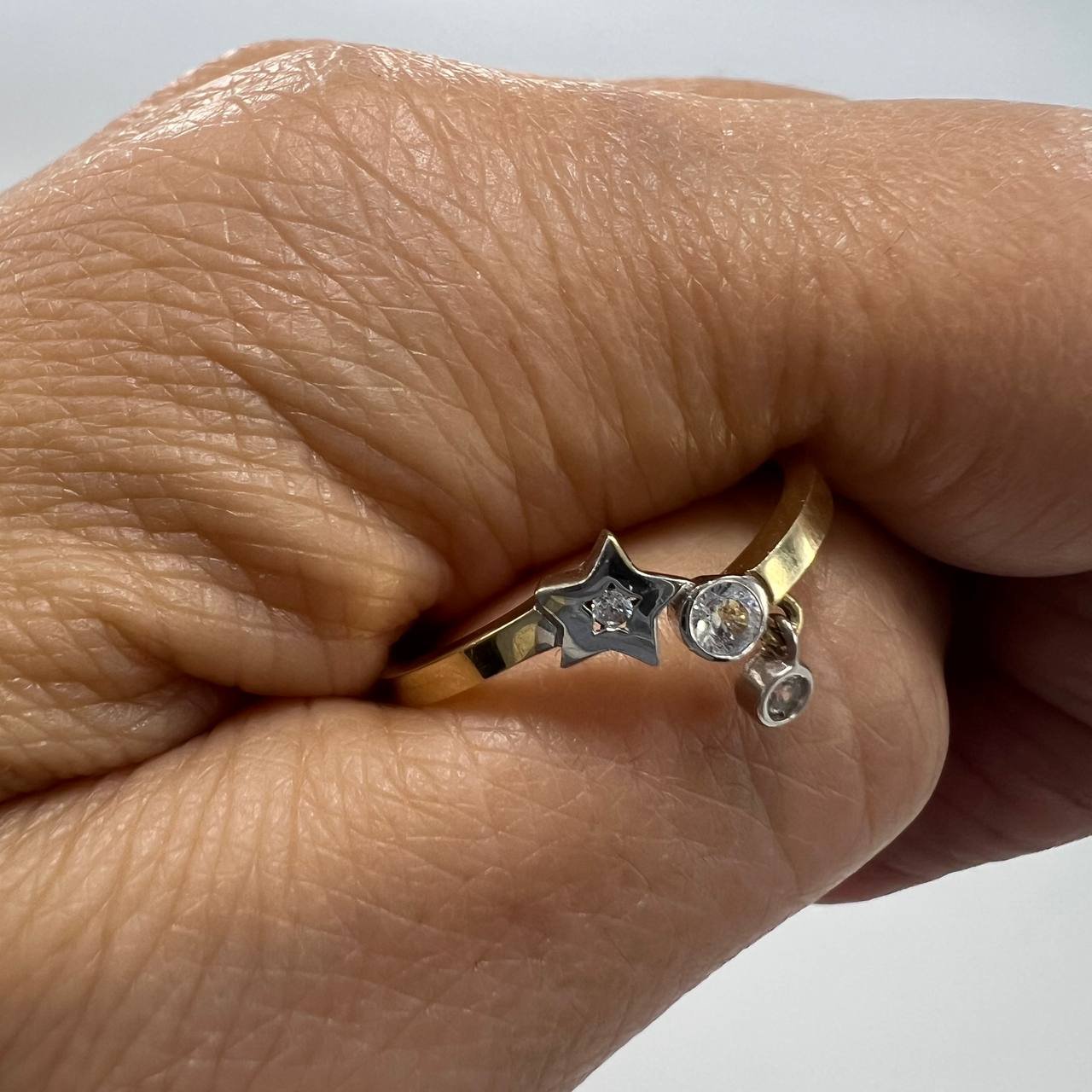 New 14K Solid Gold Ring Italy – Star & White Zircon Drop Design Size 7 1.3g