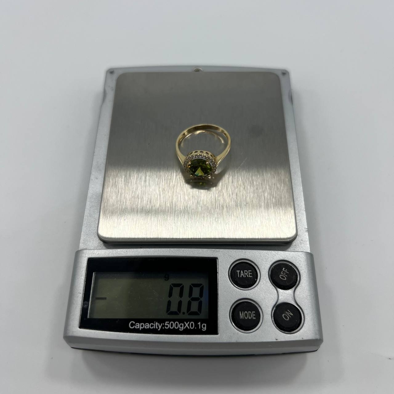 14K Solid Gold Women’s Ring – Green Gemstone with CZ, 0.8g, Size 7