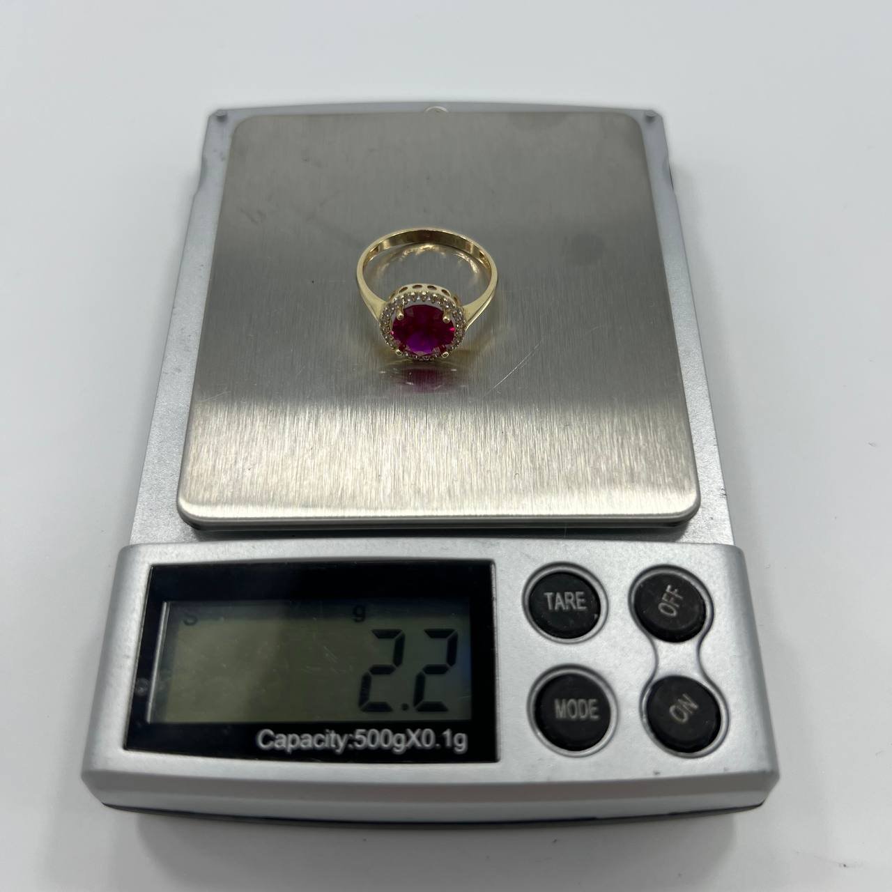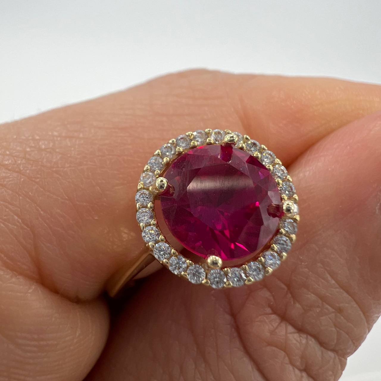 New 14K Solid Gold Women’s Ring – Ruby Red Gemstone with Halo CZ, 2.2g, Size 7