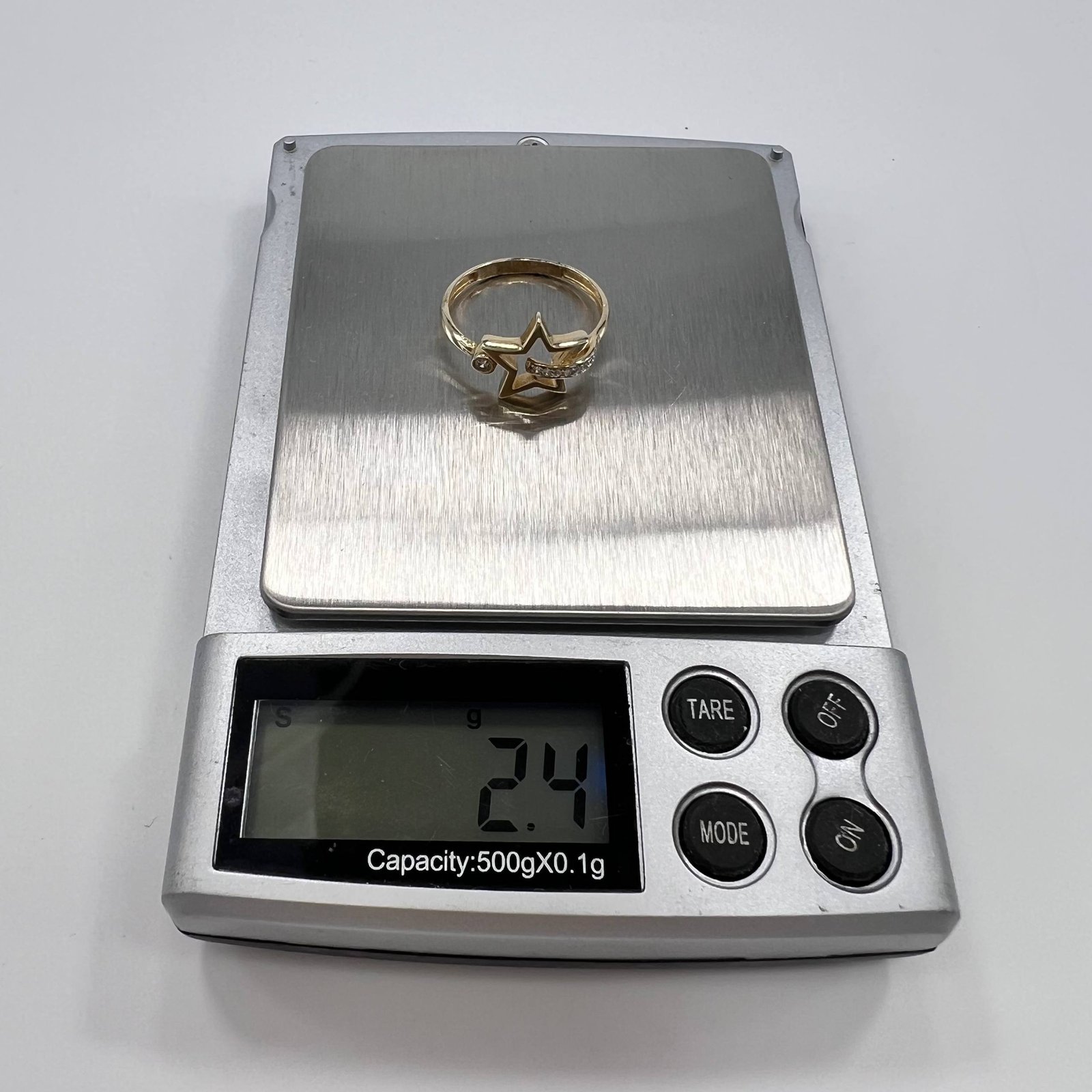 New 14K Solid Gold Women’s Ring – Star Design with Cubic Zirconia, 2.4g, Size 8