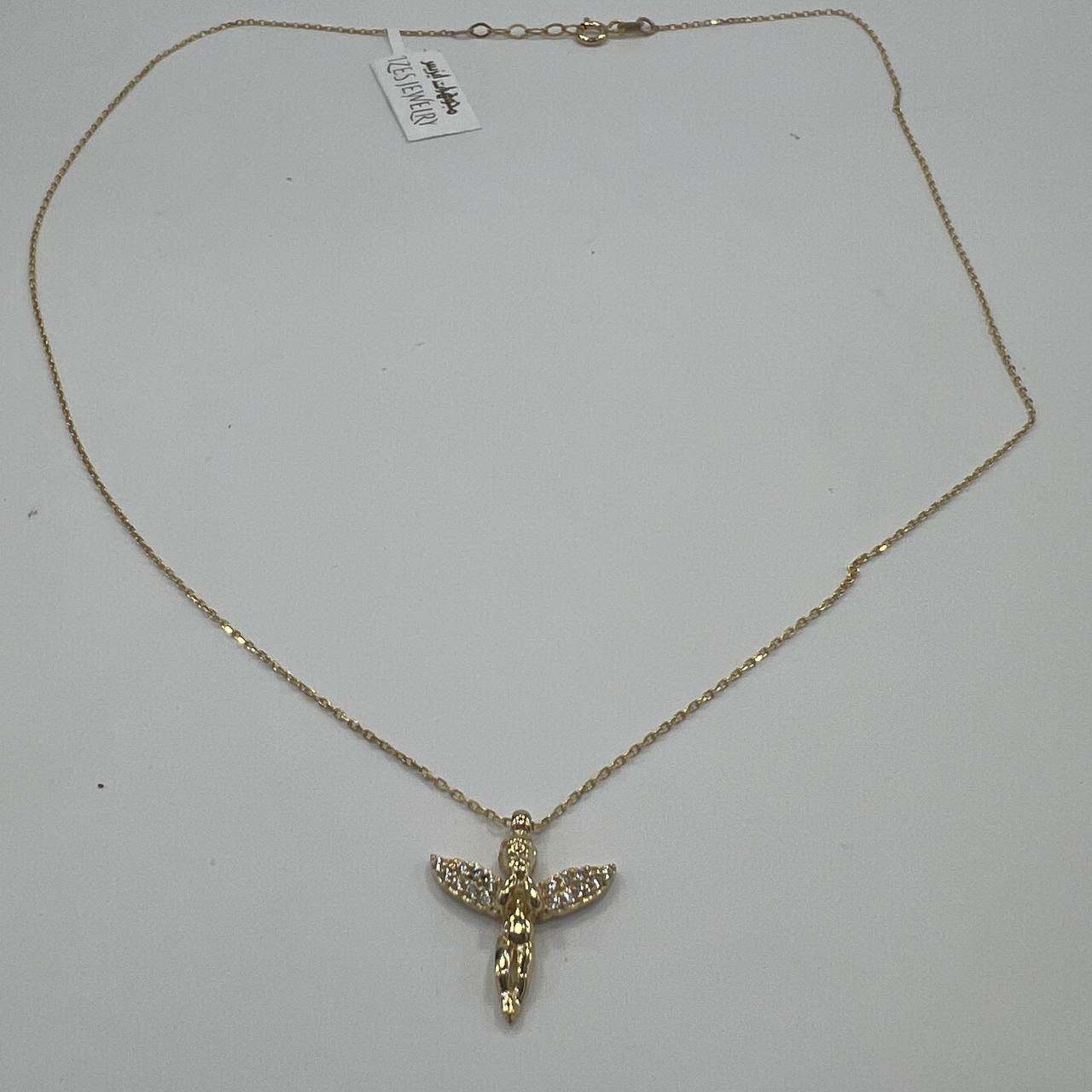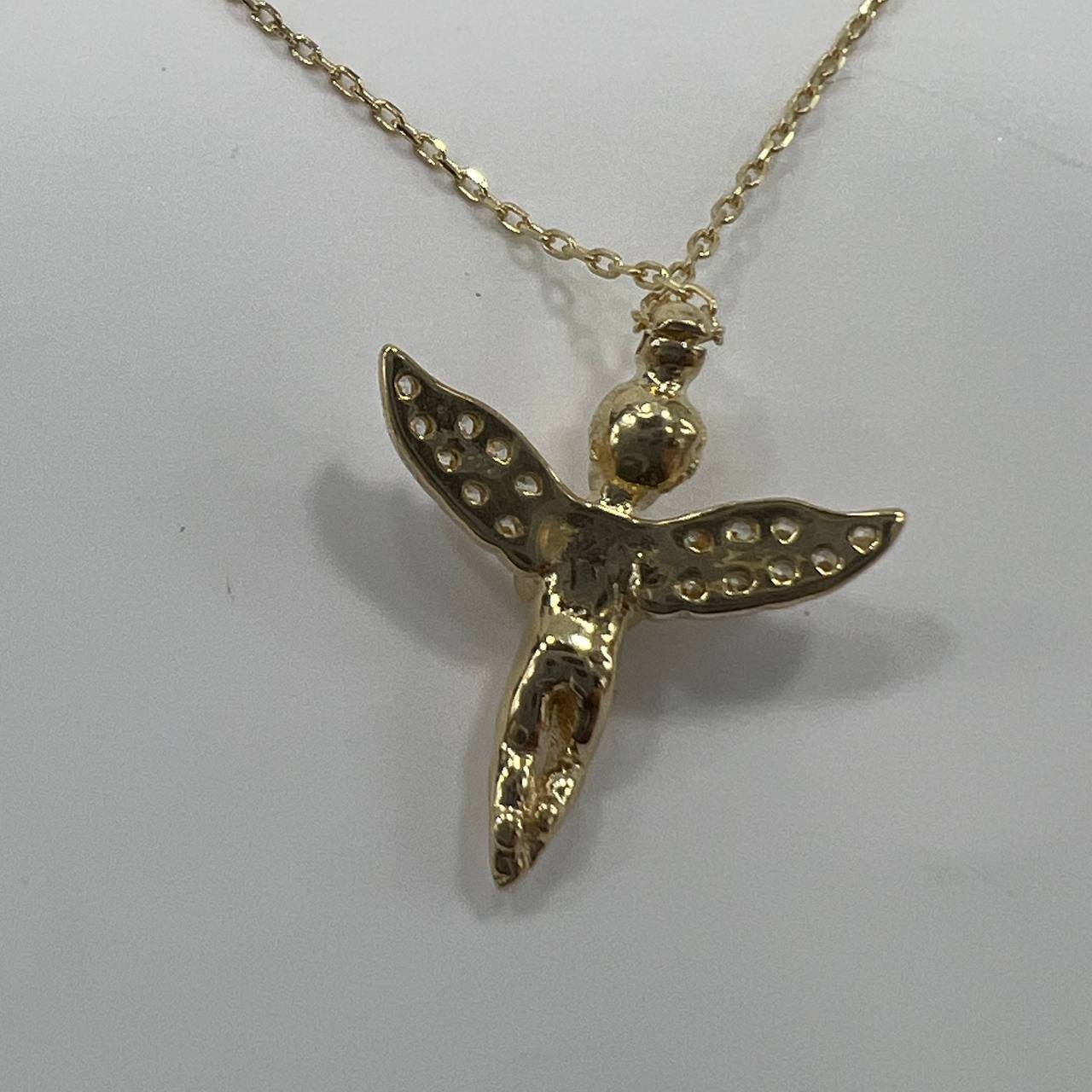 New Elegant 14K Solid Gold Angel Pendant Necklace – Italian Design 2.6g, 22cm