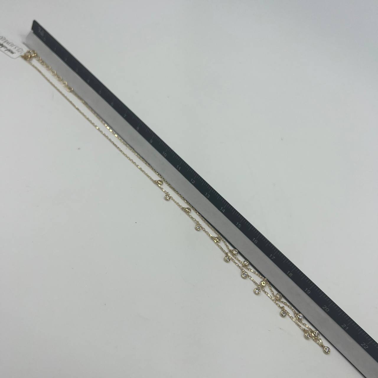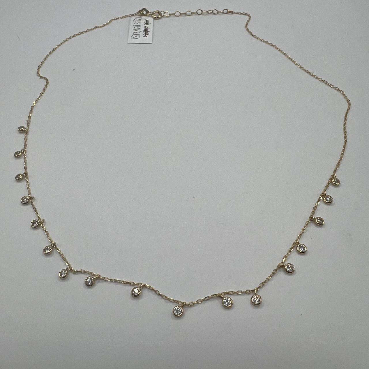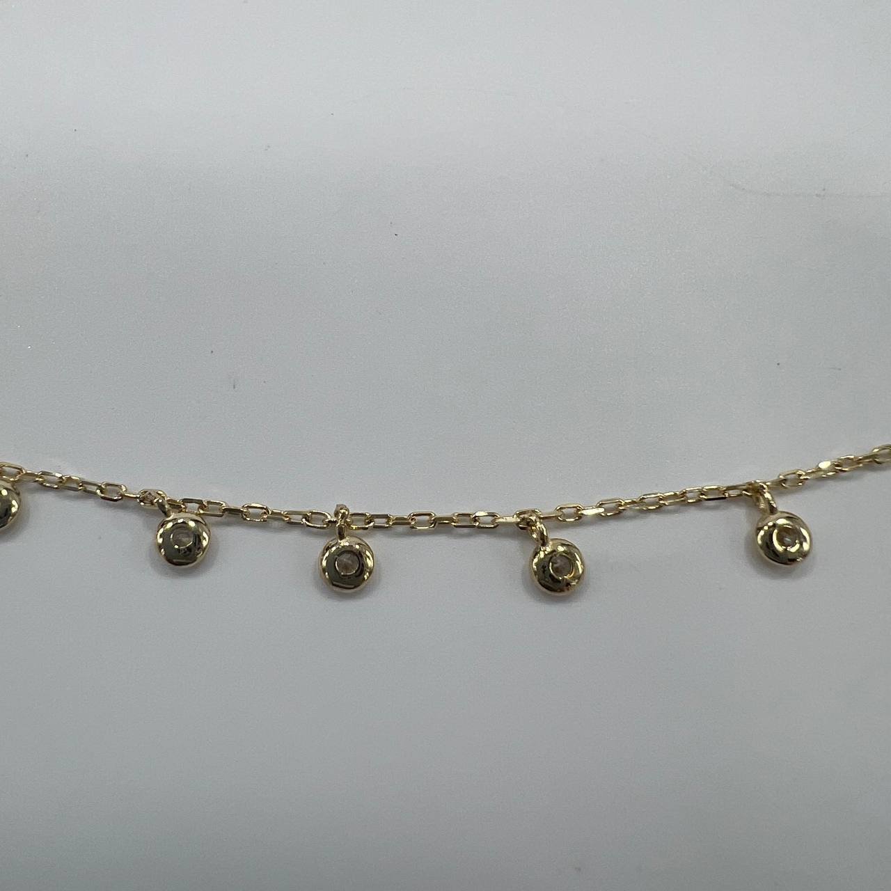This refined 14K Solid Gold Necklace is a timeless piece of Italian craftsmanship, designed with a delicate chain featuring multiple bezel-set diamond-cut stones that shimmer with every movement. The evenly spaced gems create a luxurious station effect, adding a graceful sparkle and sophistication to your neckline.
