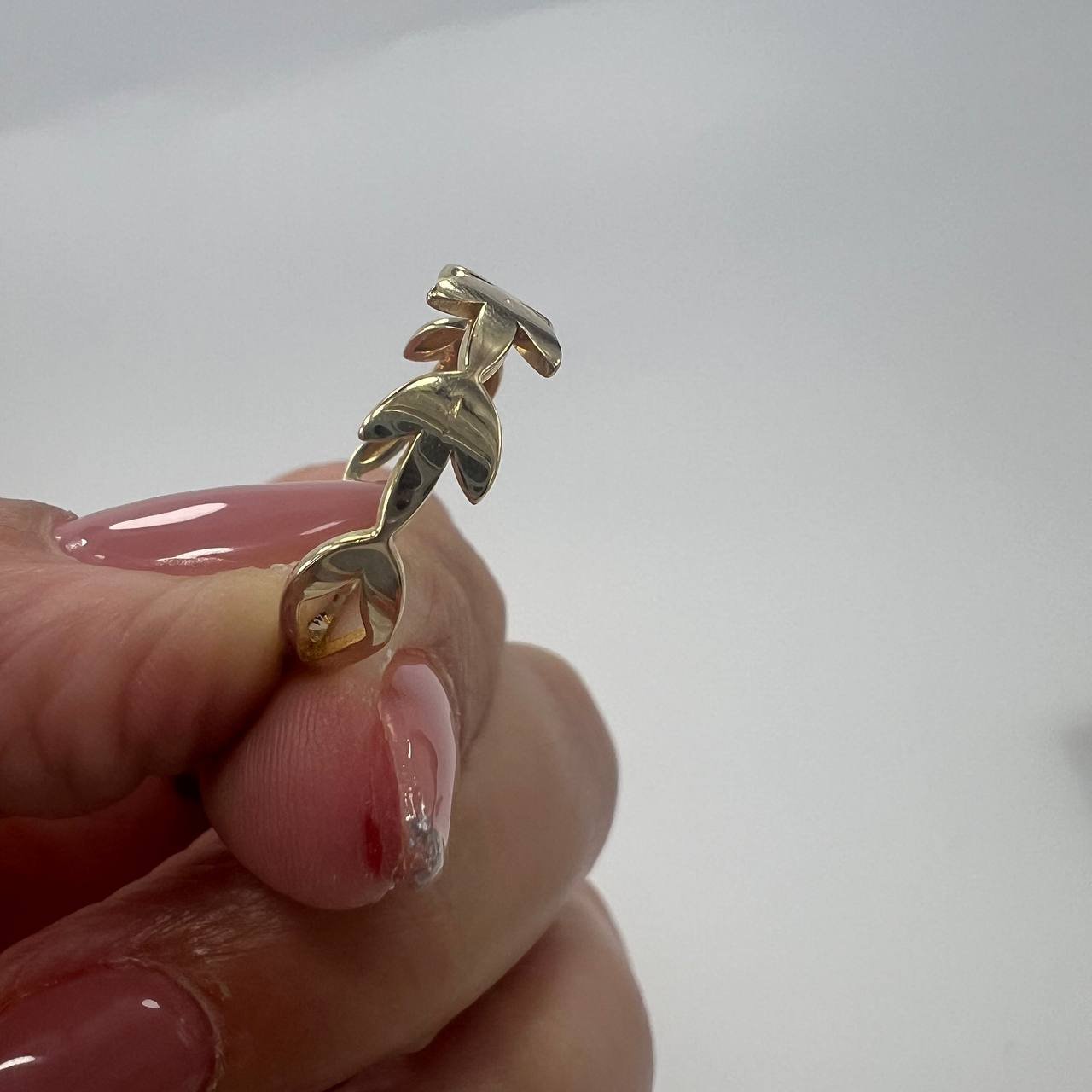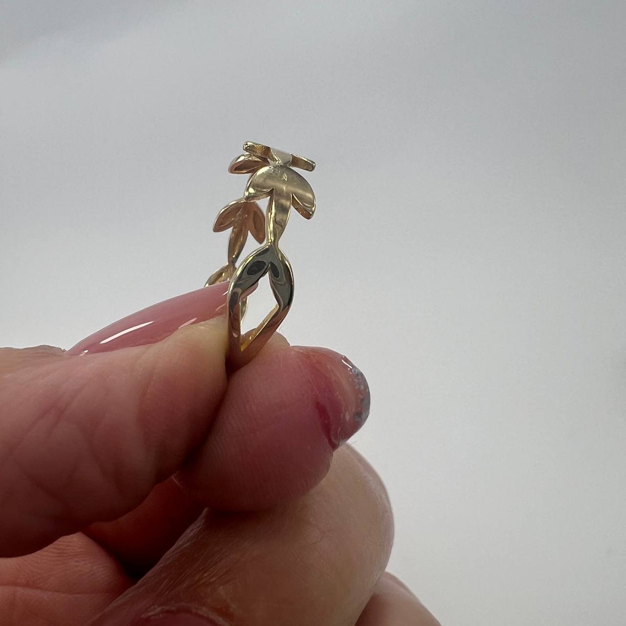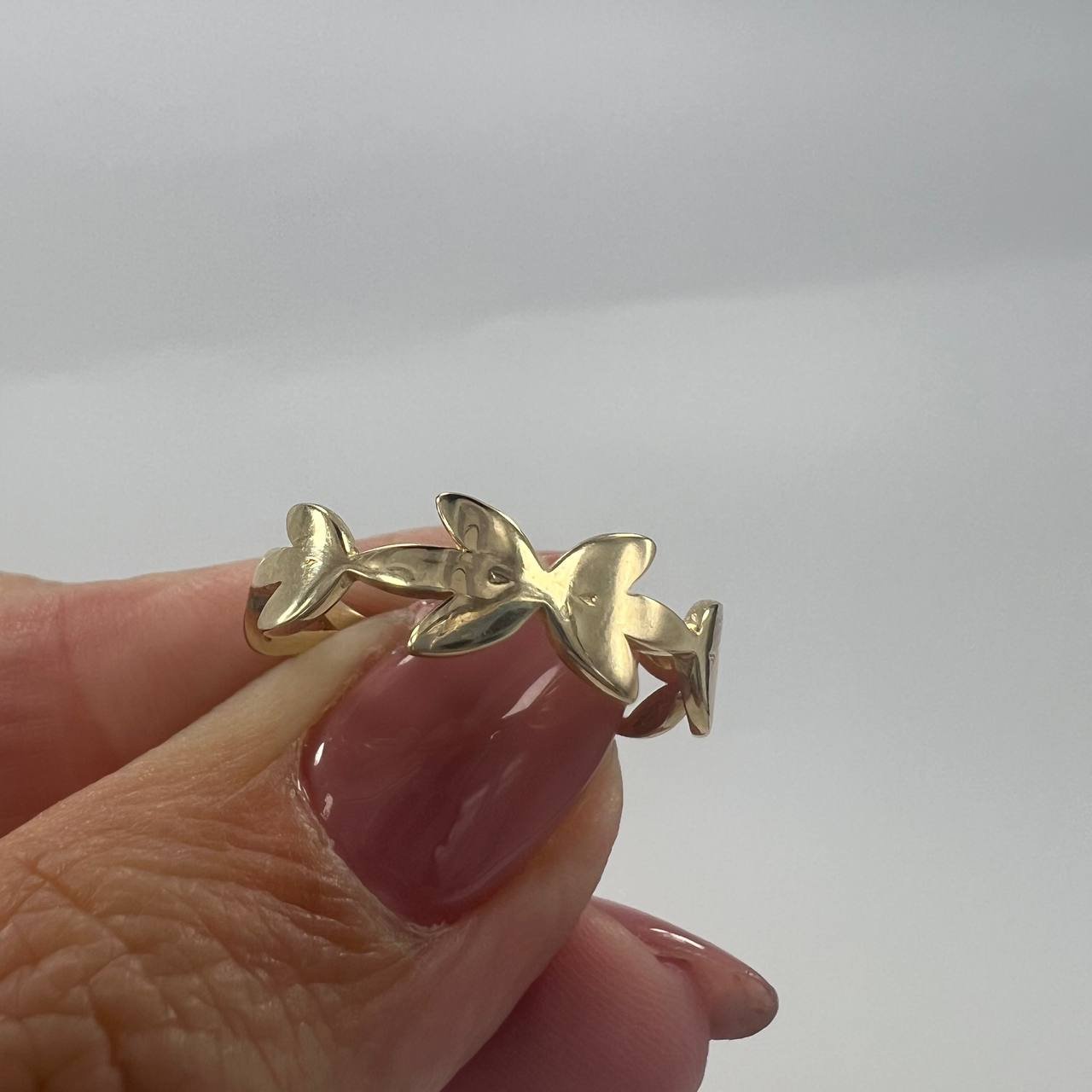 New Elegant 14K Solid Gold Ring 1.7g – Leaf Motif Band Design, Made in Italy