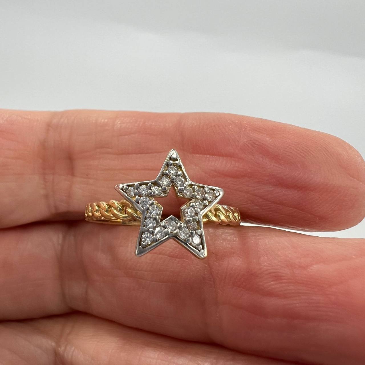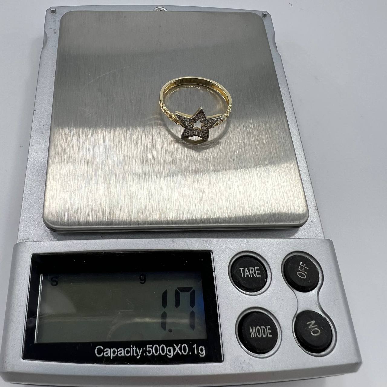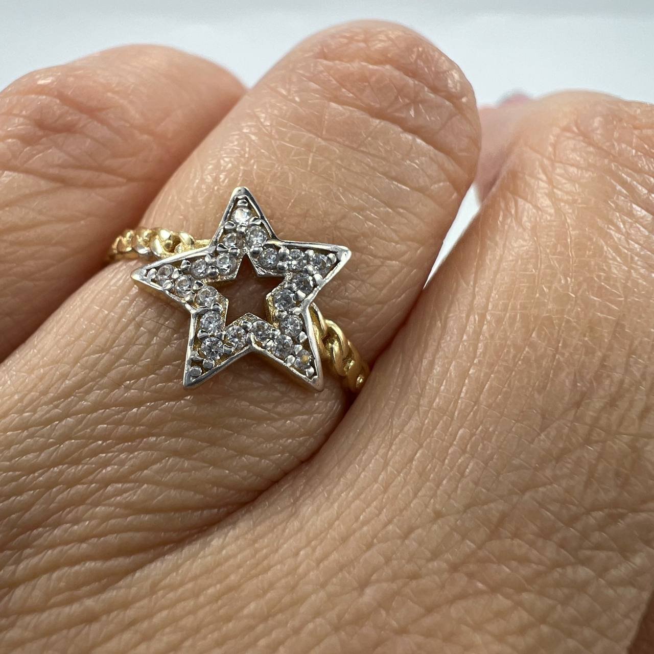 New Elegant 14K Solid Gold Star Ring with Cubic Zirconia – Italian Design, 1.7g