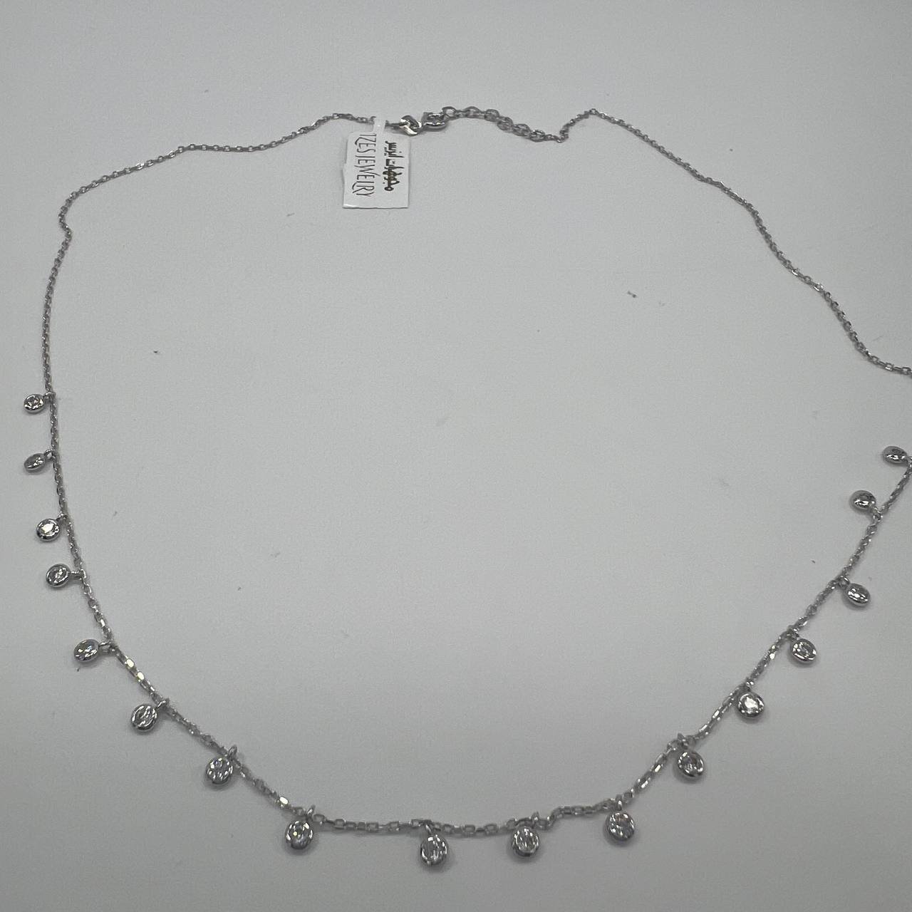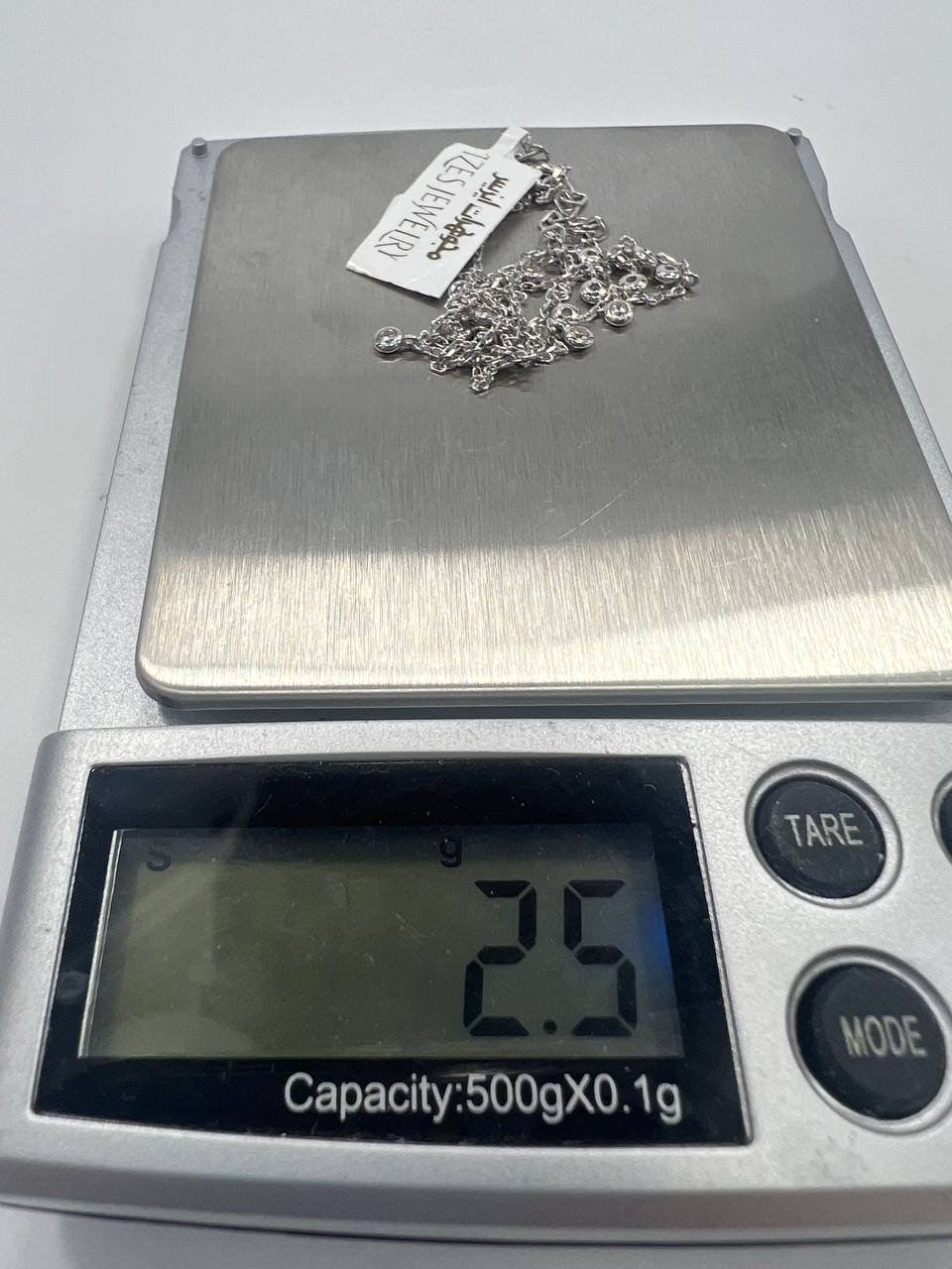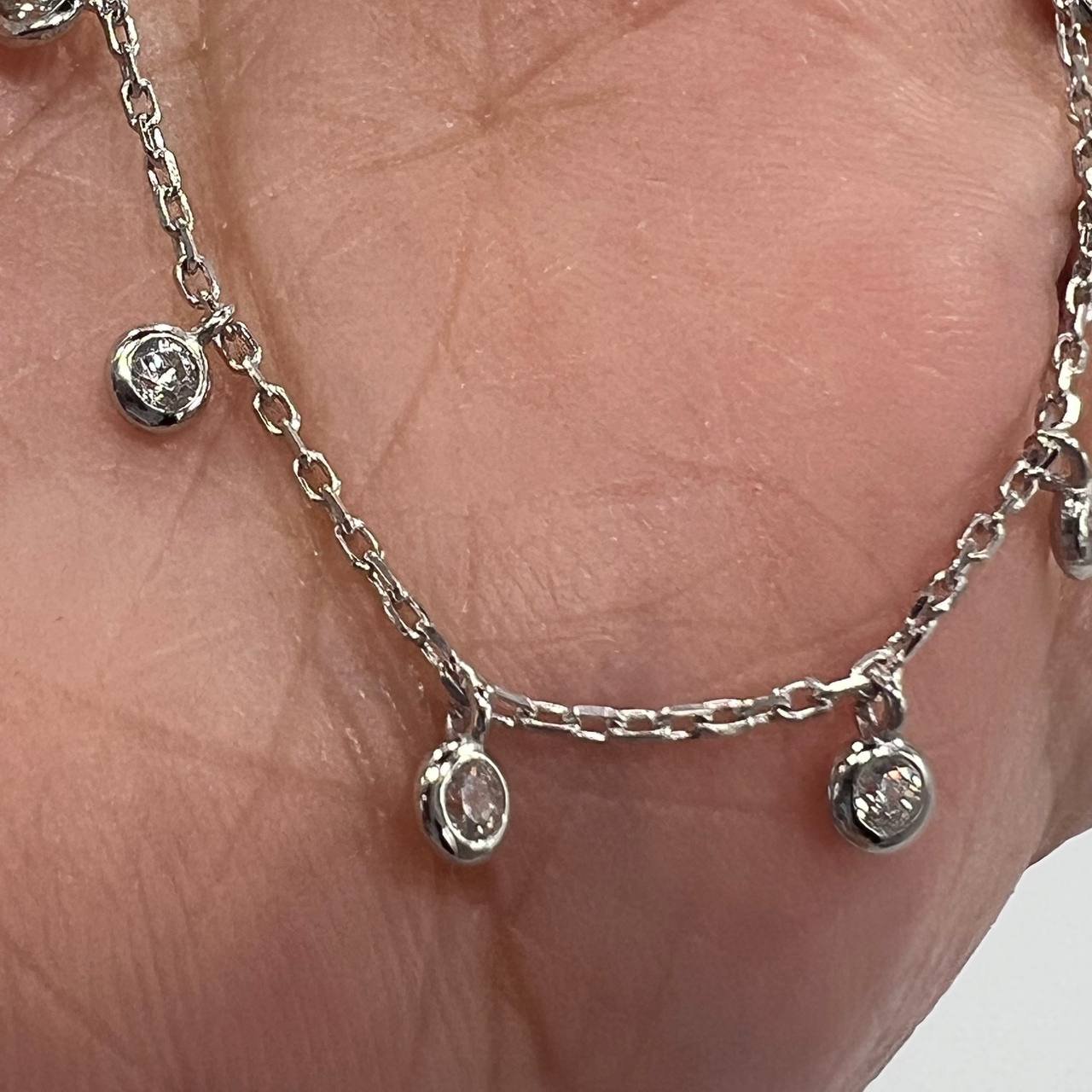 New Elegant 14K White Gold Necklace with Dangling CZ Charms Italian Design 2.5g