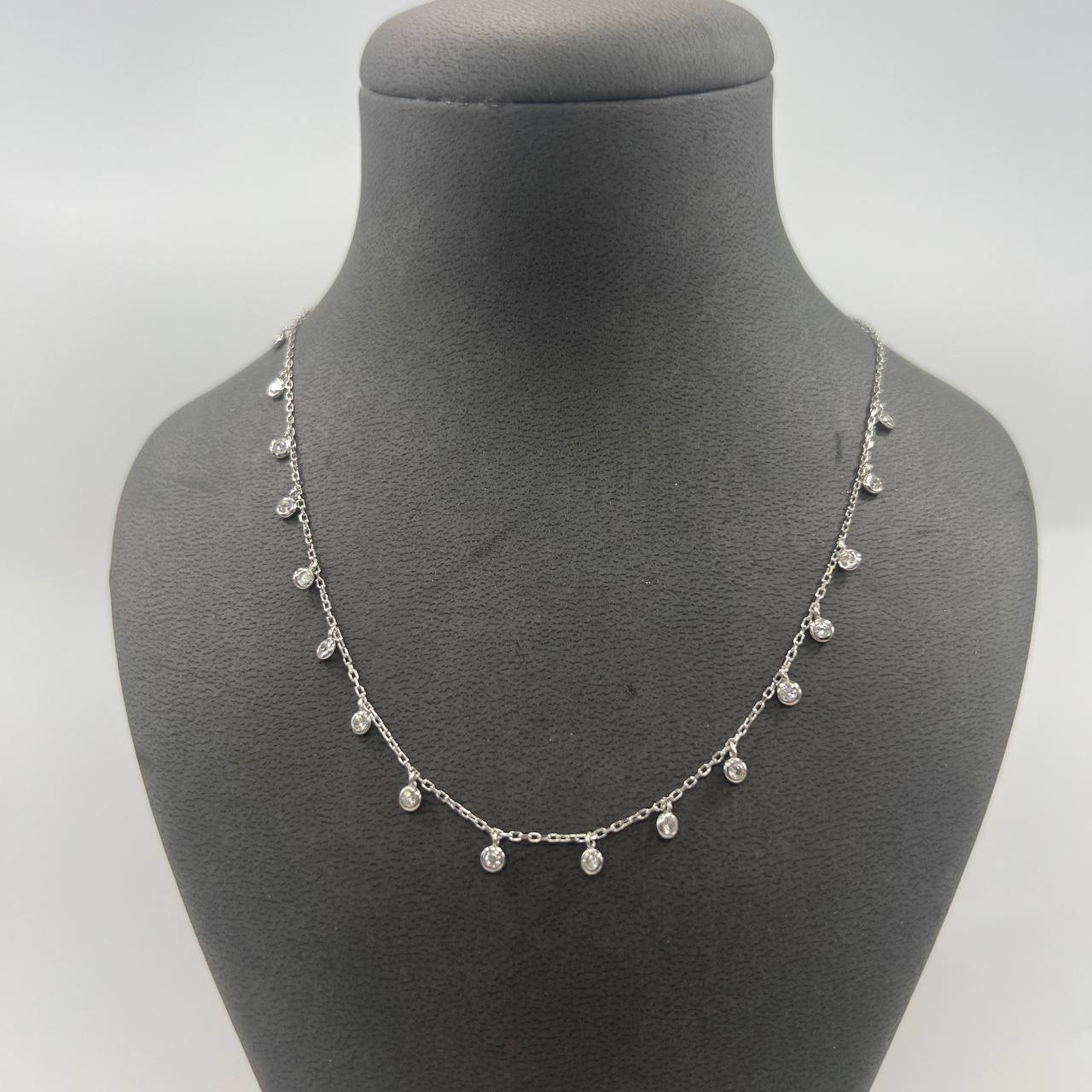 The fine white gold chain enhances the brilliance of the stones, while its lightweight design ensures comfort for daily wear or special occasions. A versatile piece that blends simplicity with luxury, making it a perfect gift or a personal treasure.