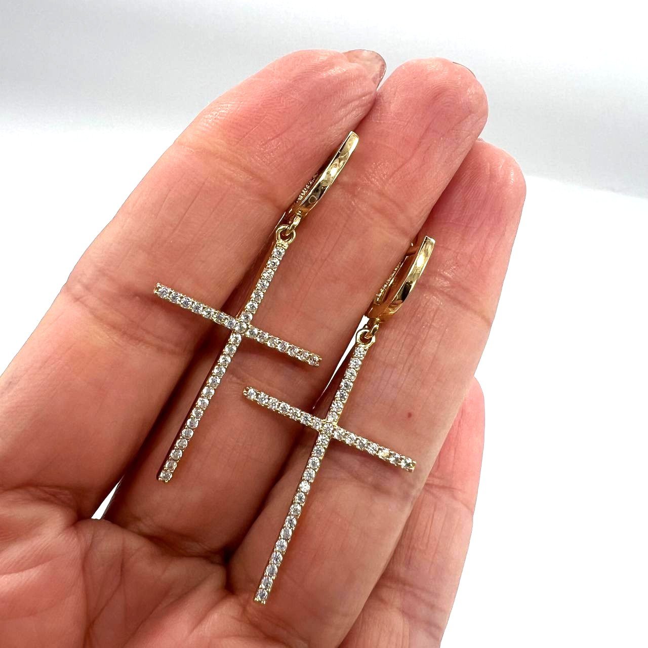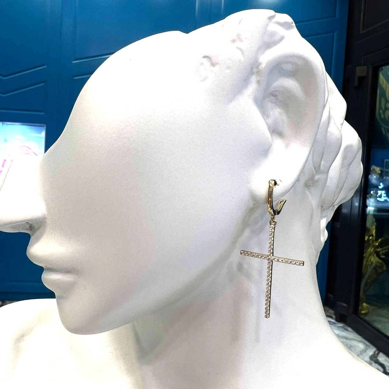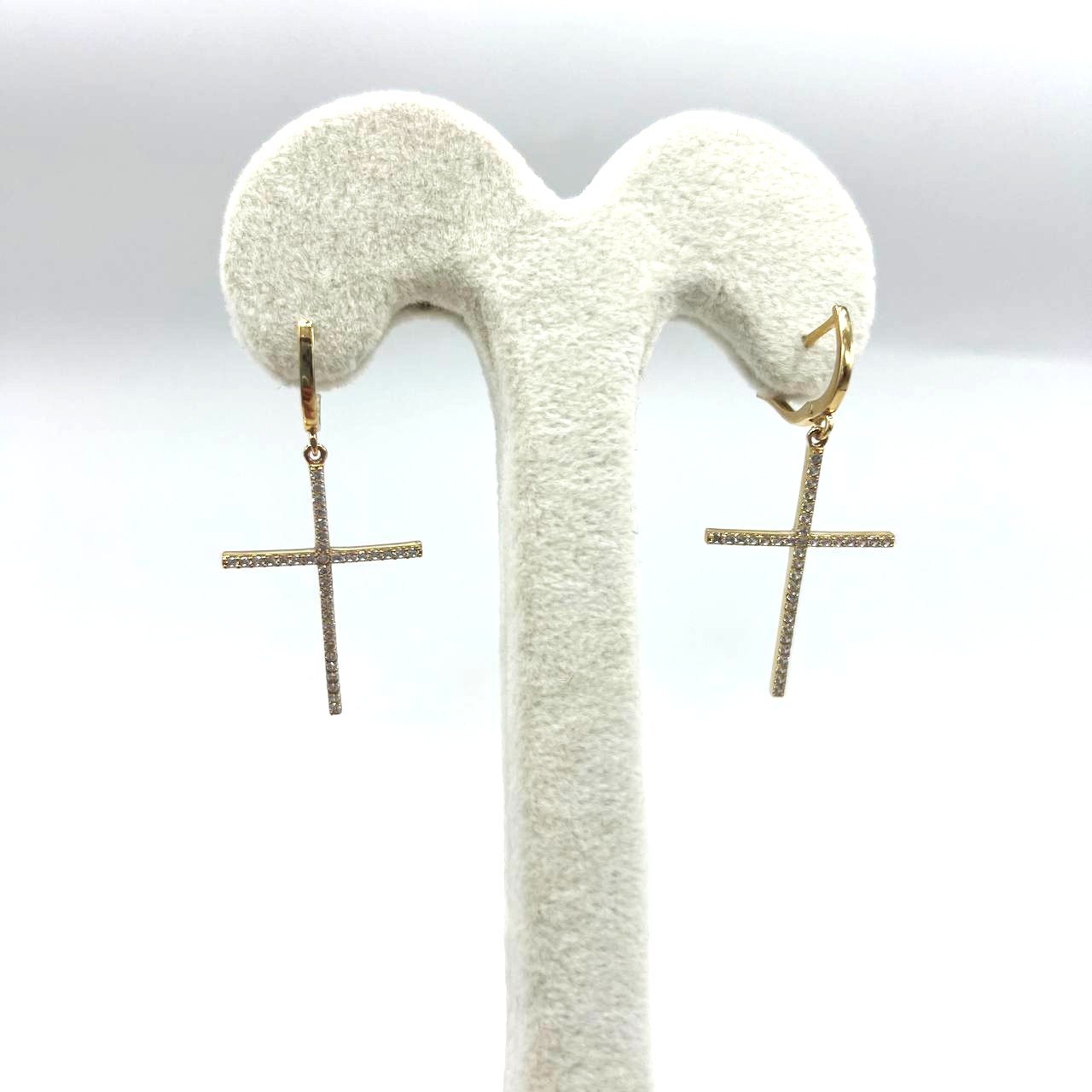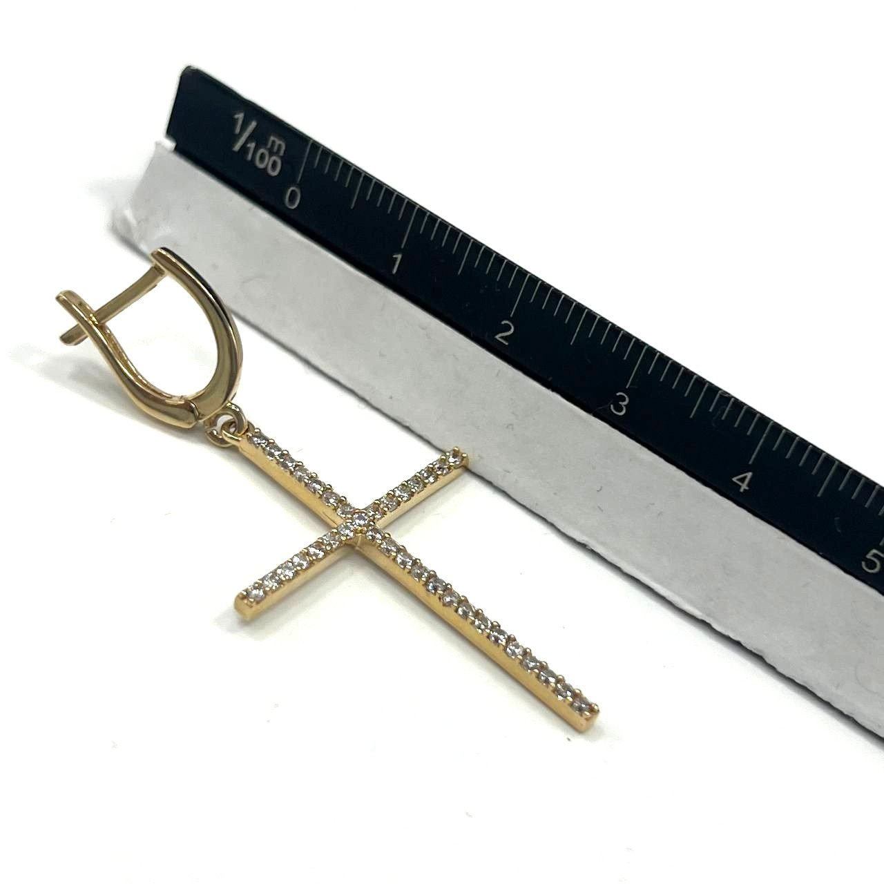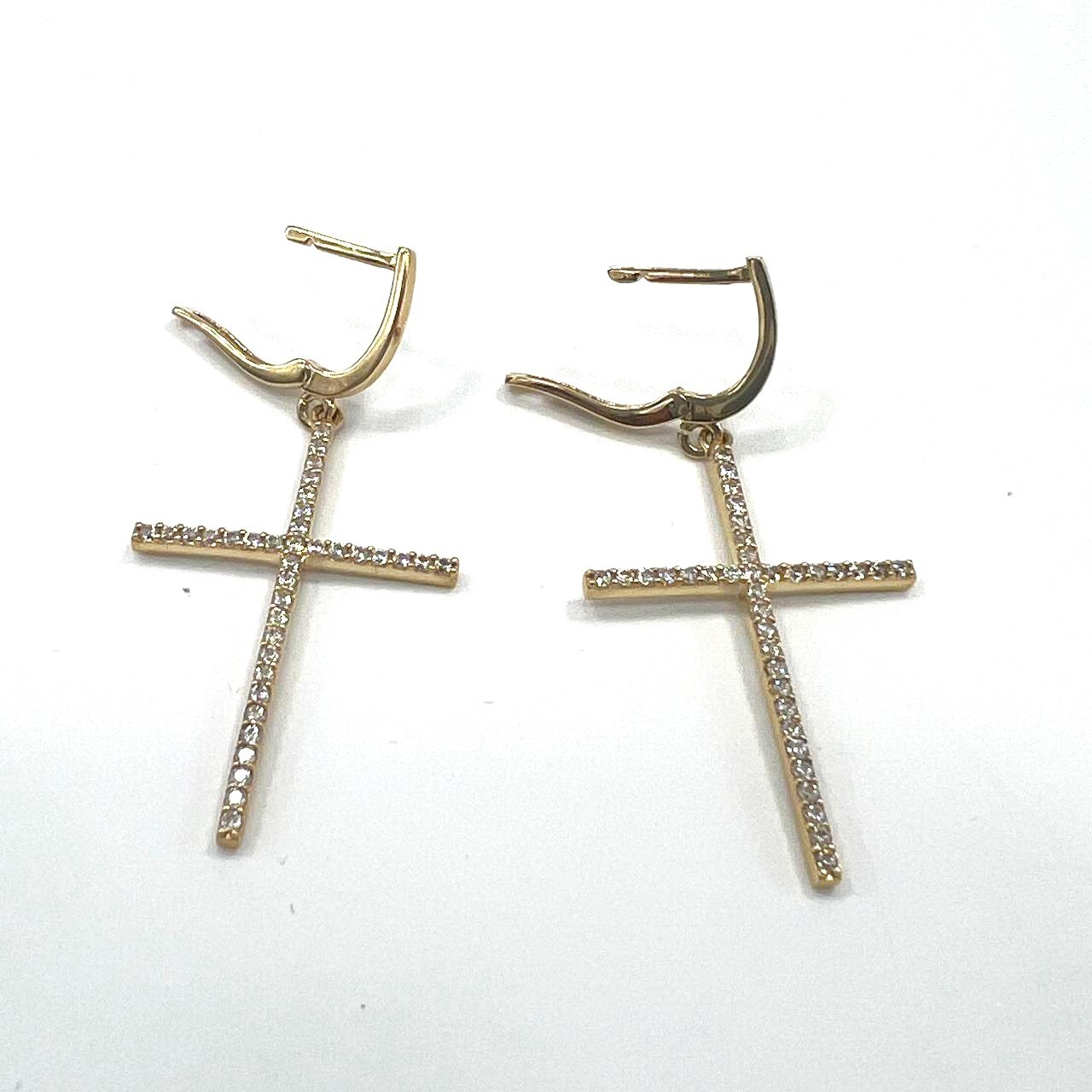New Elegant 14K yellow gold cross earrings, beautiful and refined design