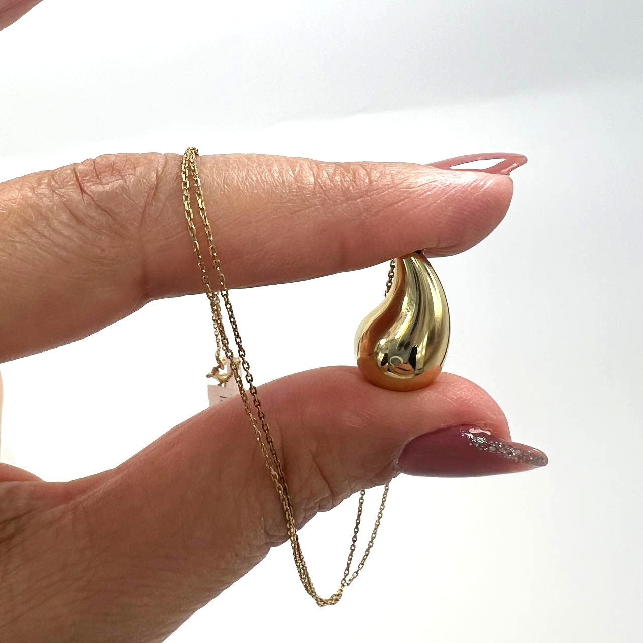 New Elegant 14K yellow gold necklace with a graceful water drop design