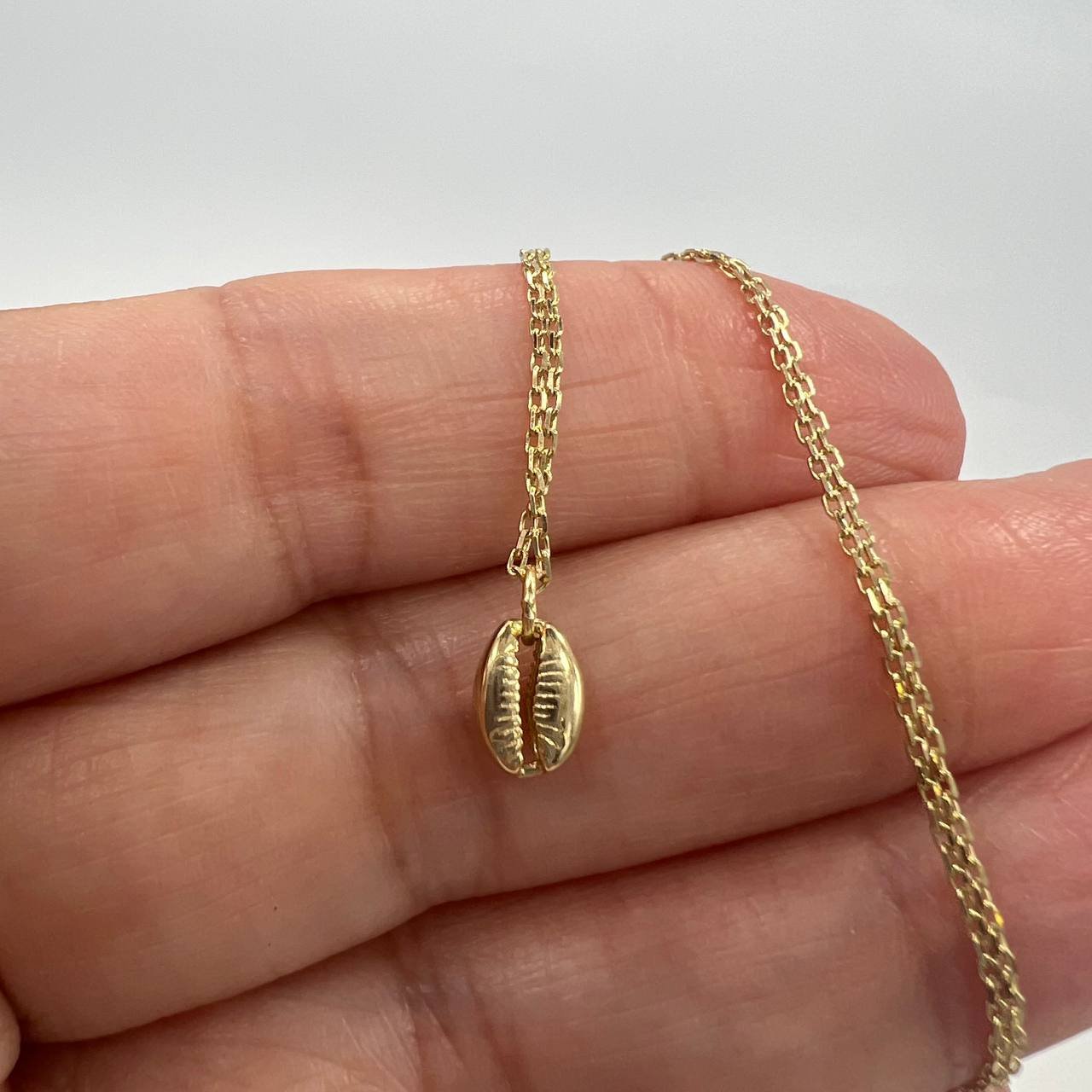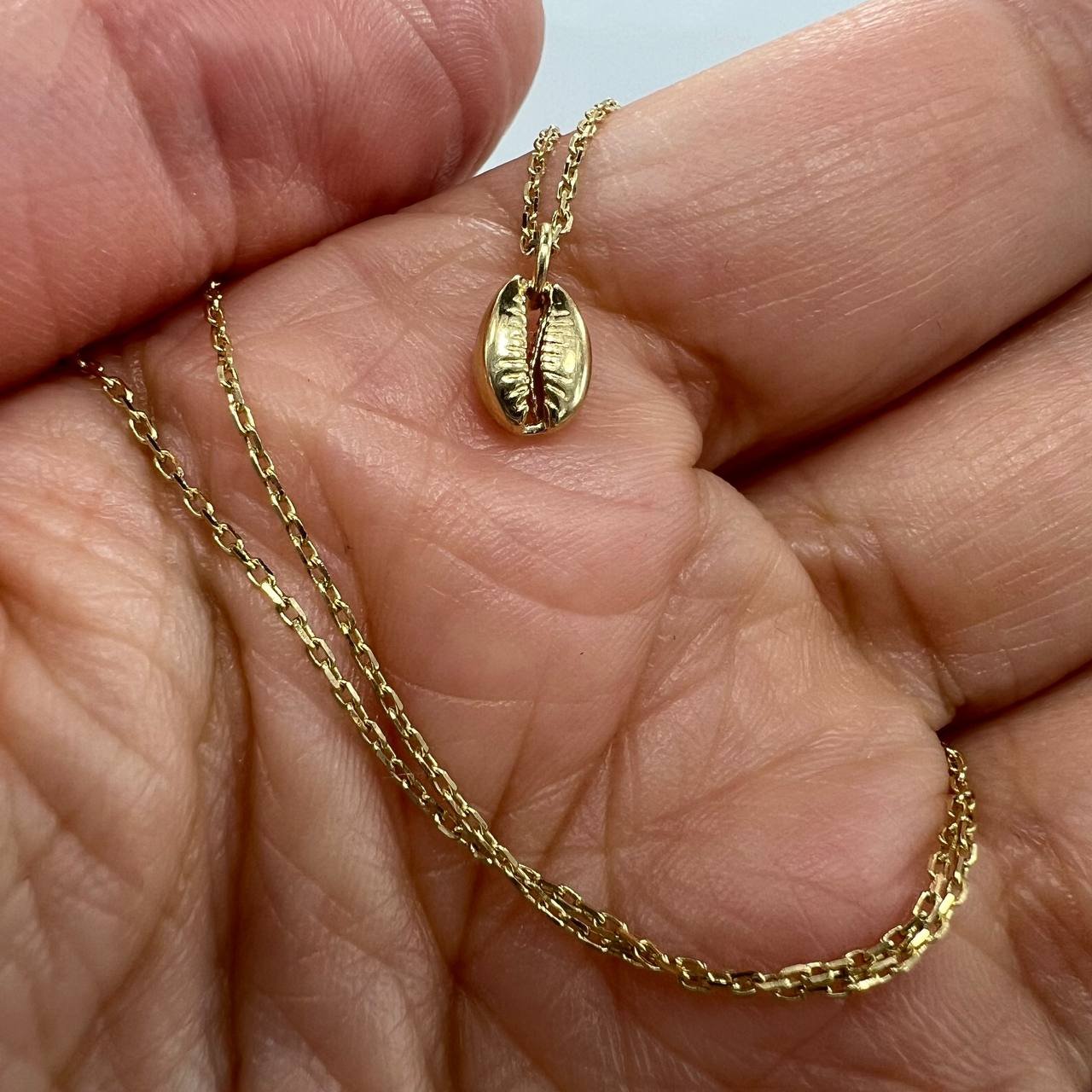 New 14K Solid Gold Cowrie Shell Pendant Necklace – Elegant Italian Design 2.1g