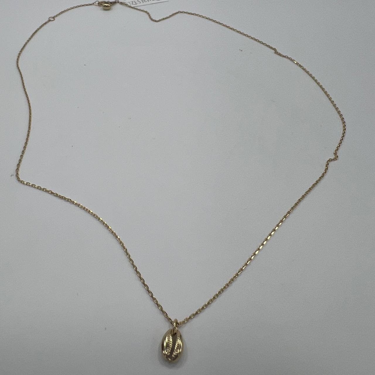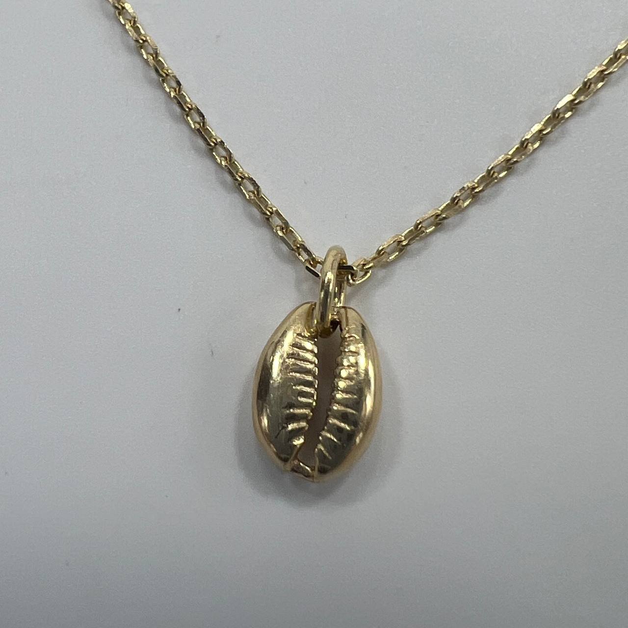 Crafted from high-quality 14K yellow gold (585 hallmark), the necklace features a delicate chain and a highly polished shell pendant that reflects natural elegance. The lightweight yet durable design makes it perfect for both daily wear and special occasions.