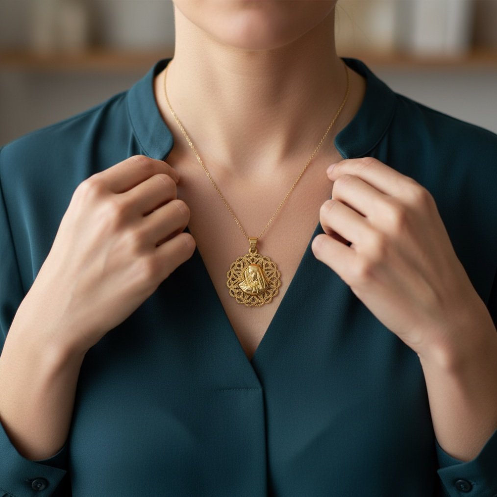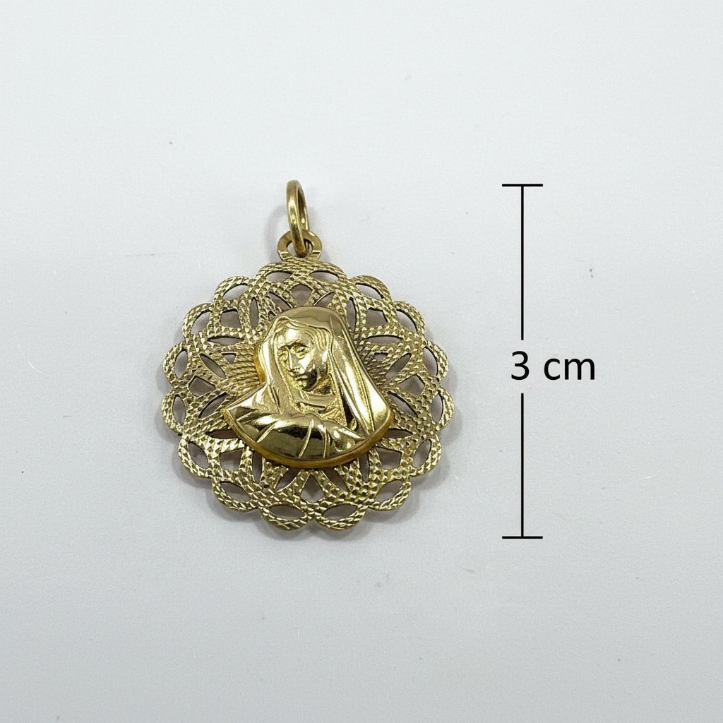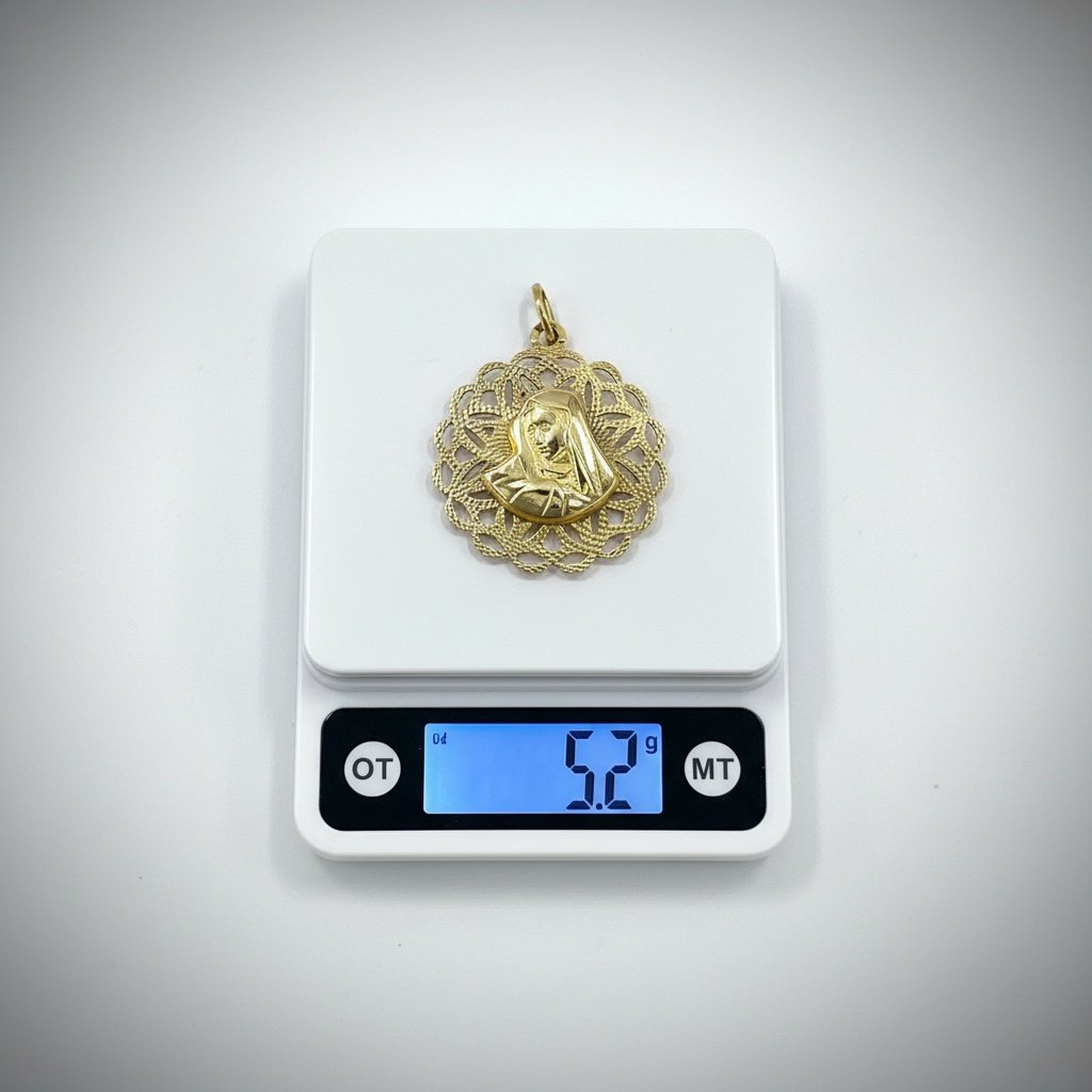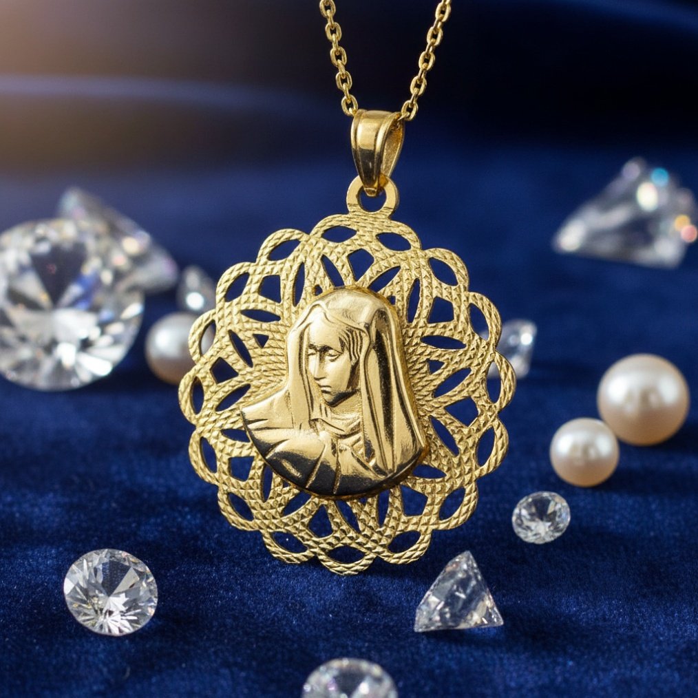 Discover the beauty of this timeless 14K yellow gold pendant, crafted with exceptional craftsmanship and refined design. This elegant piece features a beautifully detailed engraving of the Virgin Mary on one side and a radiant depiction of Jesus Christ on the other — allowing you to carry two sacred icons in one exquisite piece. Hand-finished with delicate textures and luminous polish, this pendant embodies faith, protection, and devotion, making it a meaningful gift for yourself or someone you love. Perfect for daily wear or special occasions, it adds a touch of spiritual grace and refined luxury to any look.