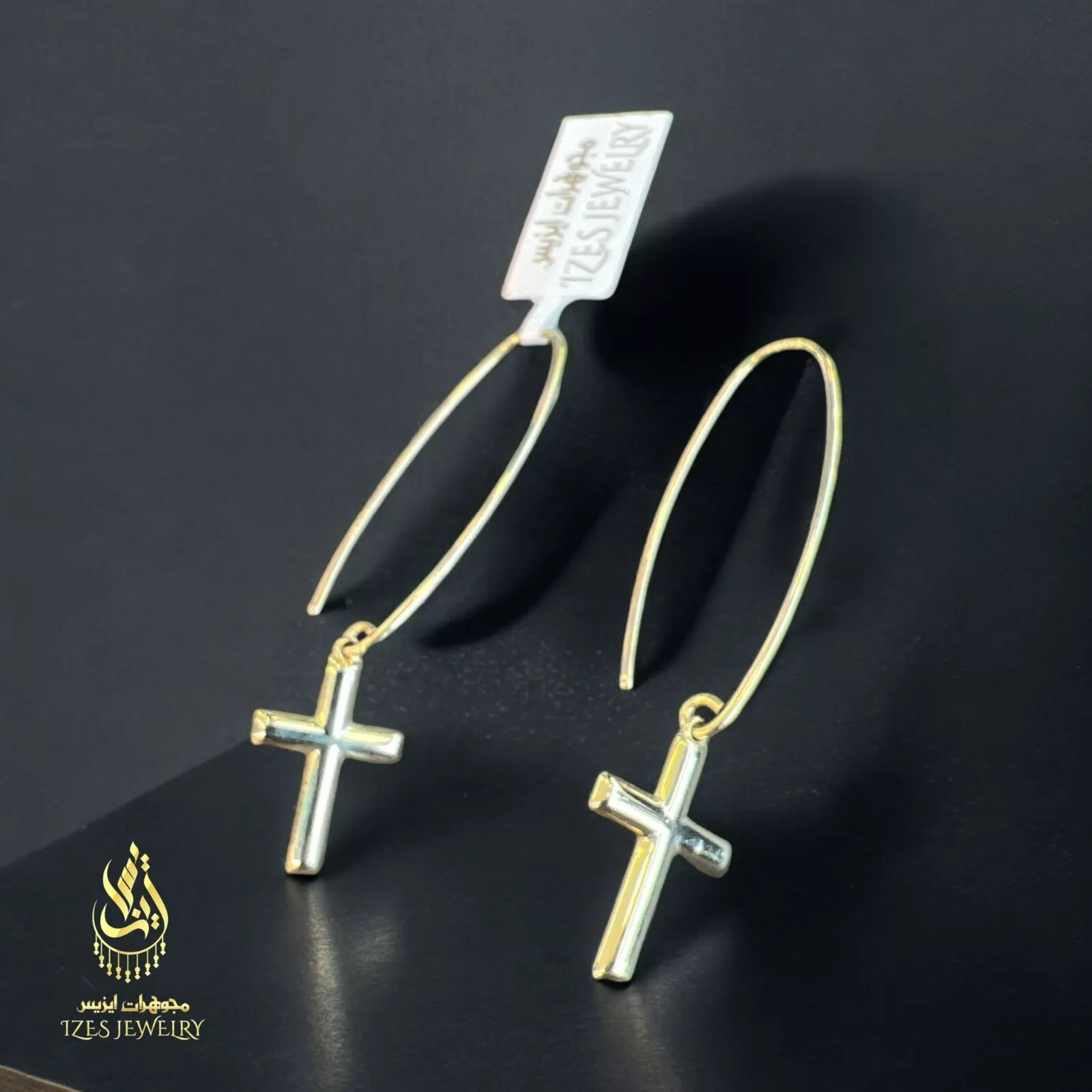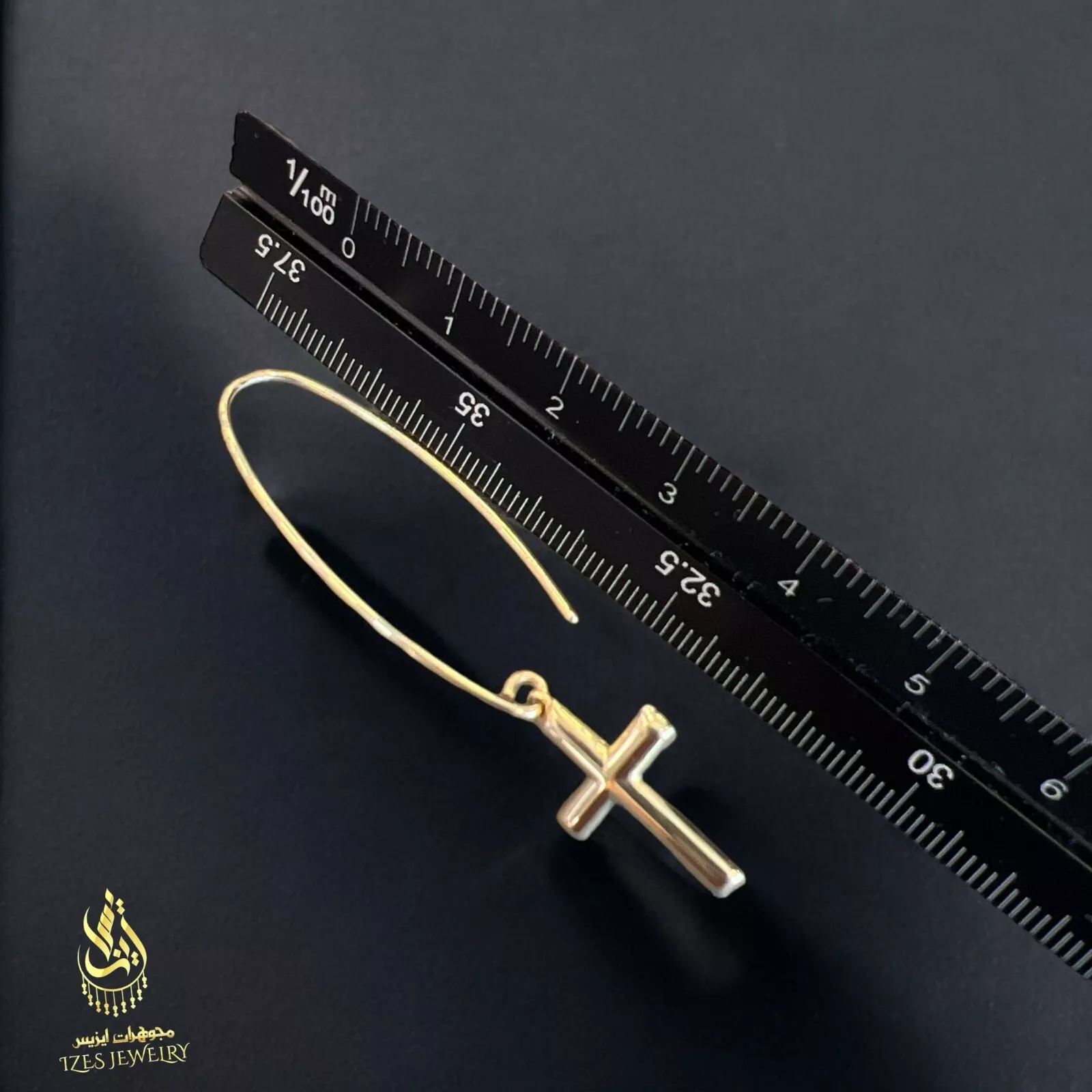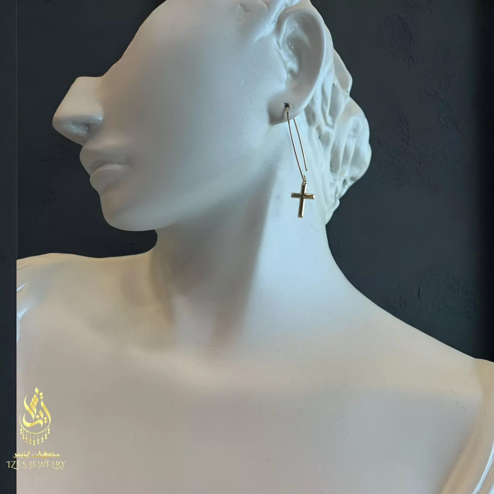 Women Earring Spike Yellow Gold 14k with Cross class gift