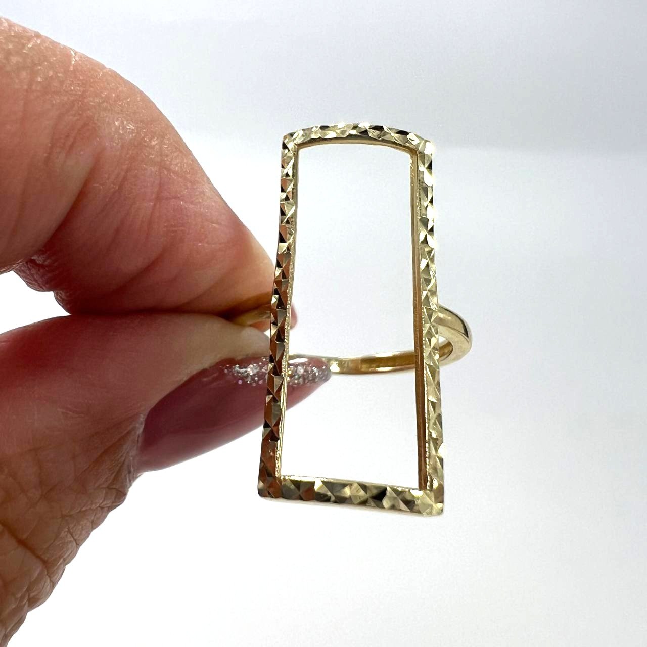 Yellow gold 14K rectangular design ring, delicate, size 7 beautiful gift