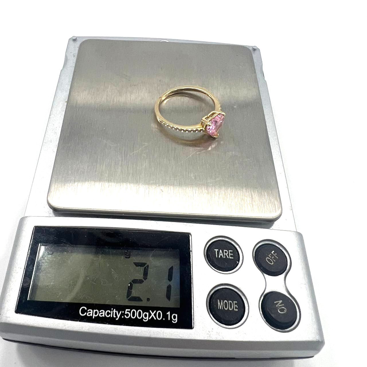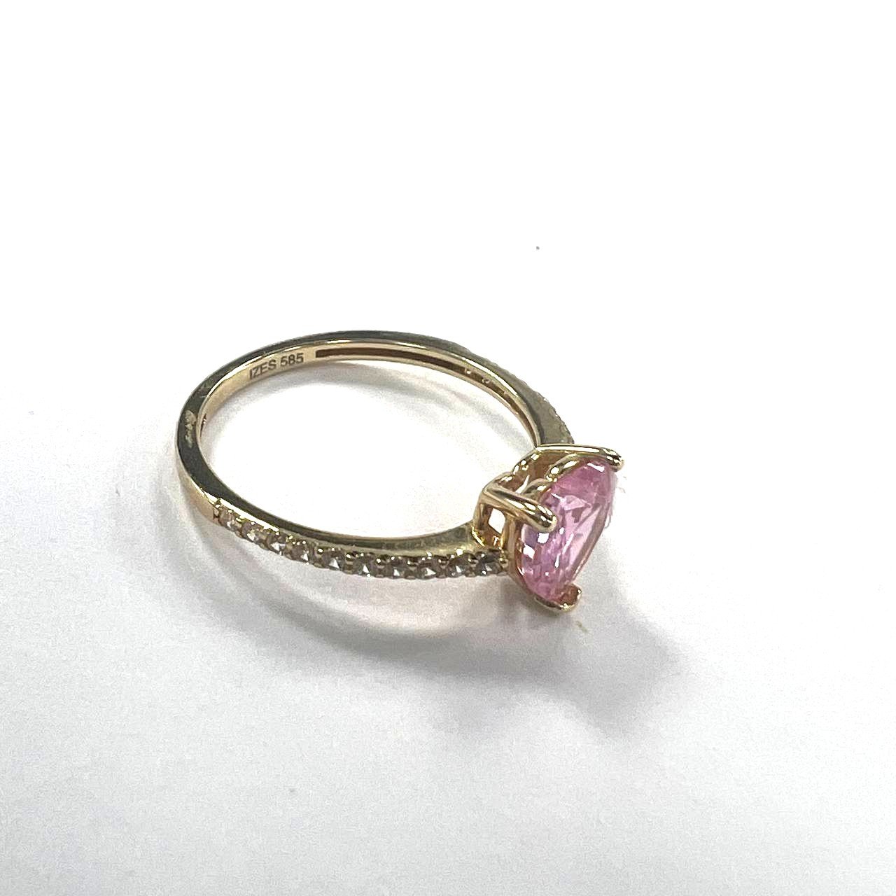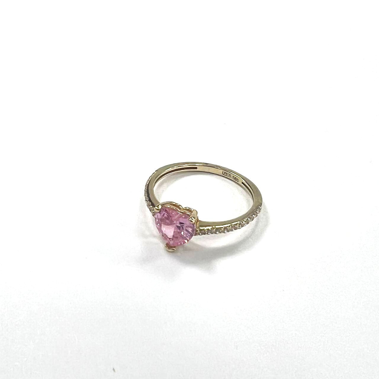 Yellow Gold 14K ring with a pink heart-shaped stone, elegant and refined